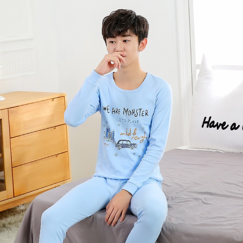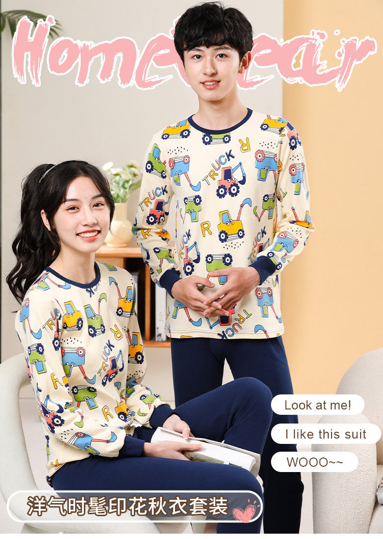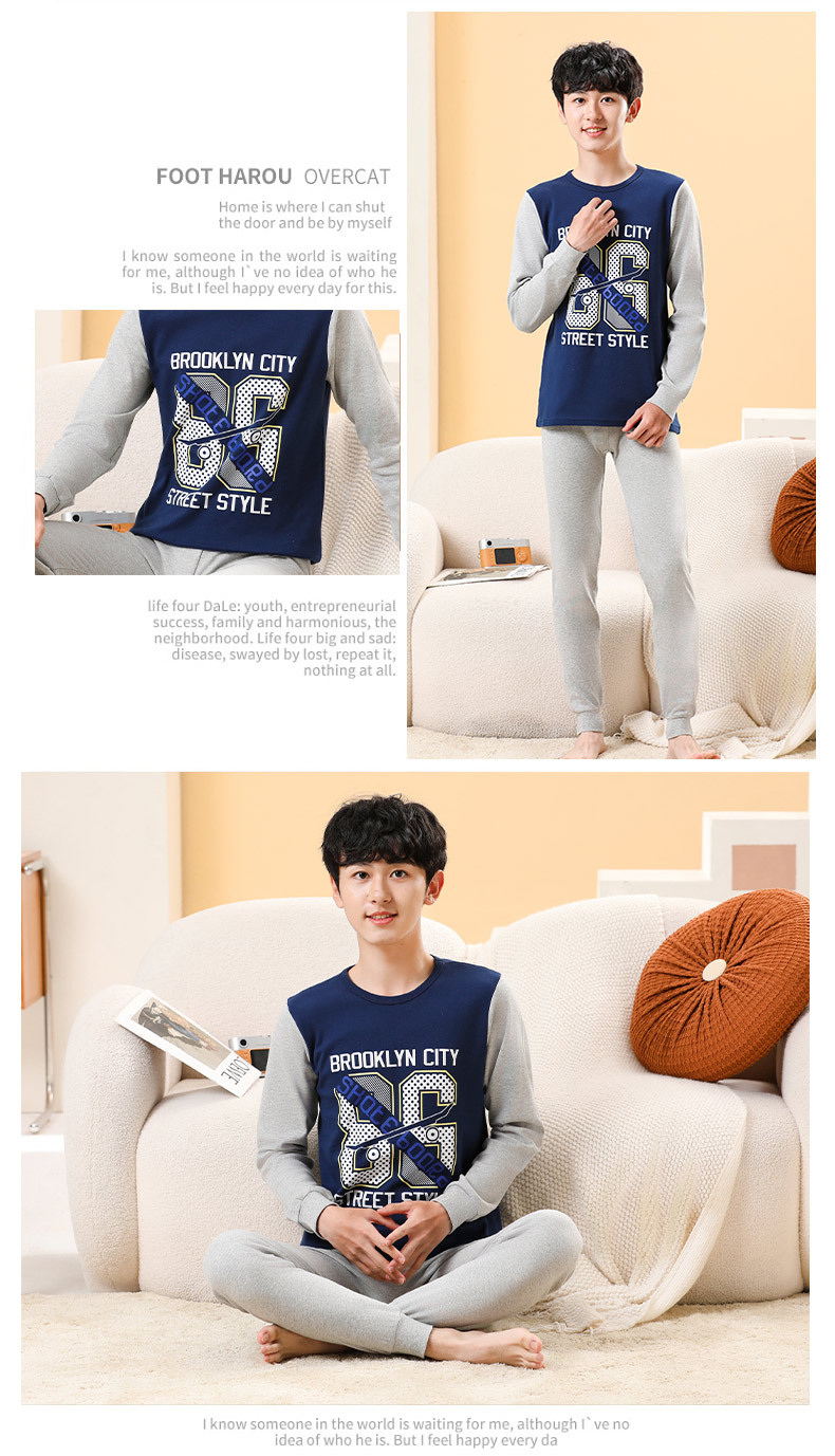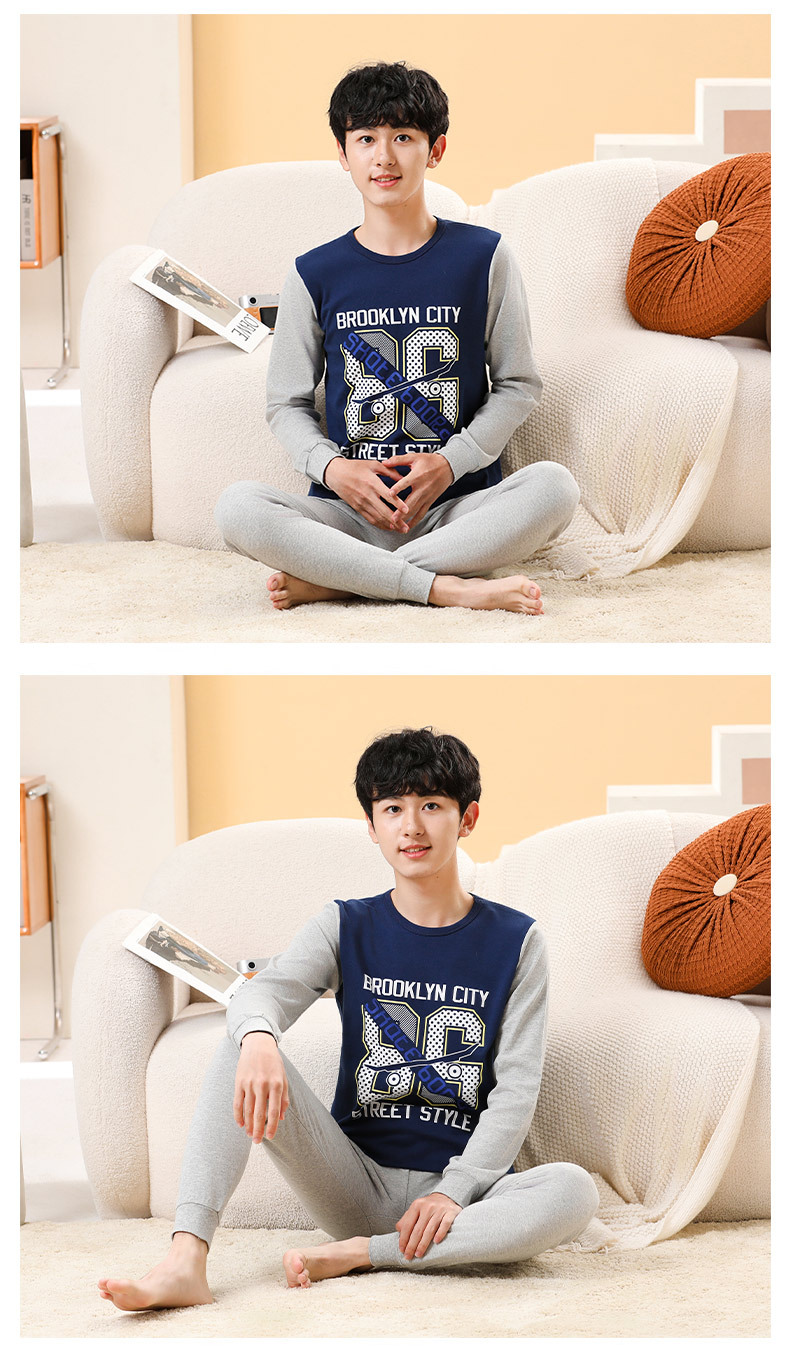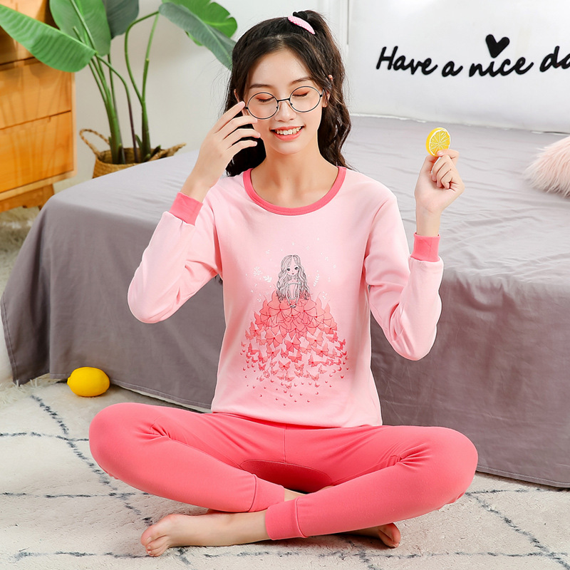 가을/겨울 중간 크기의 어린이 잠옷 2 종 세트 24 면 중소형 어린이 크루 넥 홈 의류 세트 가을 옷과 바지스토어 가기