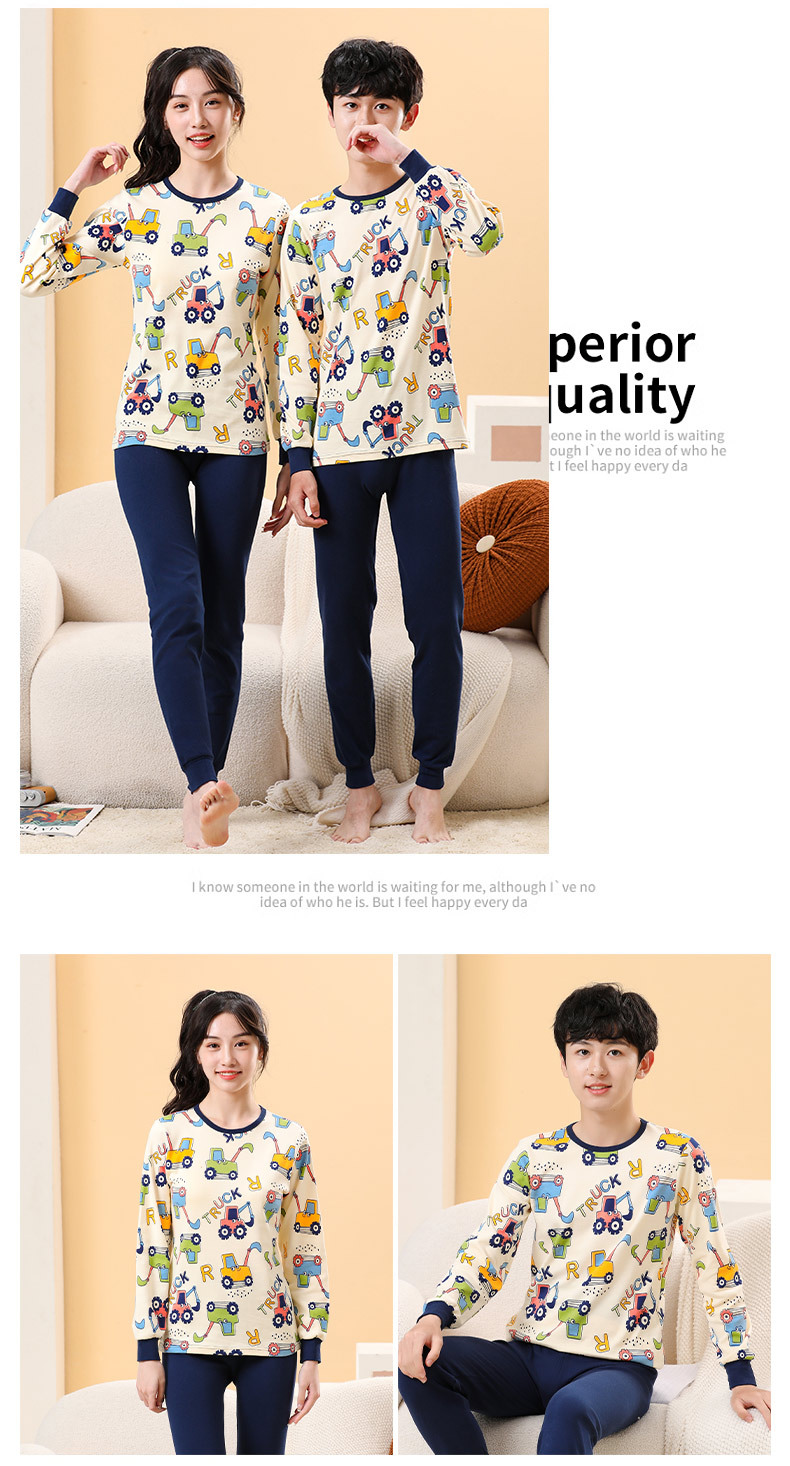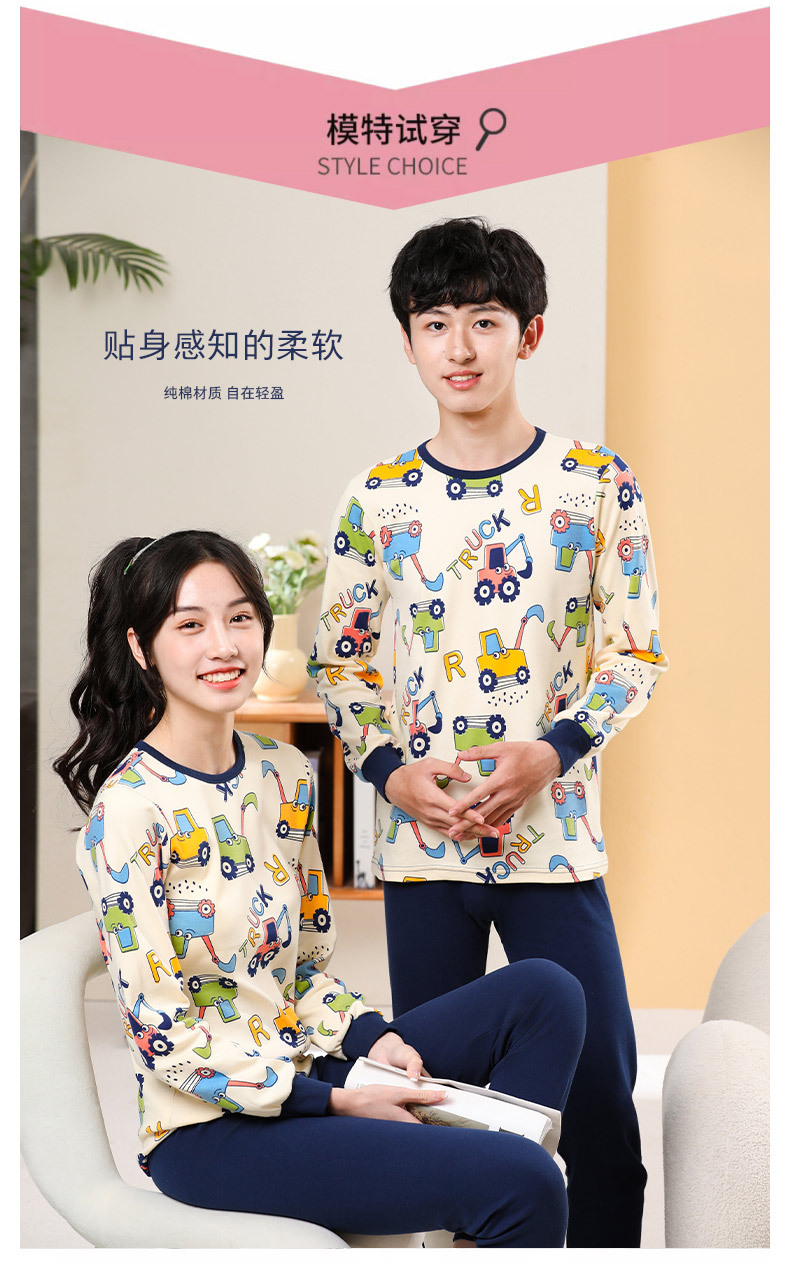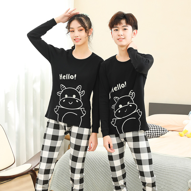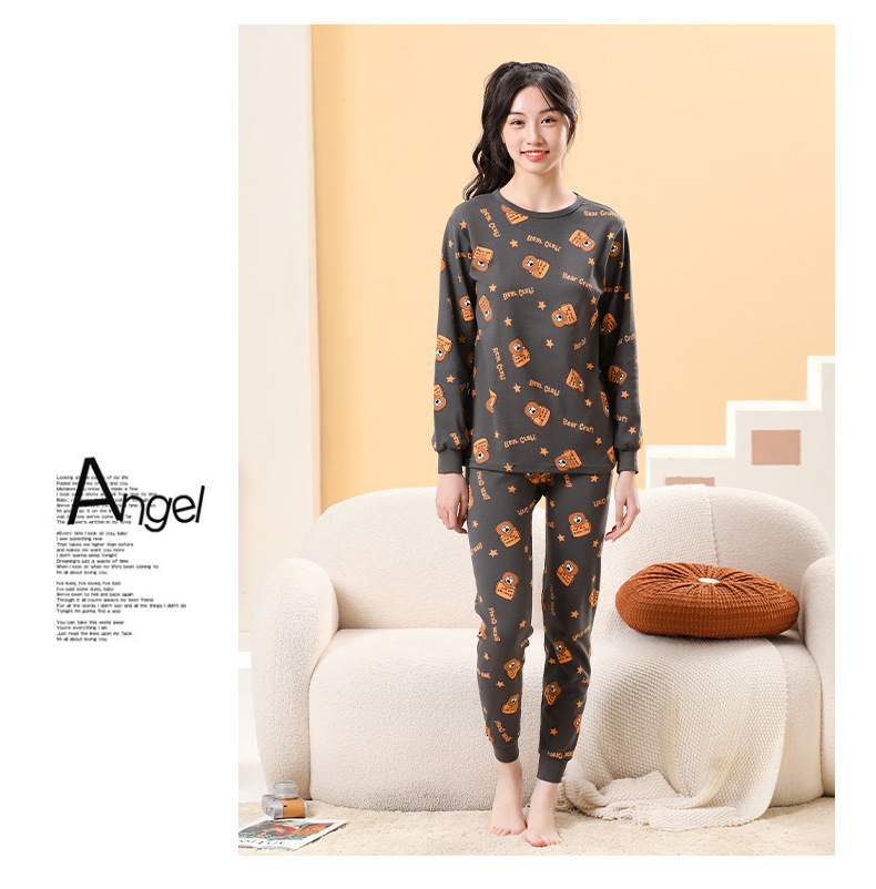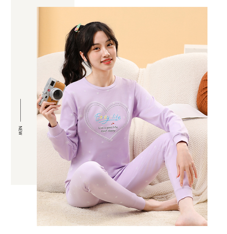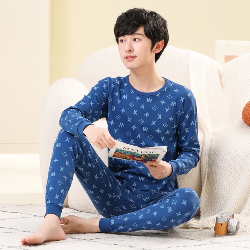 가을/겨울 중간 크기의 어린이 잠옷 2 종 세트 24 면 중소형 어린이 크루 넥 홈 의류 세트 가을 옷과 바지스토어 가기