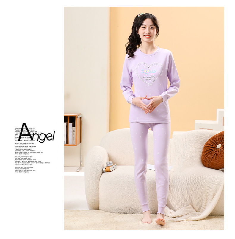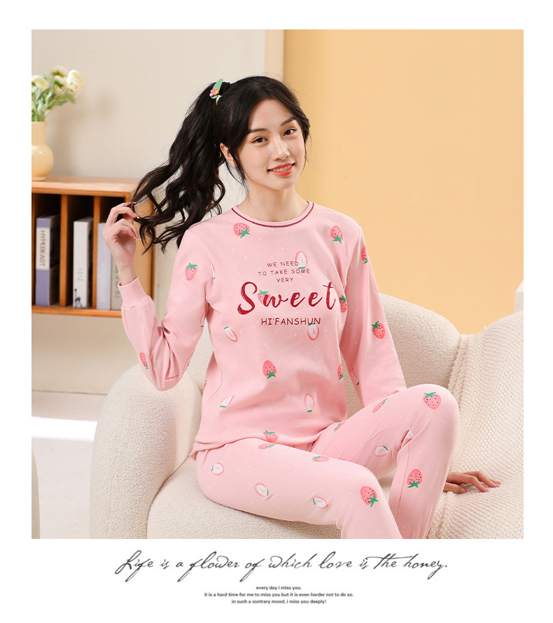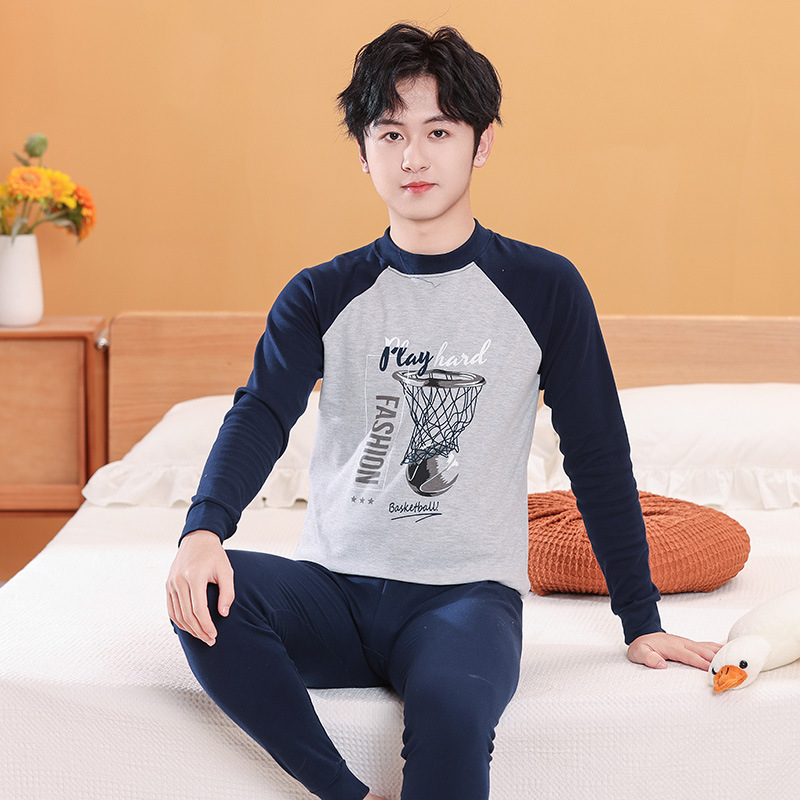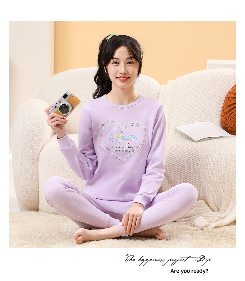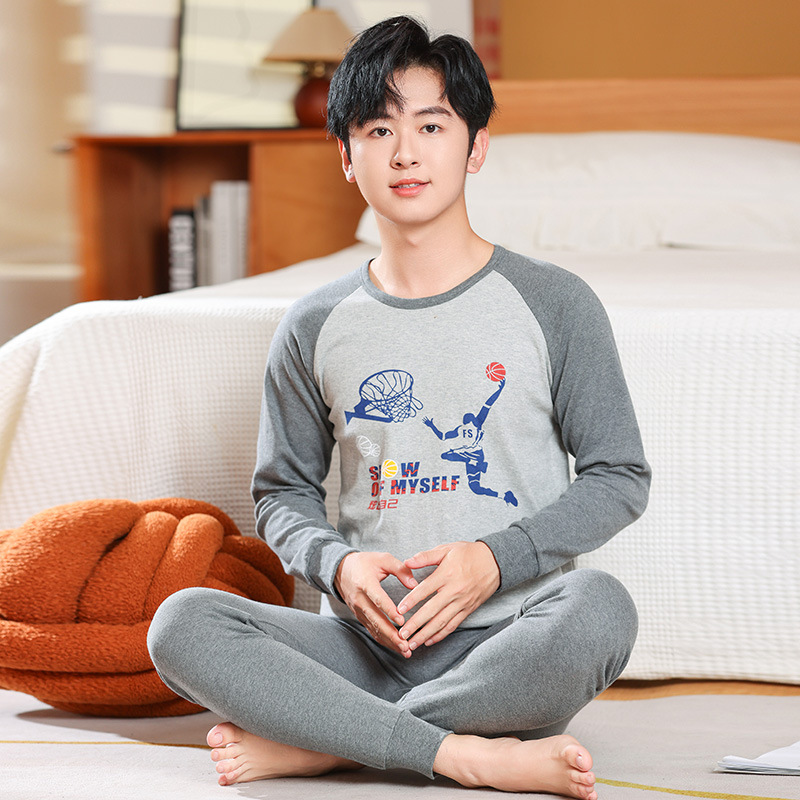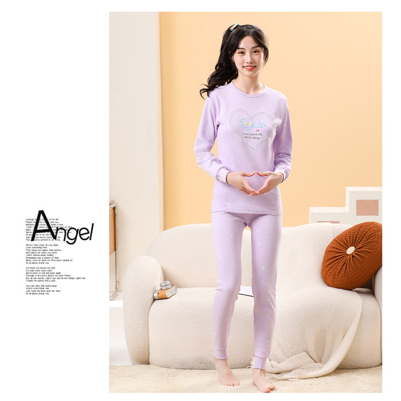 가을/겨울 중간 크기의 어린이 잠옷 2 종 세트 24 면 중소형 어린이 크루 넥 홈 의류 세트 가을 옷과 바지스토어 가기