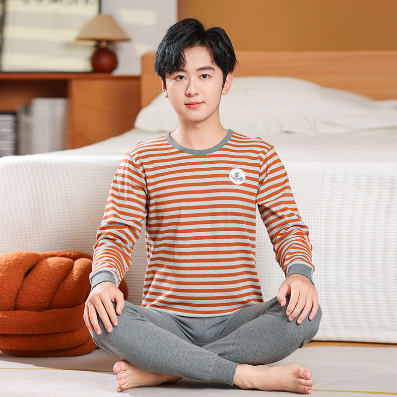 가을/겨울 중간 크기의 어린이 잠옷 2 종 세트 24 면 중소형 어린이 크루 넥 홈 의류 세트 가을 옷과 바지