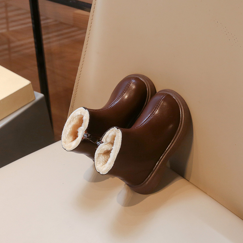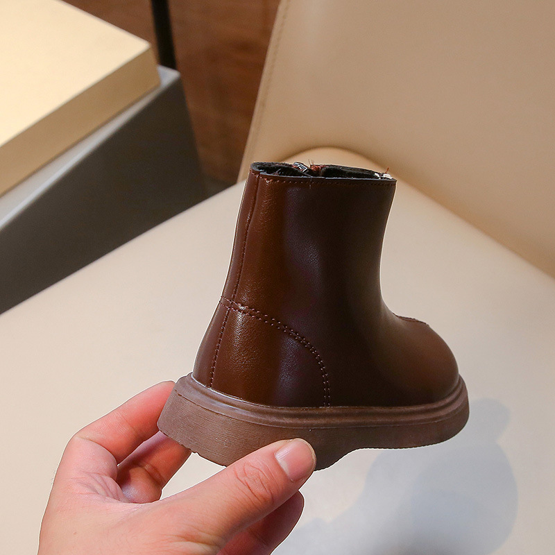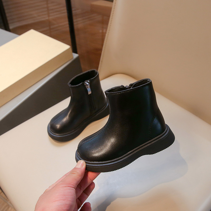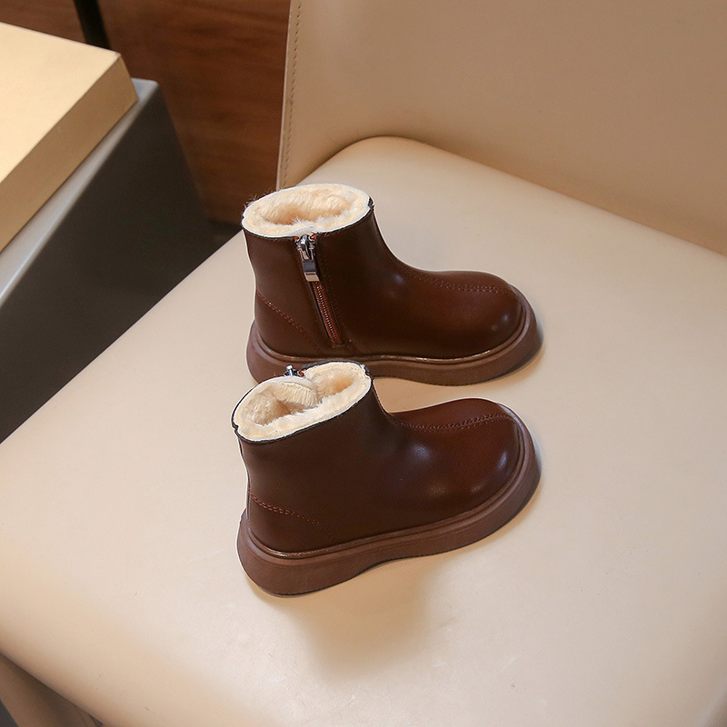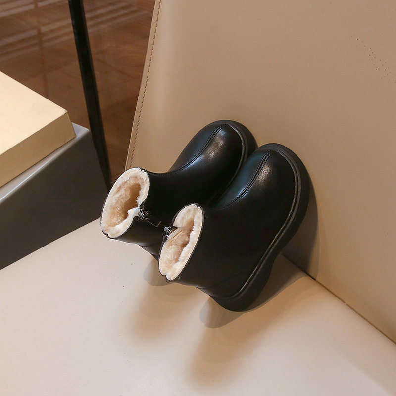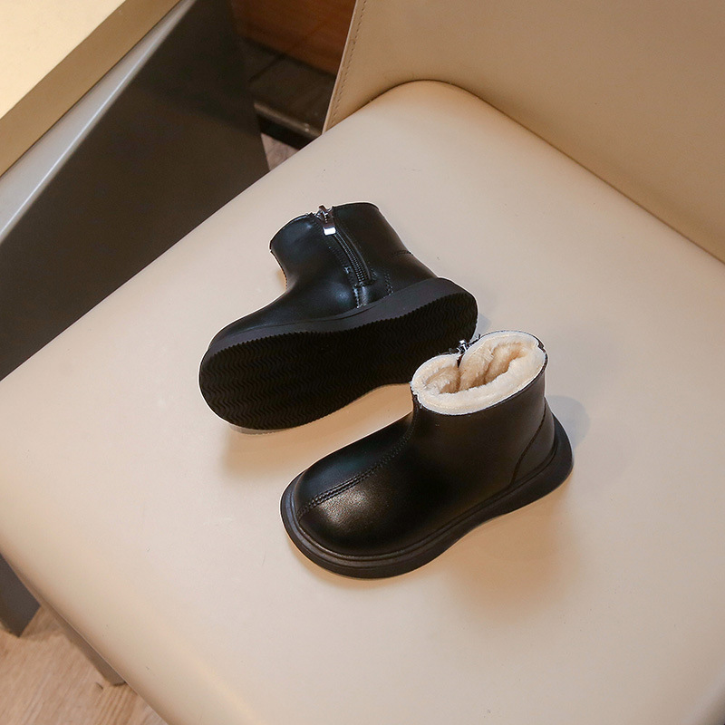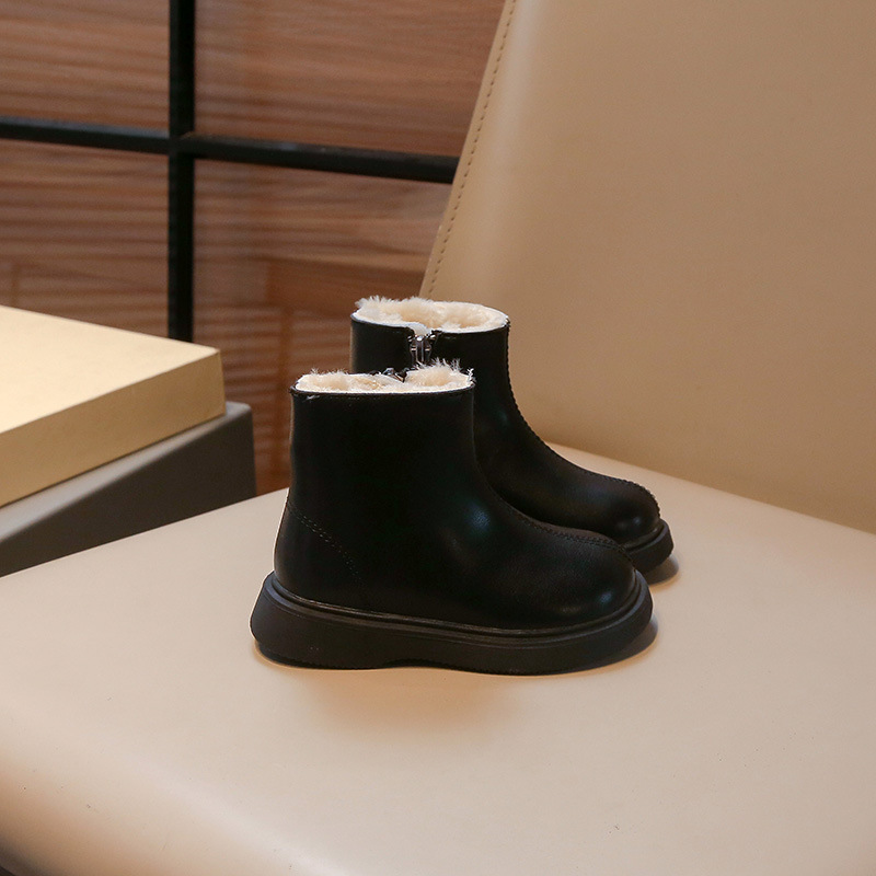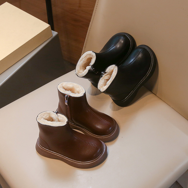 어린이 패션 짧은 부츠 2024 겨울 새로운 소녀 가죽 부츠 어린 소녀 외국 스타일 기모 두 면화 마틴 부츠 도매스토어 가기