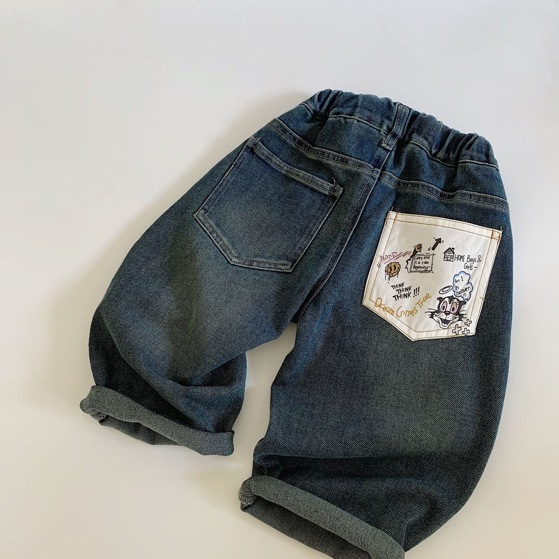 Maibao 아동용 청바지 2025 가을 다목적 소년 루즈 팬츠 아동복 한국 스타일 포켓 낙서 바지 유행스토어 가기