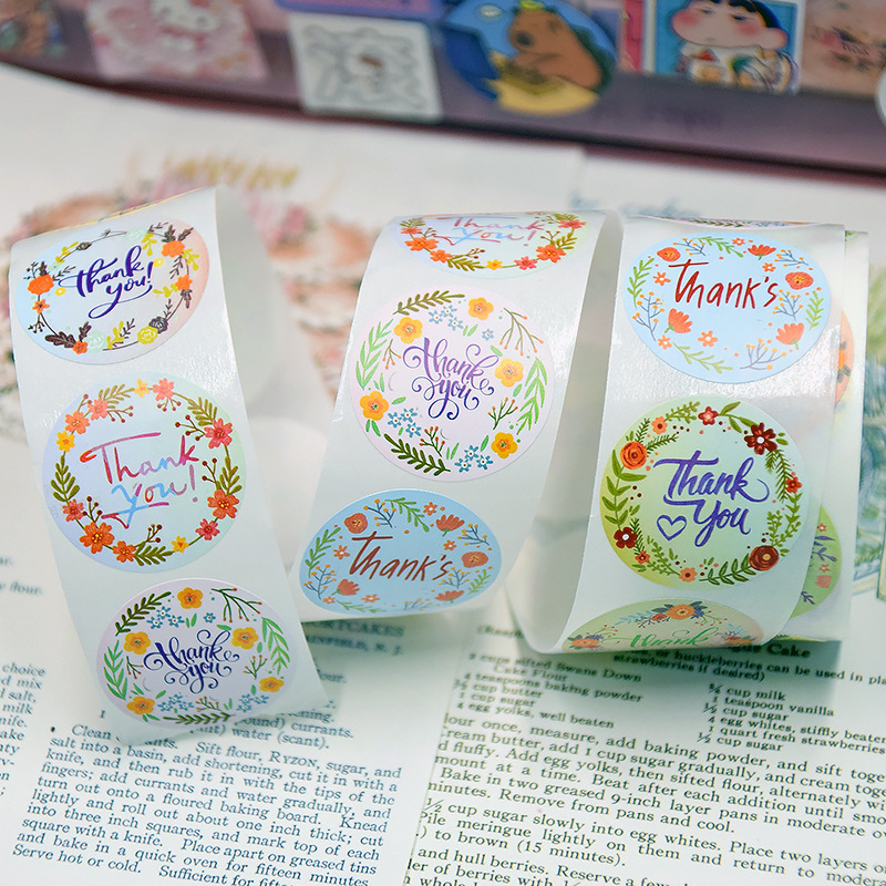 슈퍼 비용 효율적인 1500 스티커 컬러 꽃 감사 언어 롤 스티커 스타일 간단한 영어 실링 스티커 배치스토어 가기