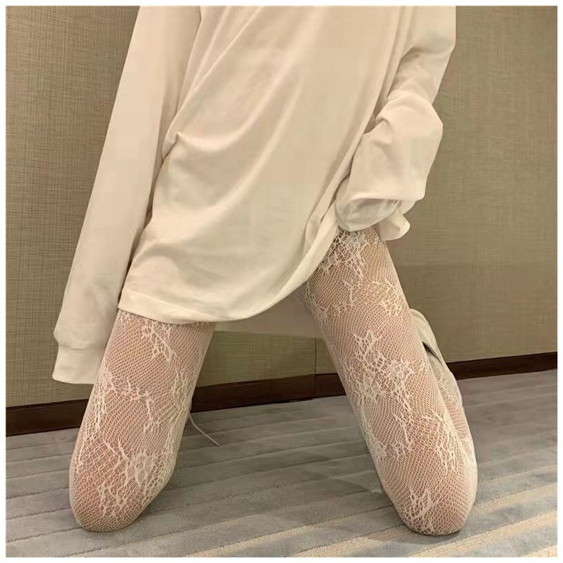 화이트 플라워 덩굴 실크 스타킹 여성의 초박형 순수 욕망 할로우 베이스 피스넷 스타킹 레이스 섹시한 블랙 실크 메쉬 레드 JK 팬티 스타킹스토어 가기