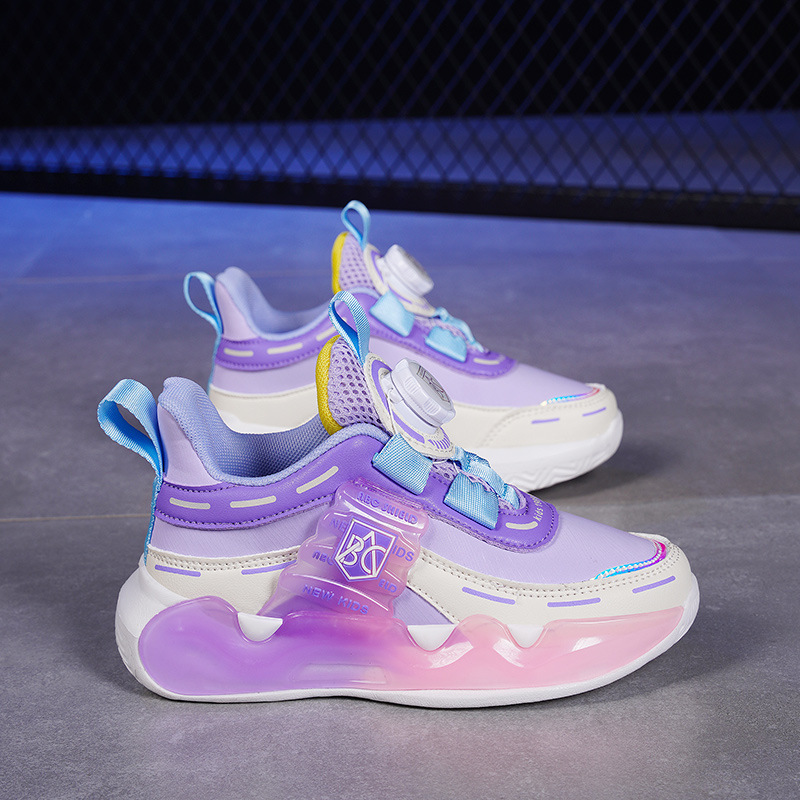 어린이 신발 소녀 6-12 세 2024 봄과 가을 새로운 가죽 내마모성 회전 버튼 달리기 신발 소년 운동화 조수