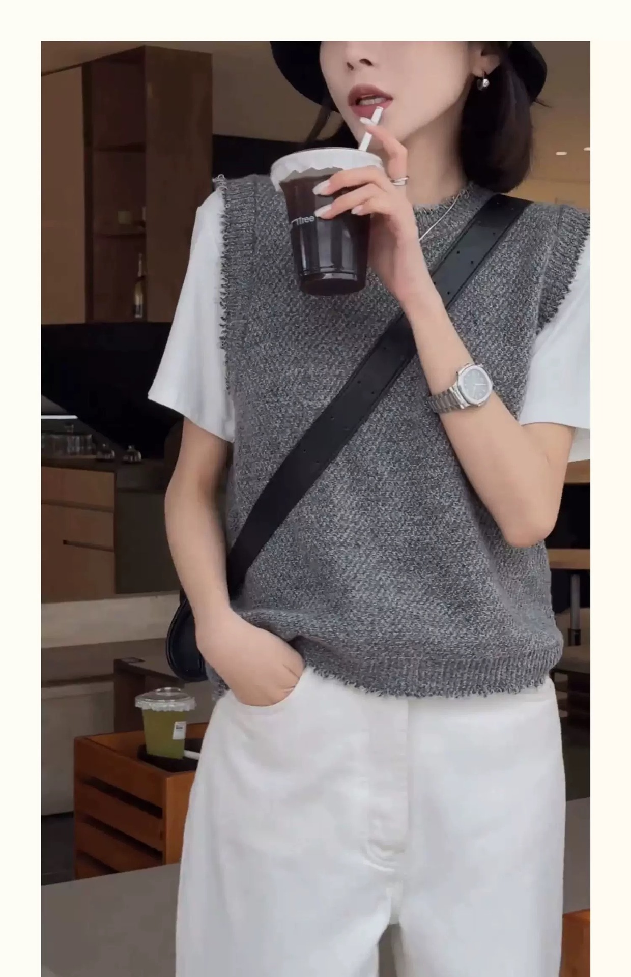 조심하는 기계 꽃 원사 수염 모든 경기 니트 조끼 여자의 2024 새로운 가을과 겨울 풀오버 민소매 조끼 스택 혼합 색상스토어 가기