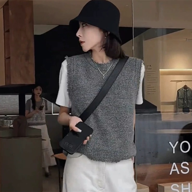 조심하는 기계 꽃 원사 수염 모든 경기 니트 조끼 여자의 2024 새로운 가을과 겨울 풀오버 민소매 조끼 스택 혼합 색상