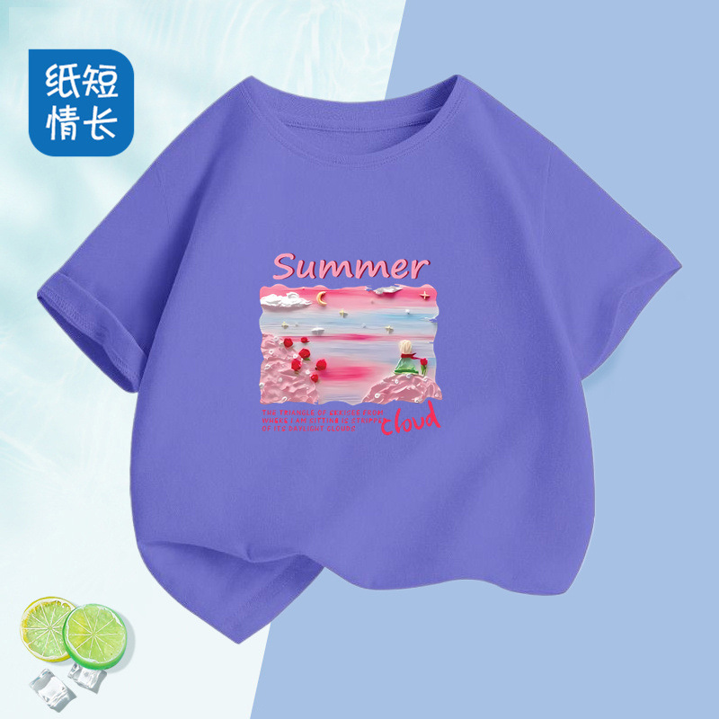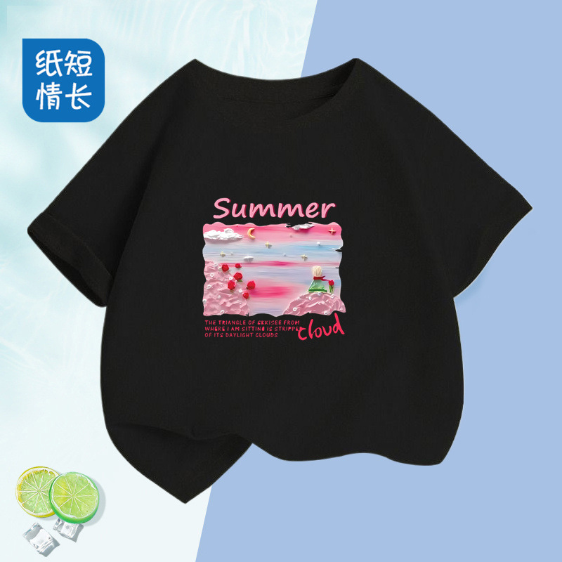 2348 #100% 코튼 티셔츠 소년 소녀 새 여름 반팔 캐주얼 탑 웨스턴 스타일 어린이 반소매 여름 패션