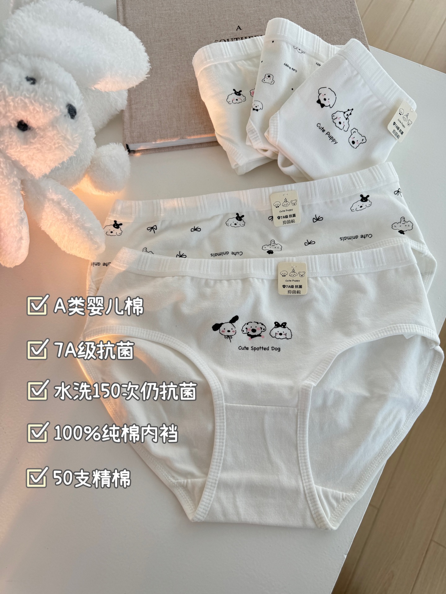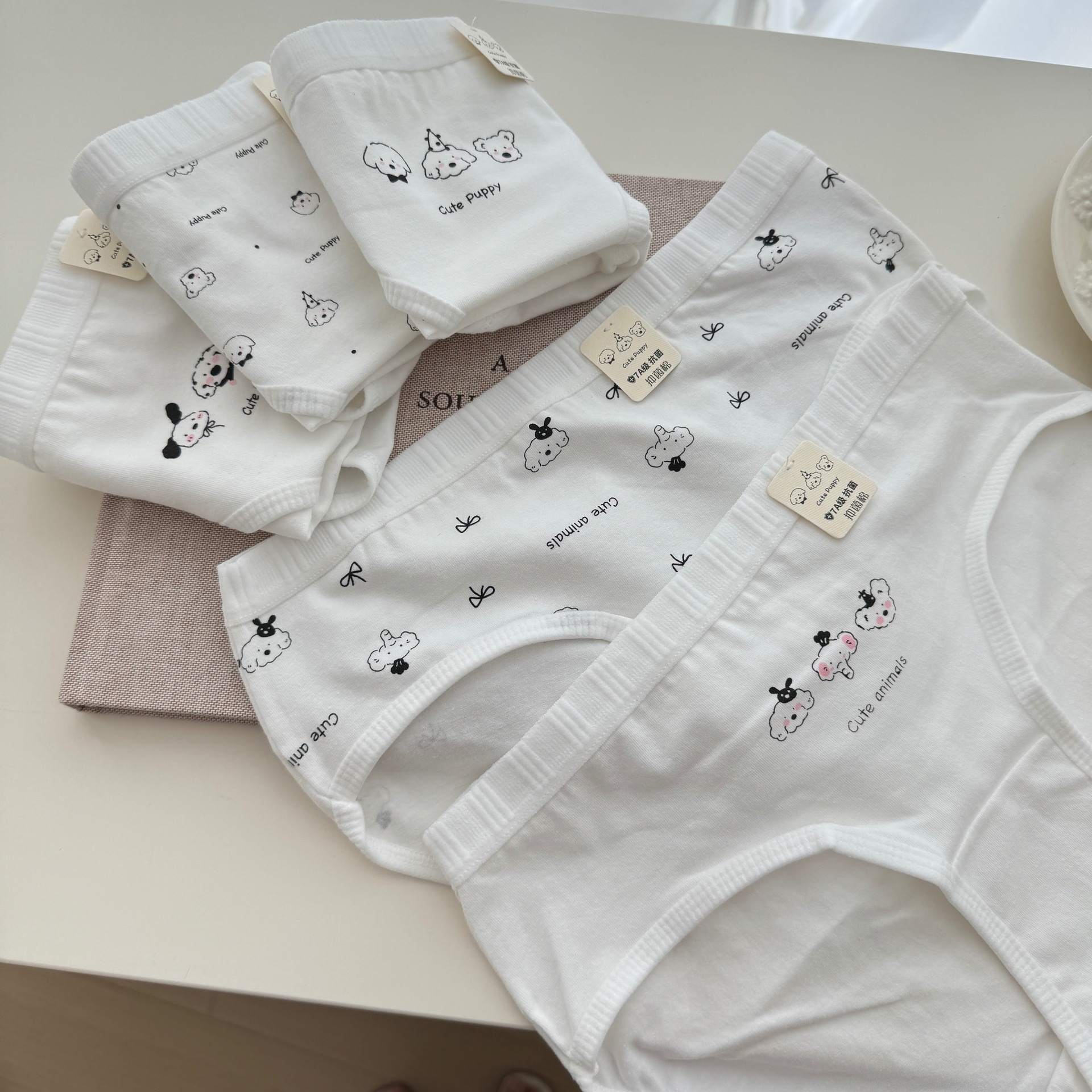 Kameow 원래 클래스 아기 면화 소녀 속옷 7A 항균 통기성 중 허리 흰색 귀여운 학생 브리프