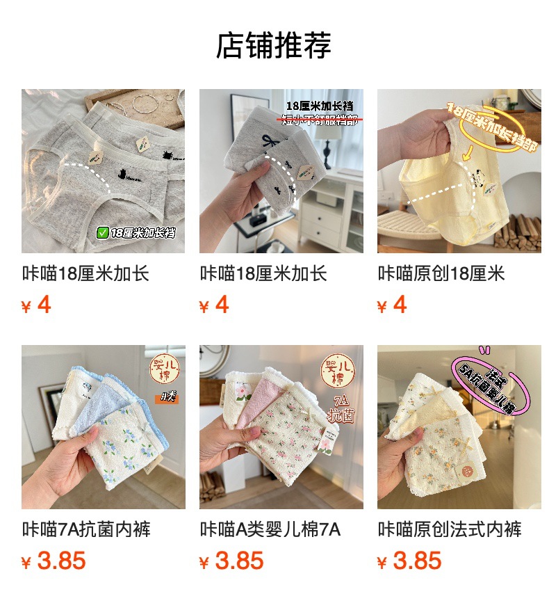 Kameow 원래 클래스 아기 면화 소녀 속옷 7A 항균 통기성 중 허리 흰색 귀여운 학생 브리프스토어 가기