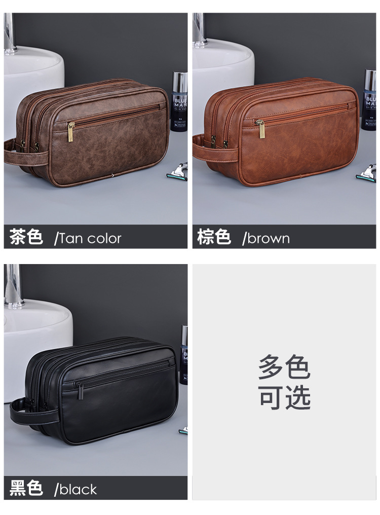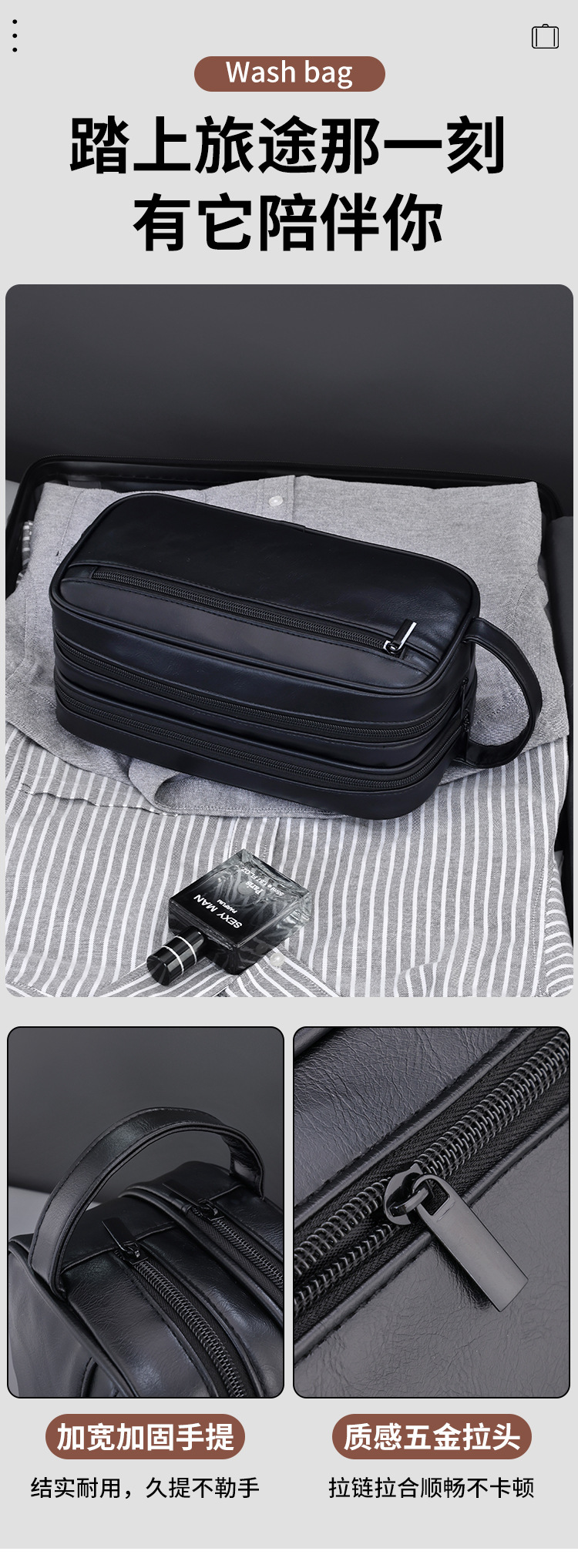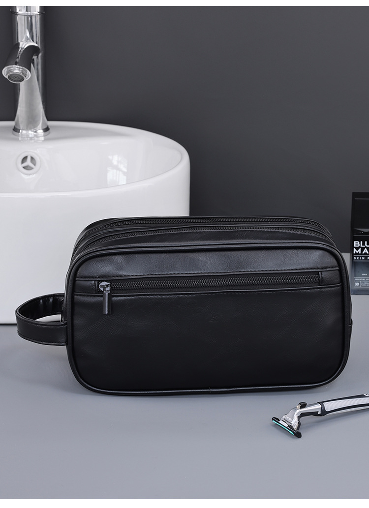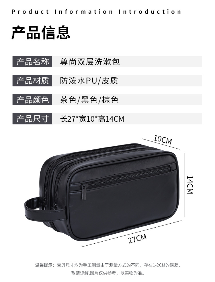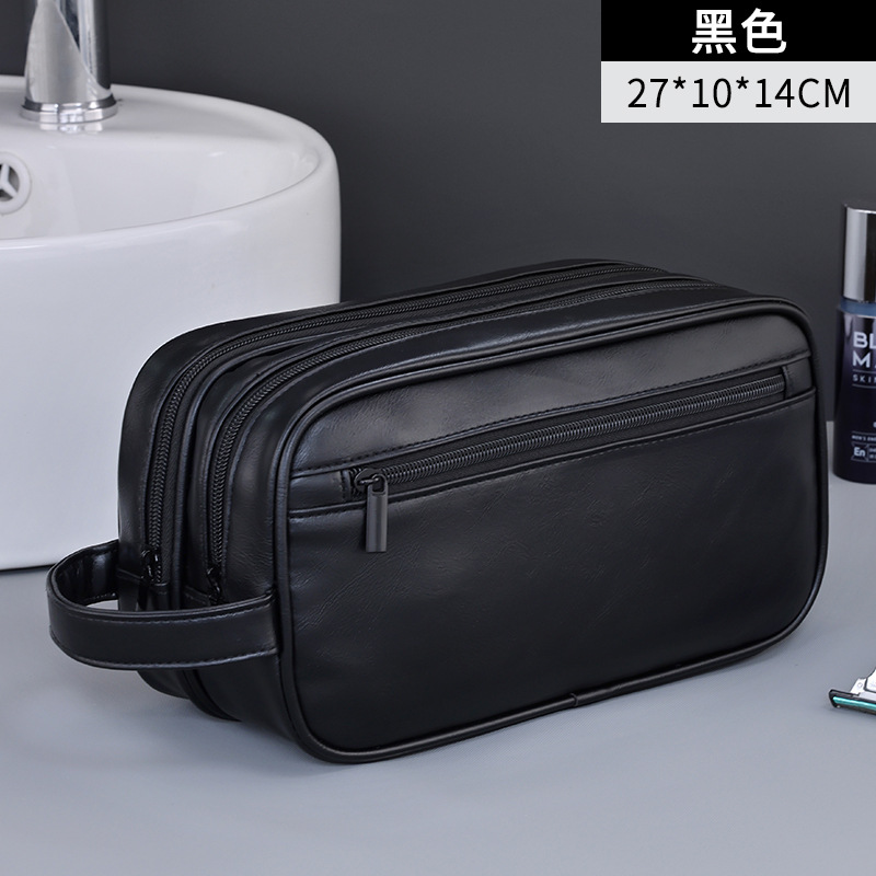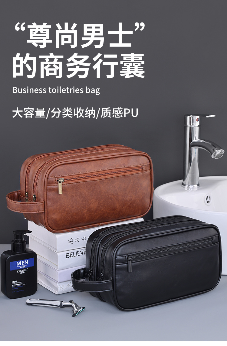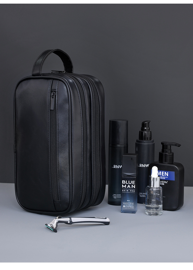 비즈니스 여행을위한 국경 이중 레이어 휴대용 화장실 가방 간단한 남성 화장품 가방 방수 PU 화장품 보관 가방