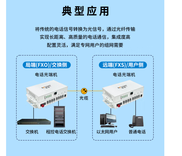 Boyang BY-8P1E 전화 광 트랜시버 8 방향 전화 음성 1 방향 네트워크 인터콤 오디오 1 방향 이더넷 FC스토어 가기
