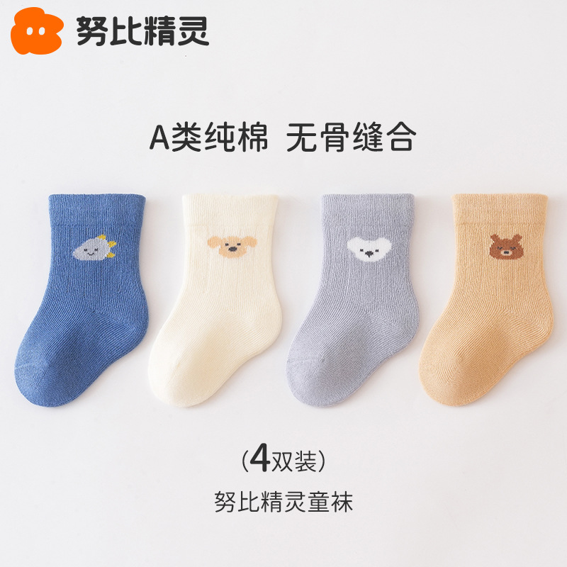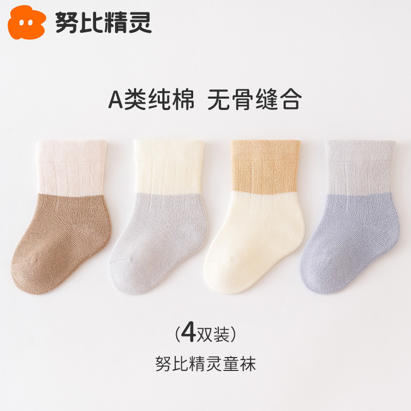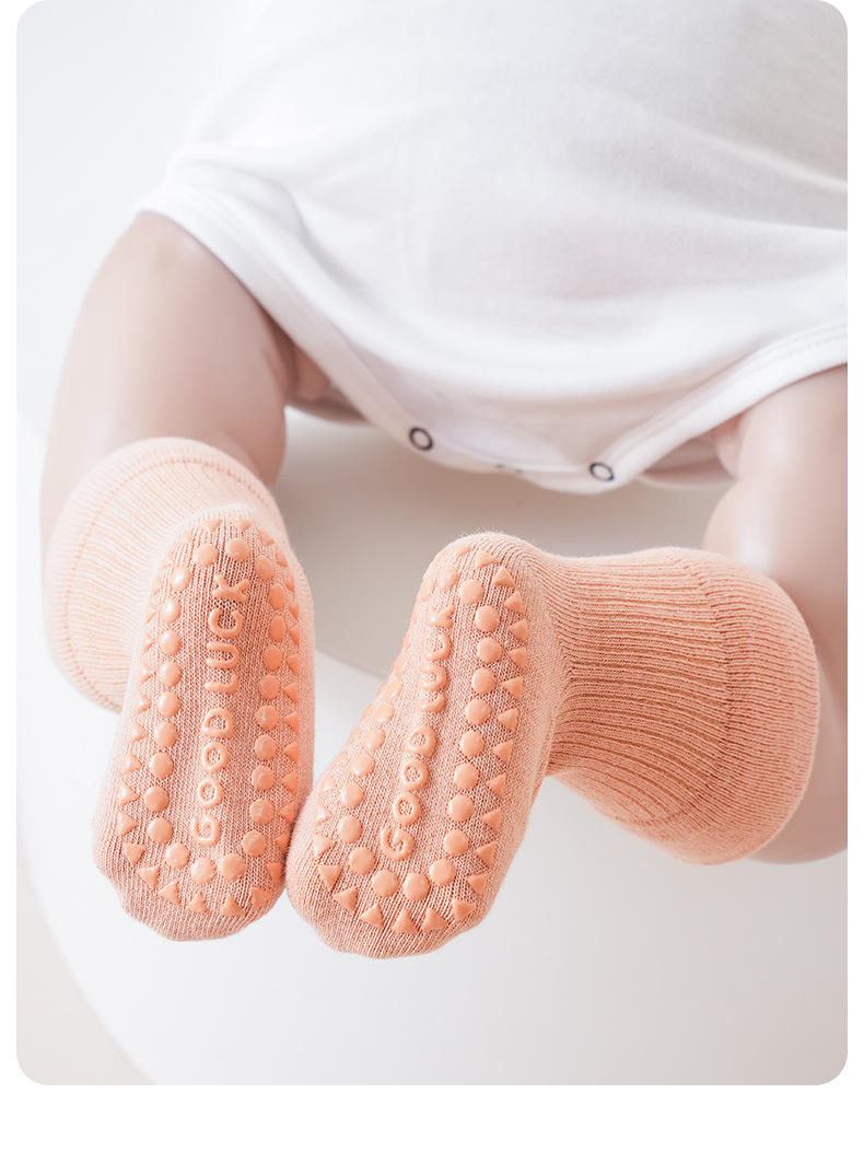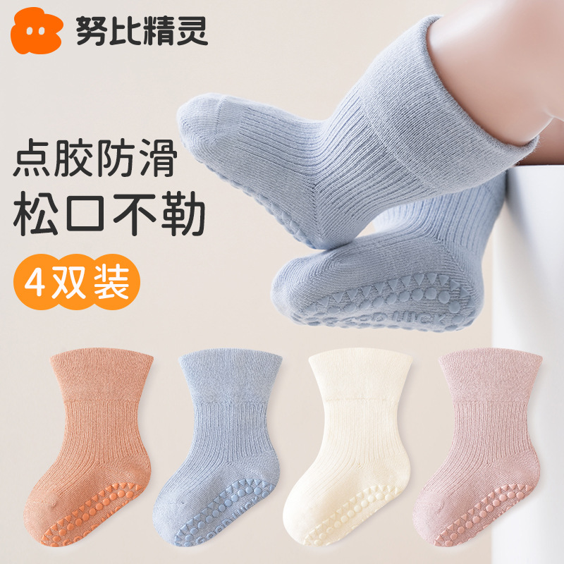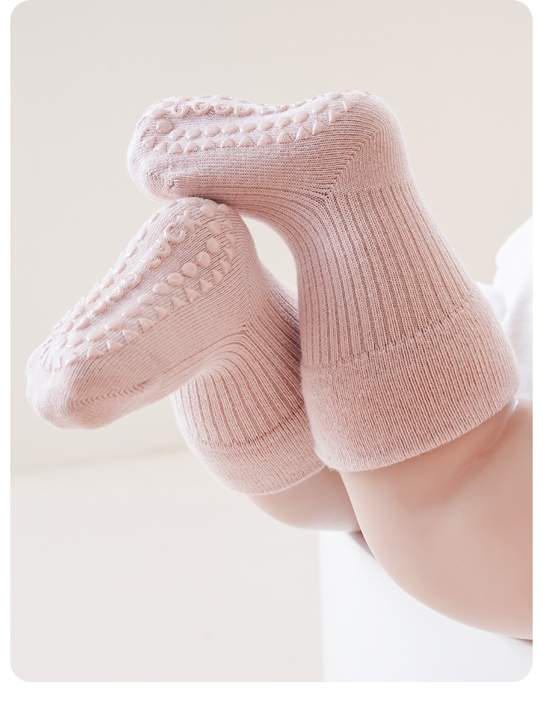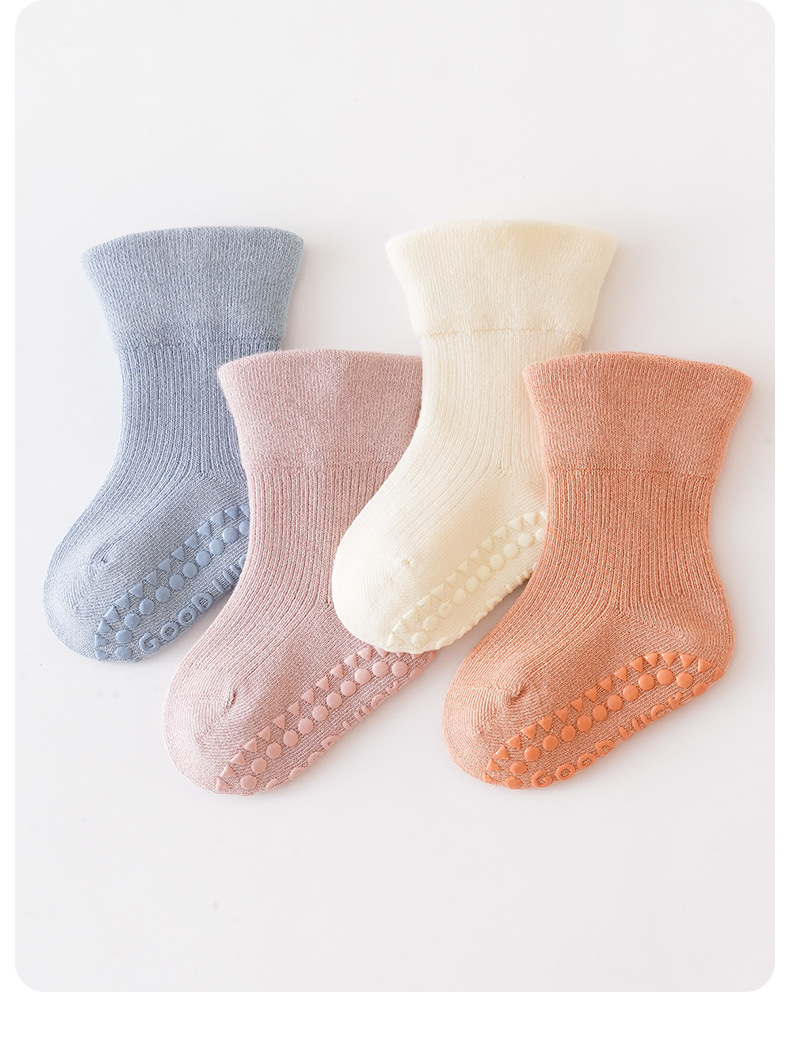 신생아 아기 바닥 양말 어린이 가을과 겨울 신생아 아기 양말 미끄럼 방지 미드 튜브 양말 어린이 뼈없는 면 양말