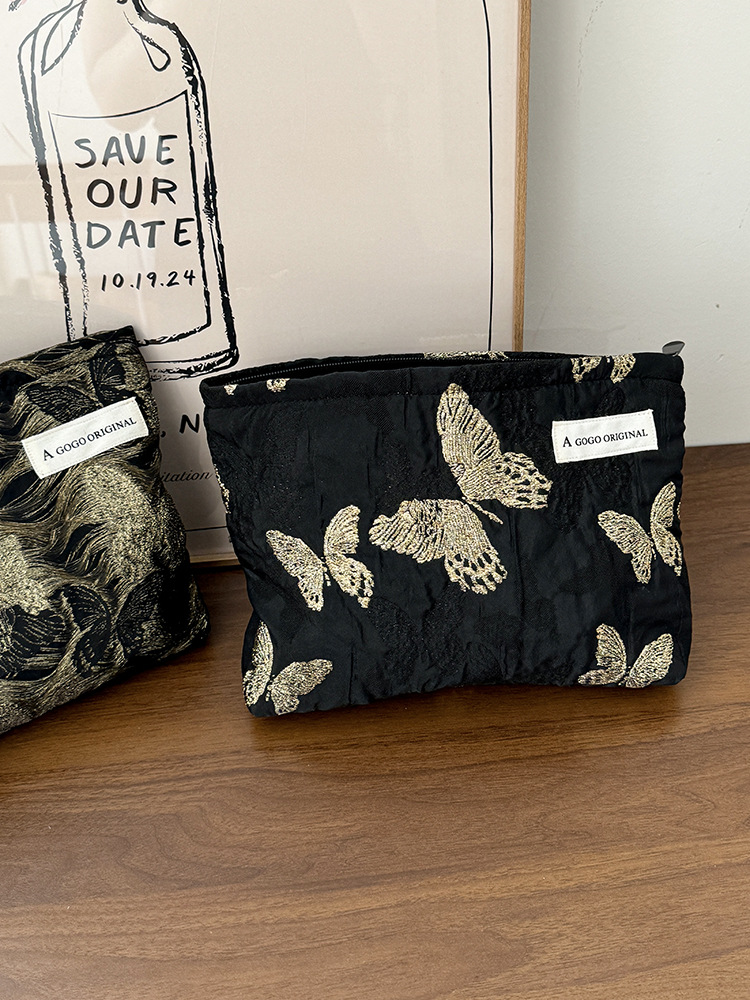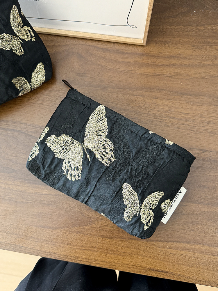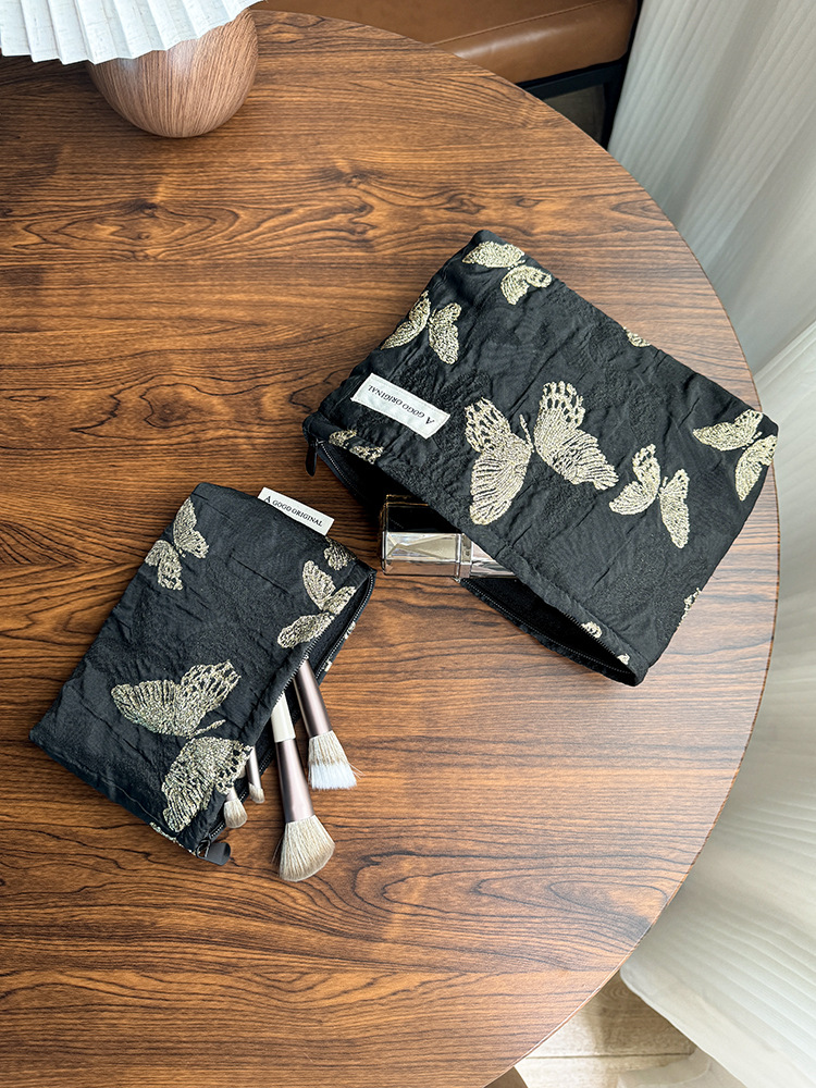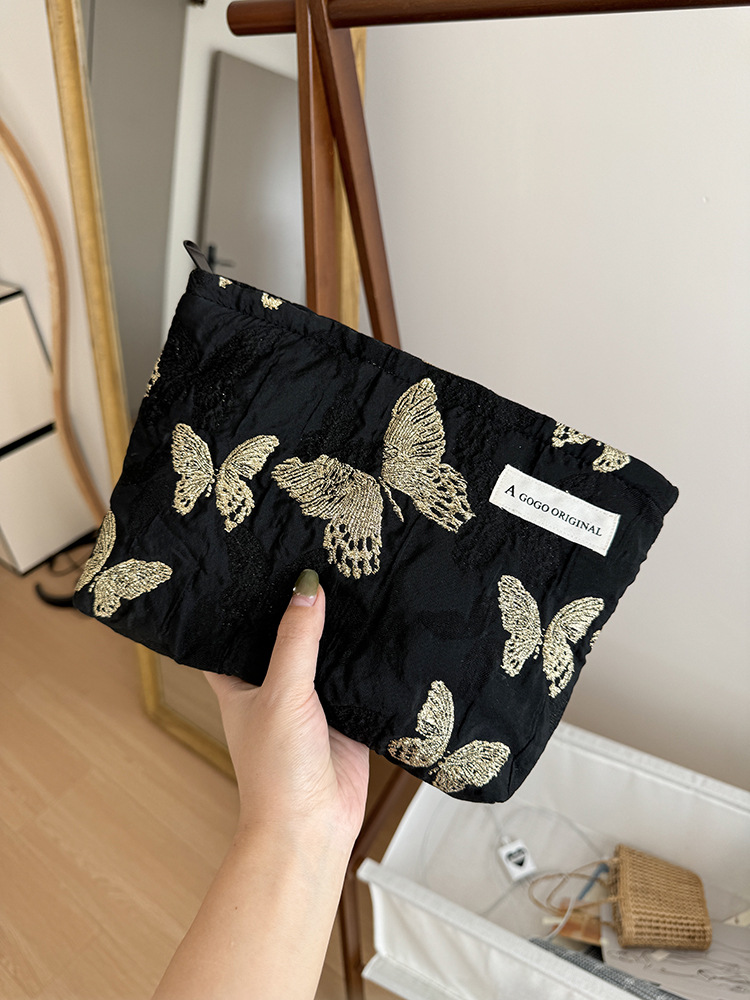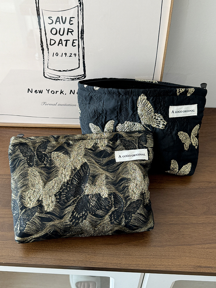 골드 나비 화장품 가방 재고 도매 직물 스킨 케어 보관 가방 작은 사각 가방 클러치 캔버스 화장실 가방