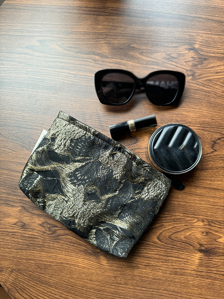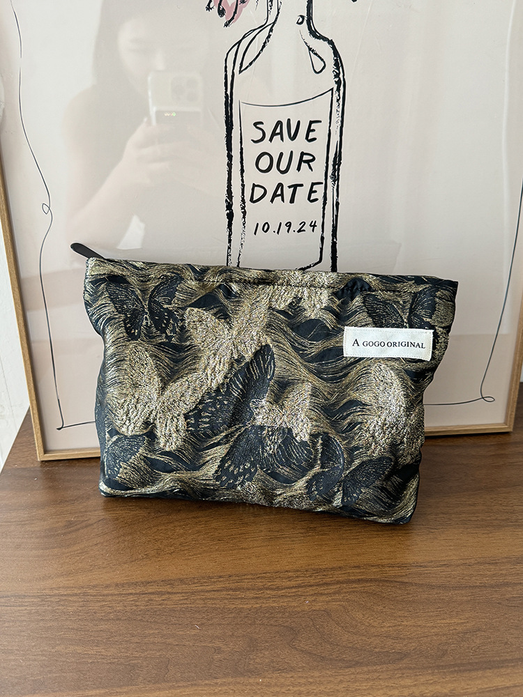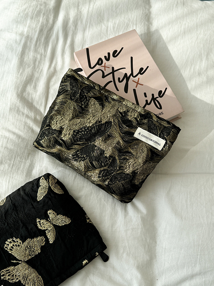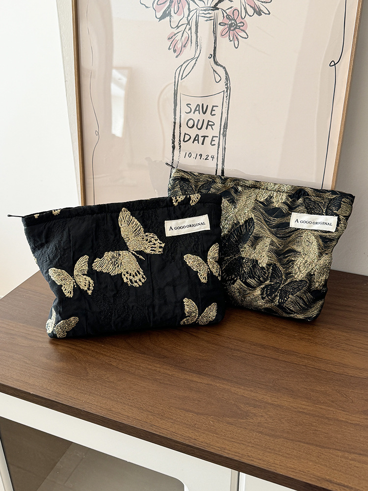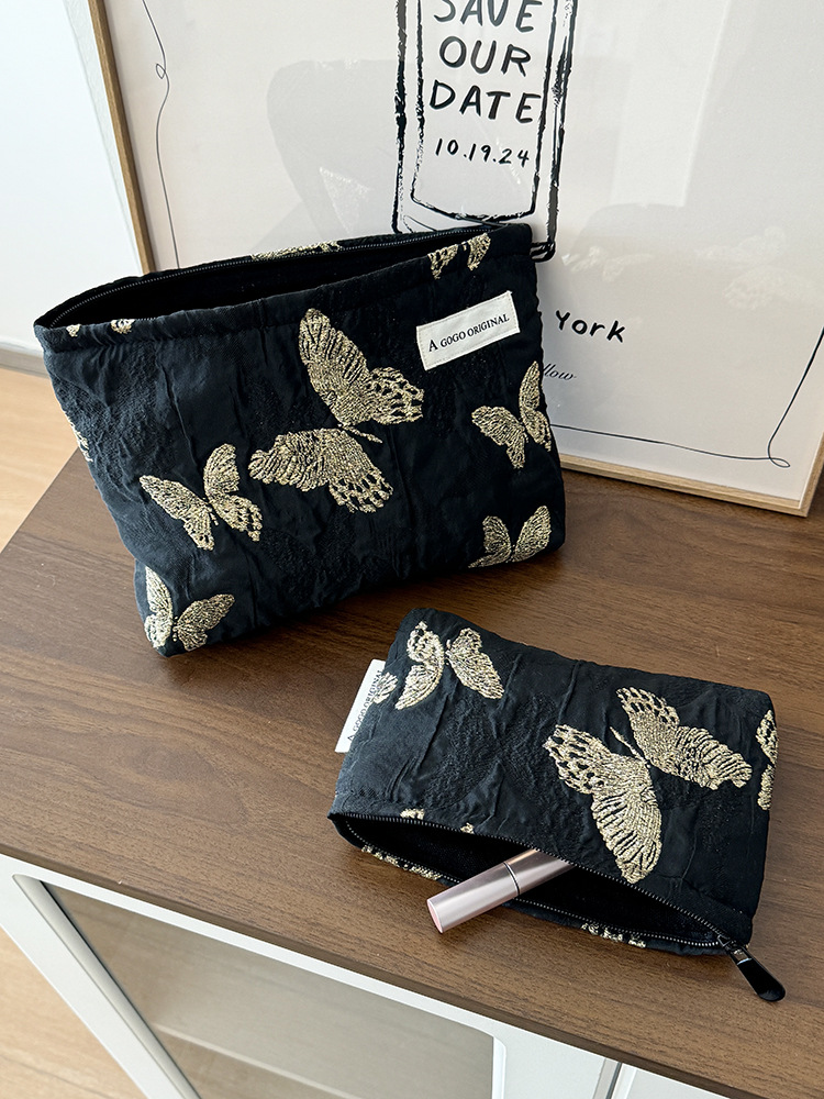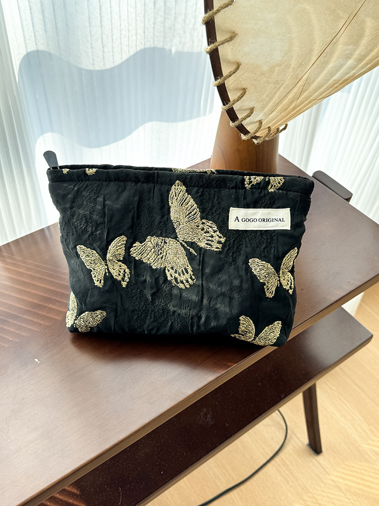 골드 나비 화장품 가방 재고 도매 직물 스킨 케어 보관 가방 작은 사각 가방 클러치 캔버스 화장실 가방