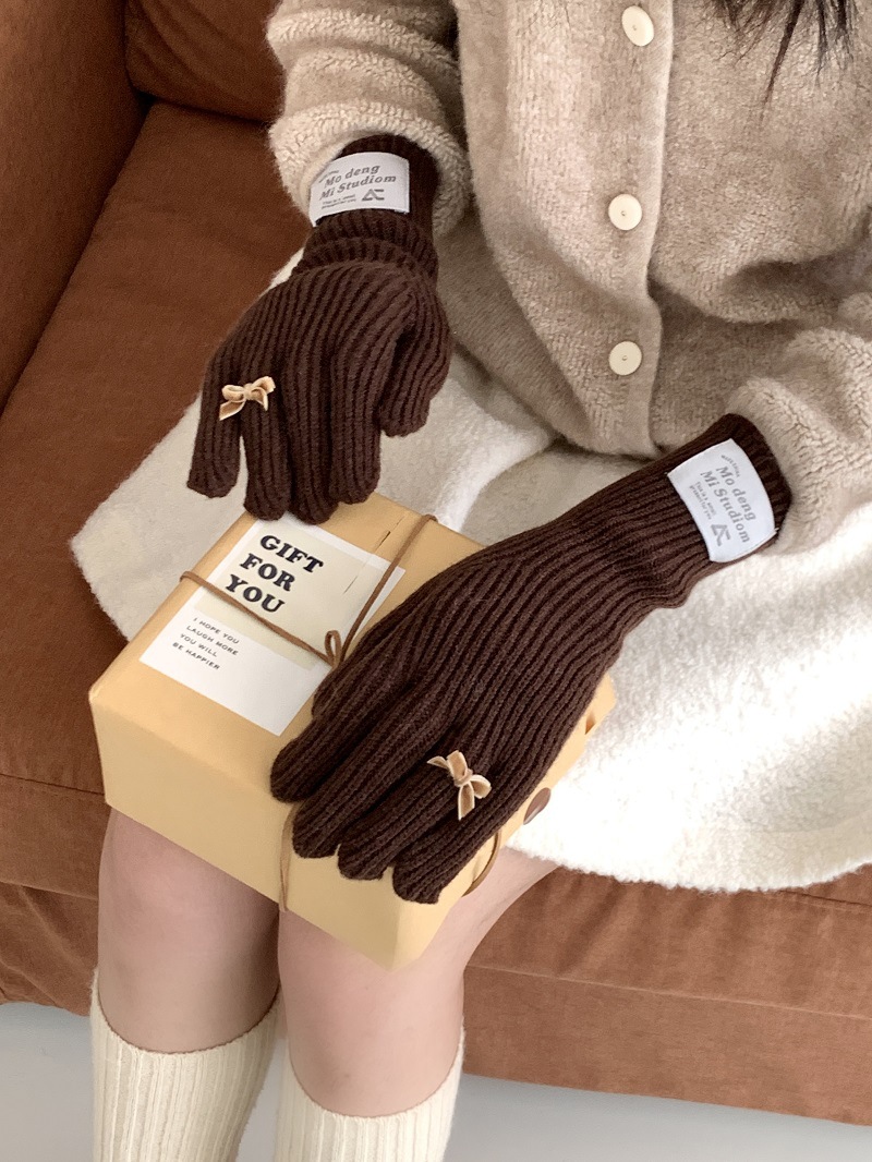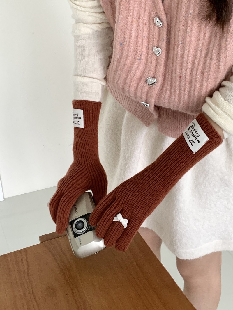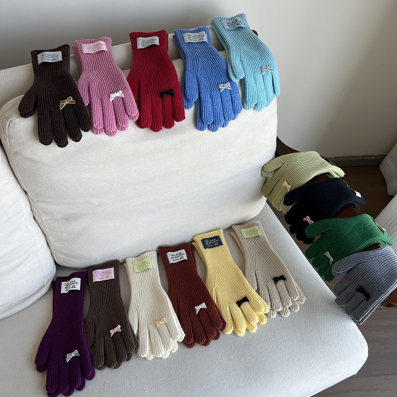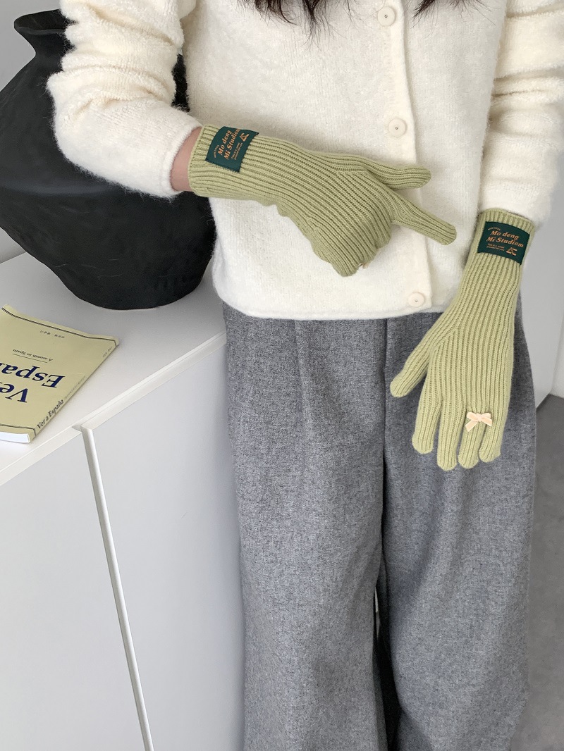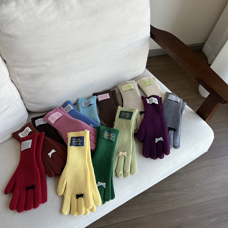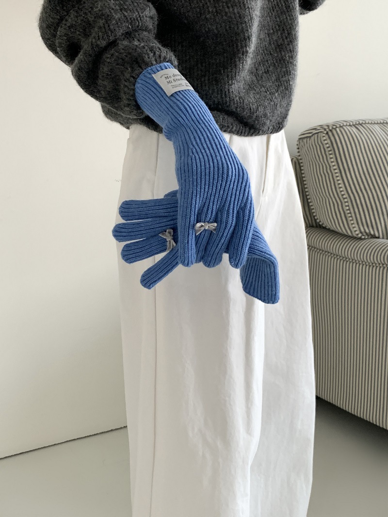 양모 니트 활 장갑으로 여학생 귀여운 한국 단색 가을과 겨울 승마 따뜻한 터치 스크린 조수스토어 가기