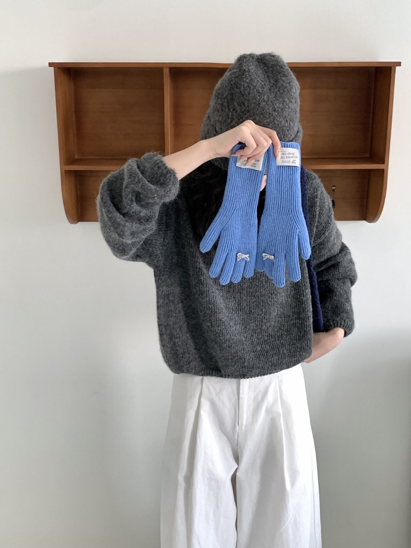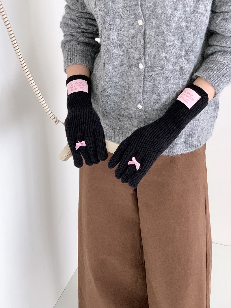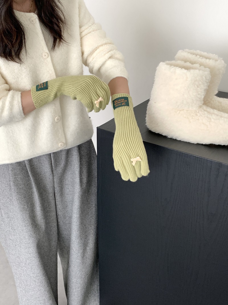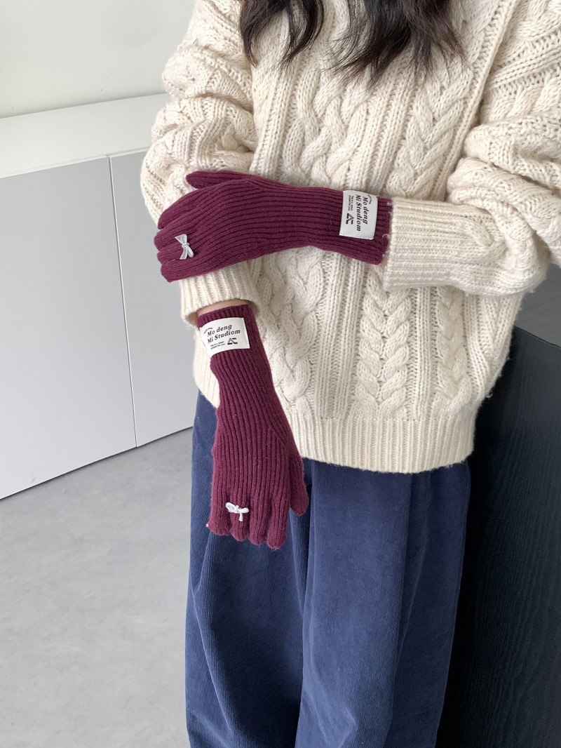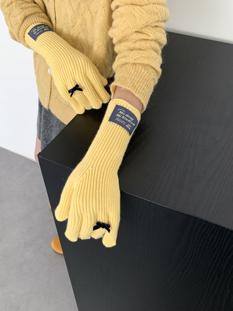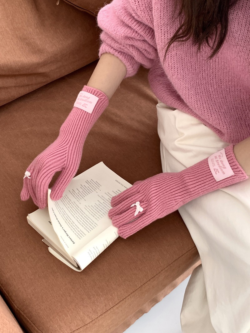 양모 니트 활 장갑으로 여학생 귀여운 한국 단색 가을과 겨울 승마 따뜻한 터치 스크린 조수스토어 가기