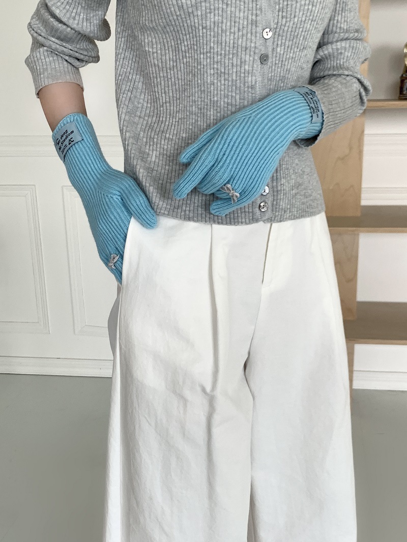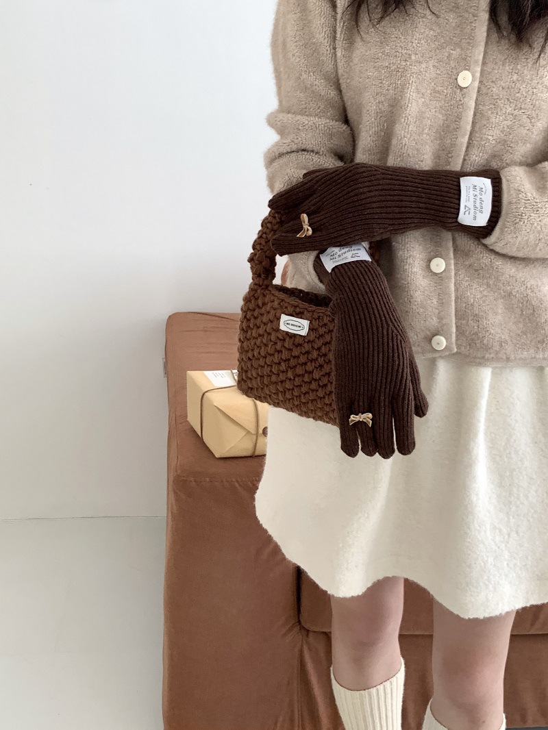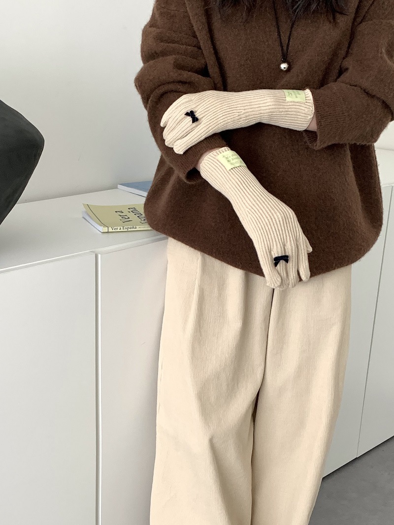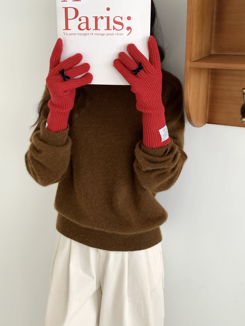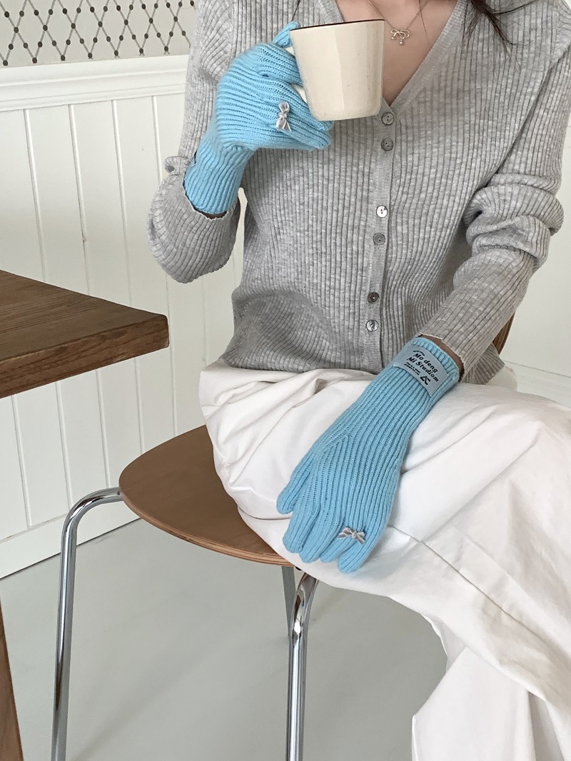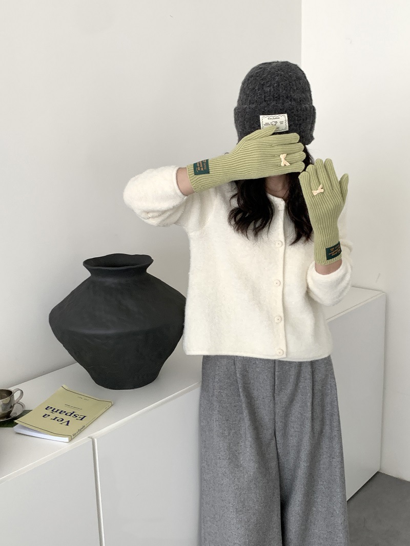 양모 니트 활 장갑으로 여학생 귀여운 한국 단색 가을과 겨울 승마 따뜻한 터치 스크린 조수스토어 가기