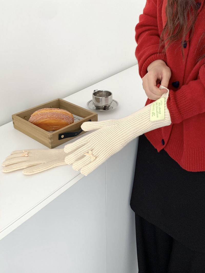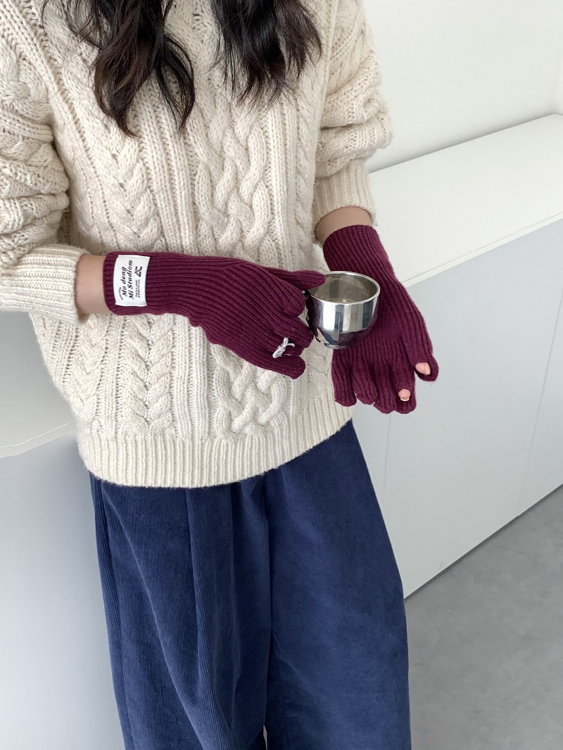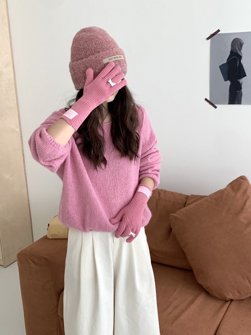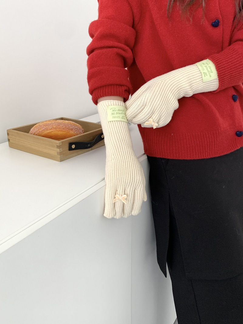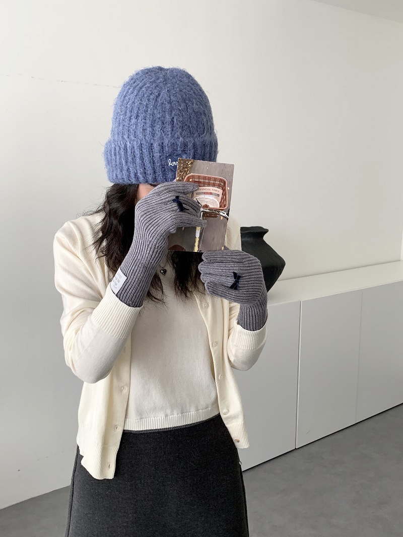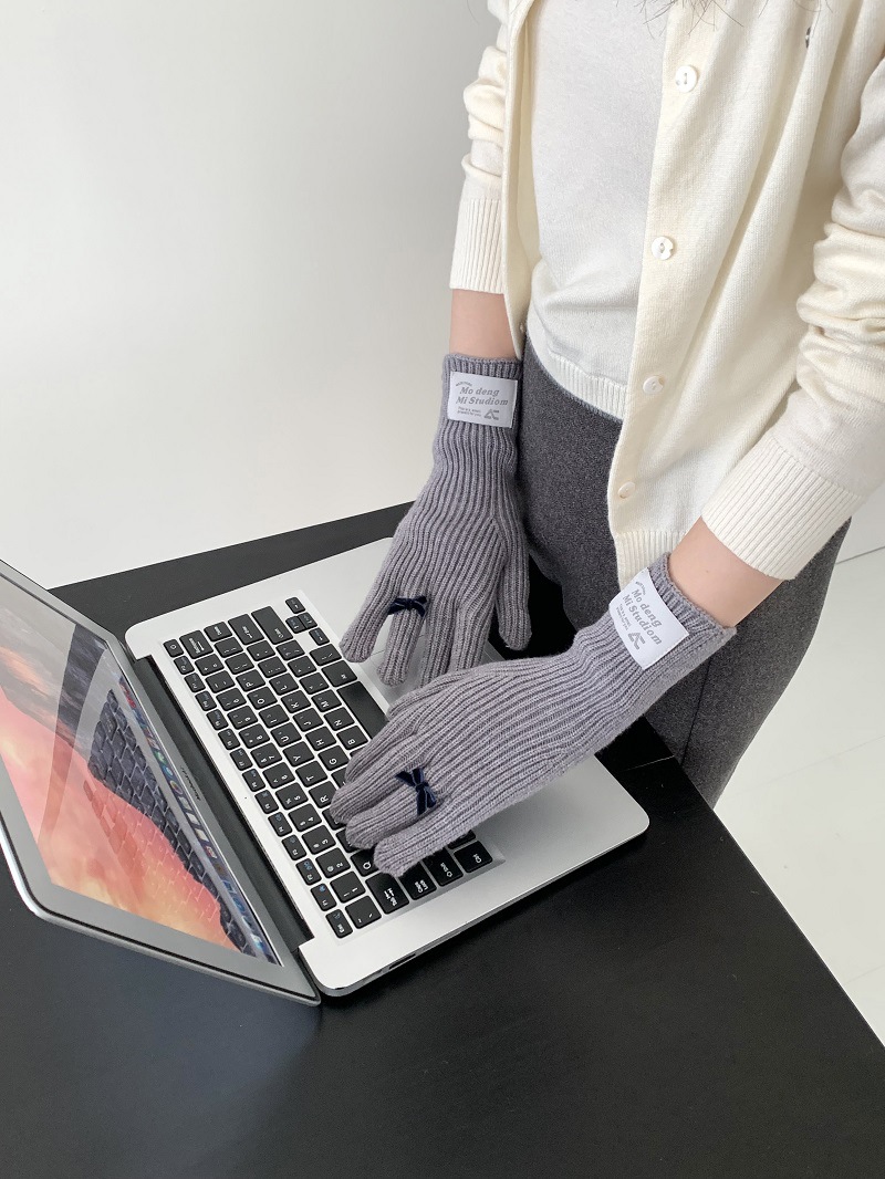 양모 니트 활 장갑으로 여학생 귀여운 한국 단색 가을과 겨울 승마 따뜻한 터치 스크린 조수스토어 가기