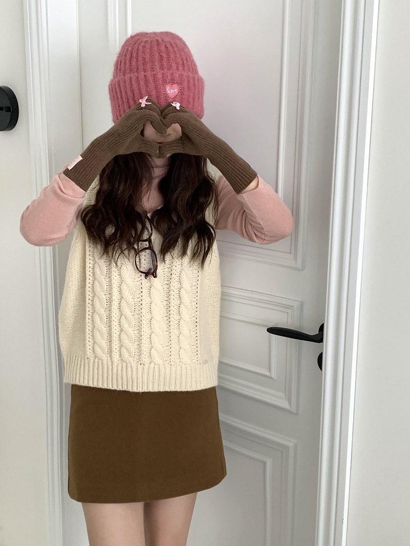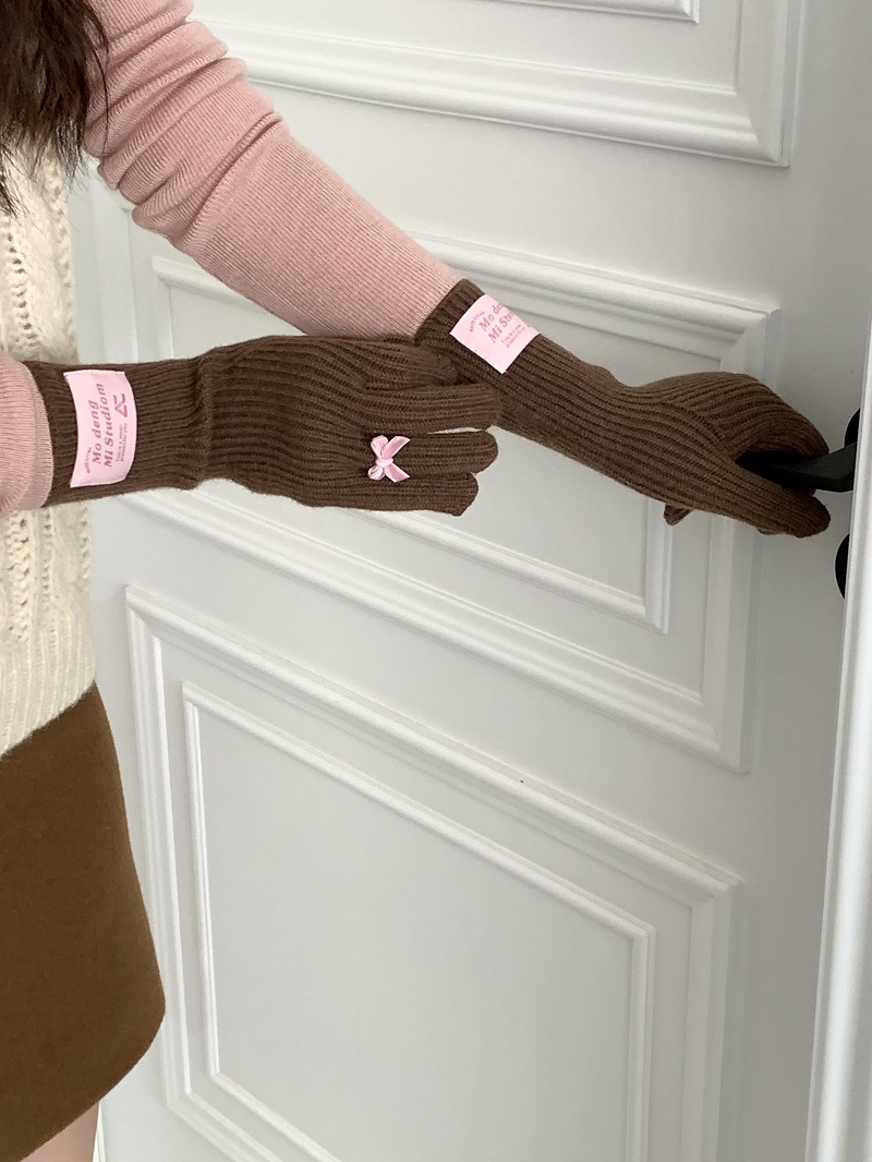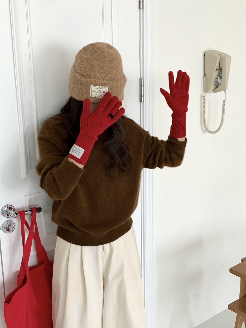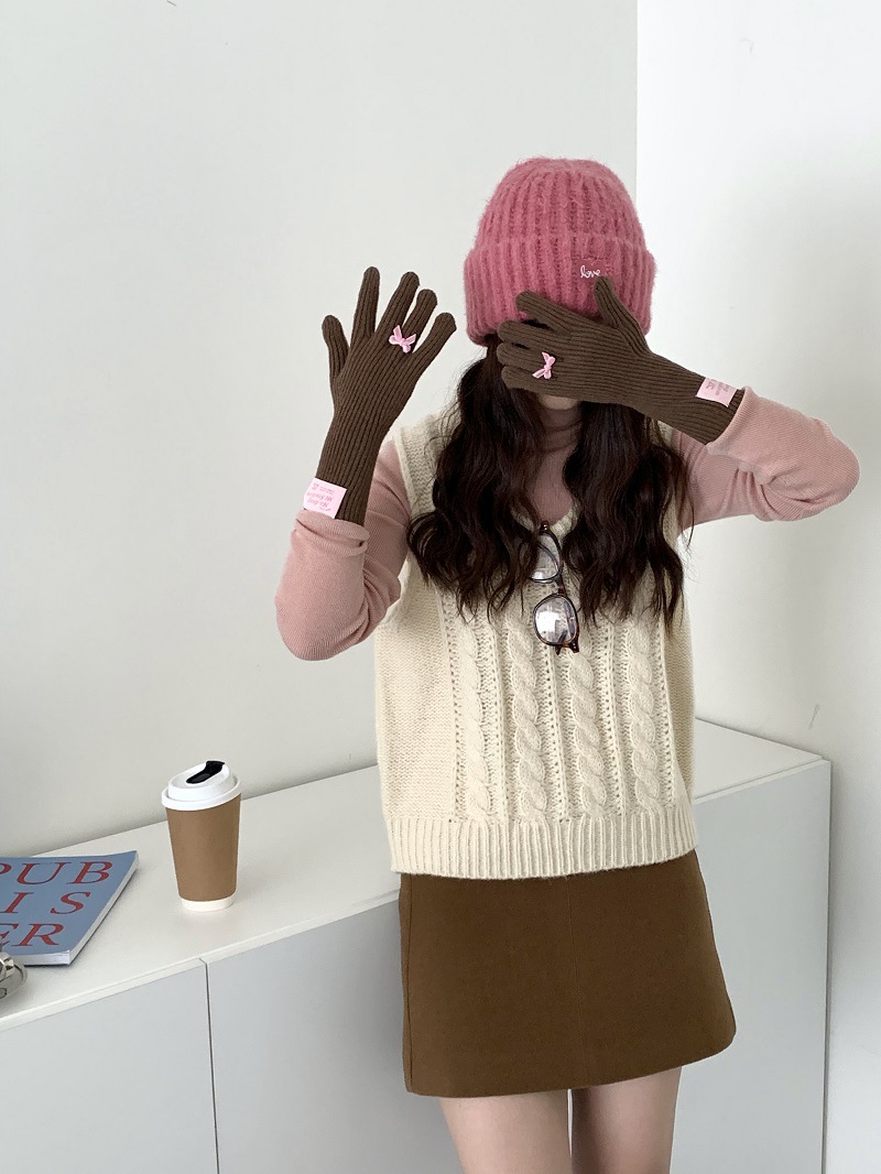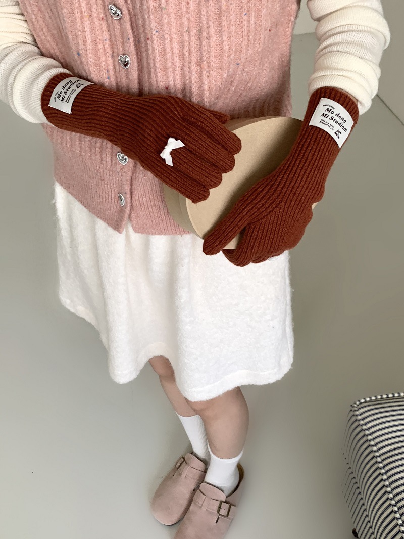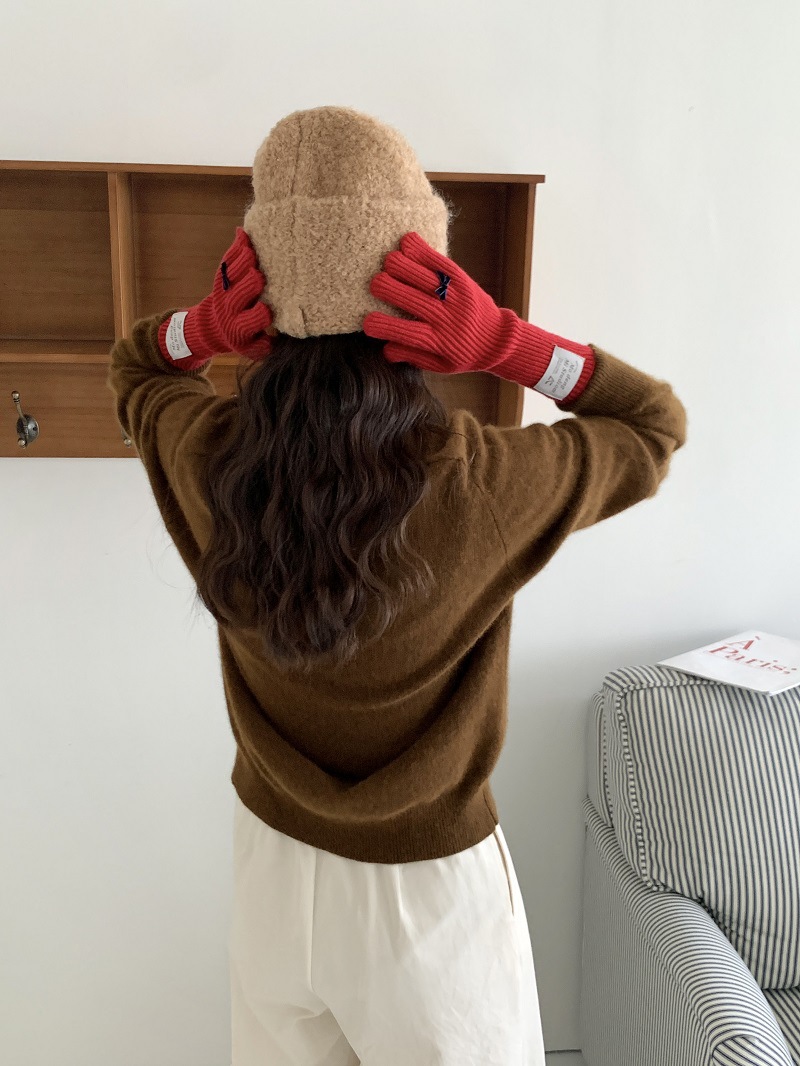 양모 니트 활 장갑으로 여학생 귀여운 한국 단색 가을과 겨울 승마 따뜻한 터치 스크린 조수스토어 가기