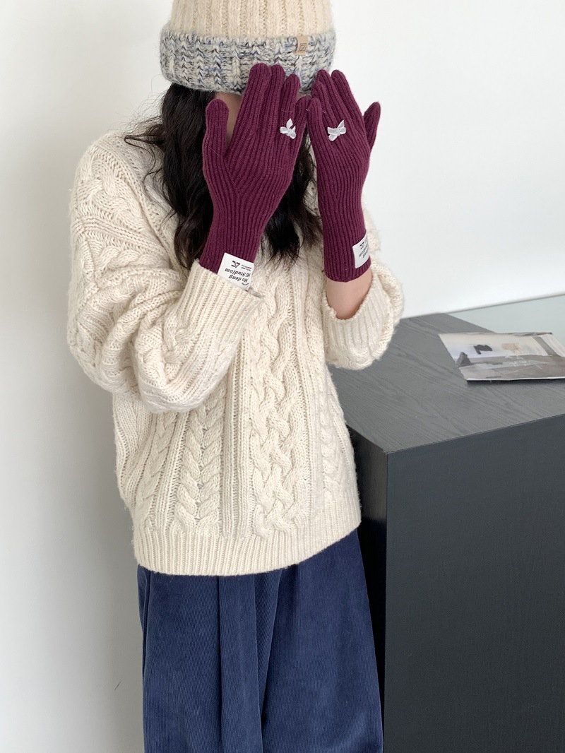양모 니트 활 장갑으로 여학생 귀여운 한국 단색 가을과 겨울 승마 따뜻한 터치 스크린 조수
