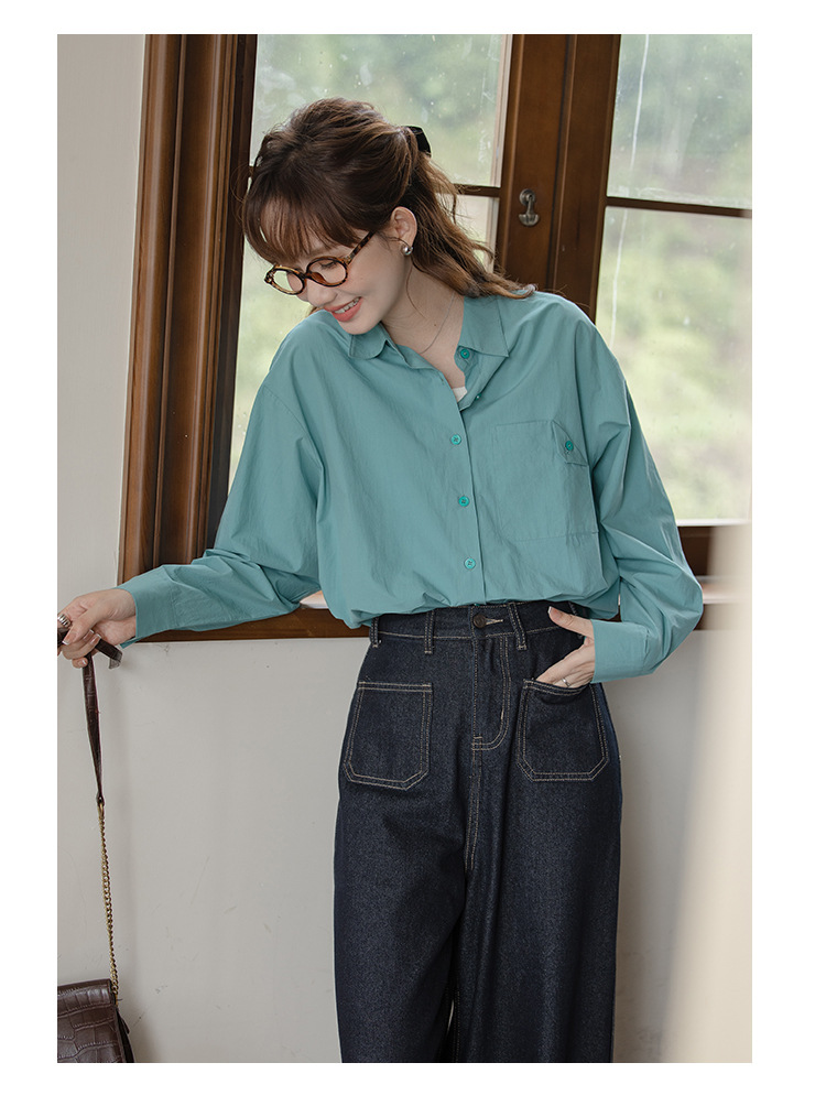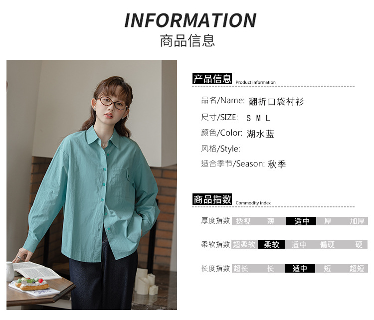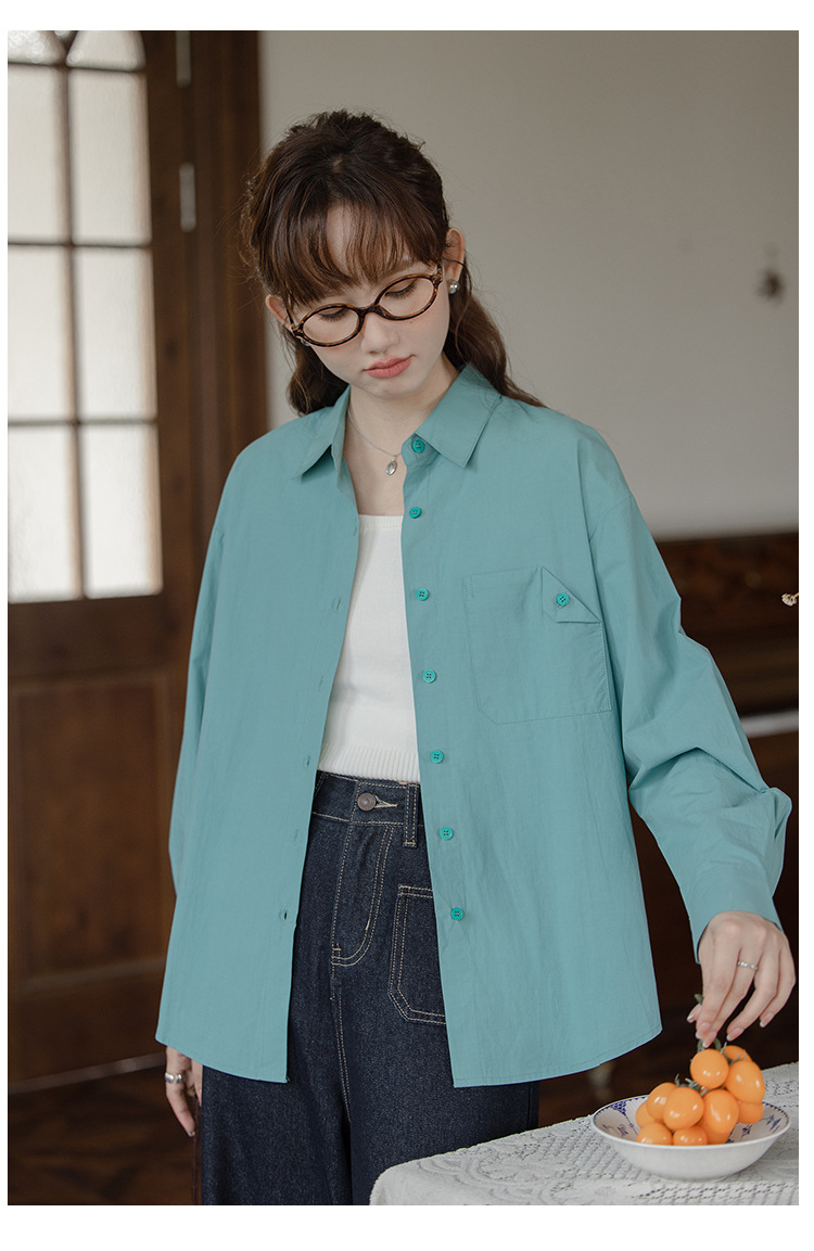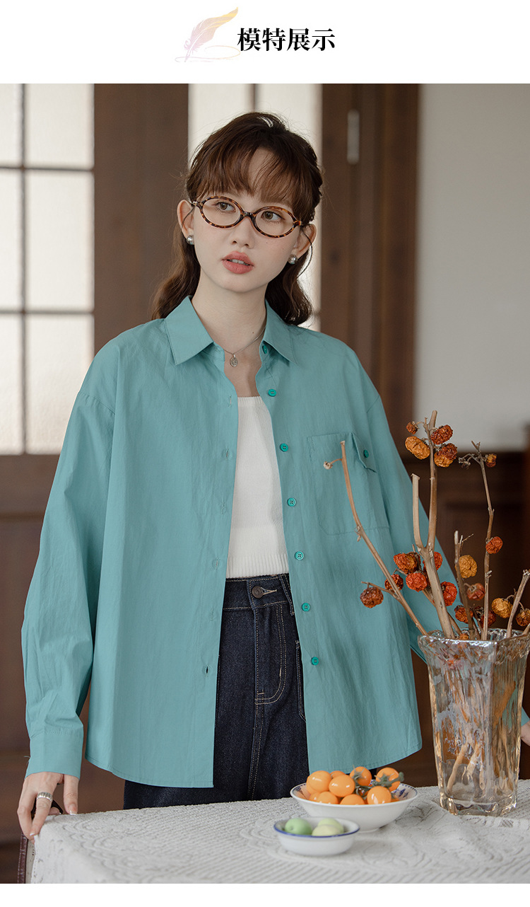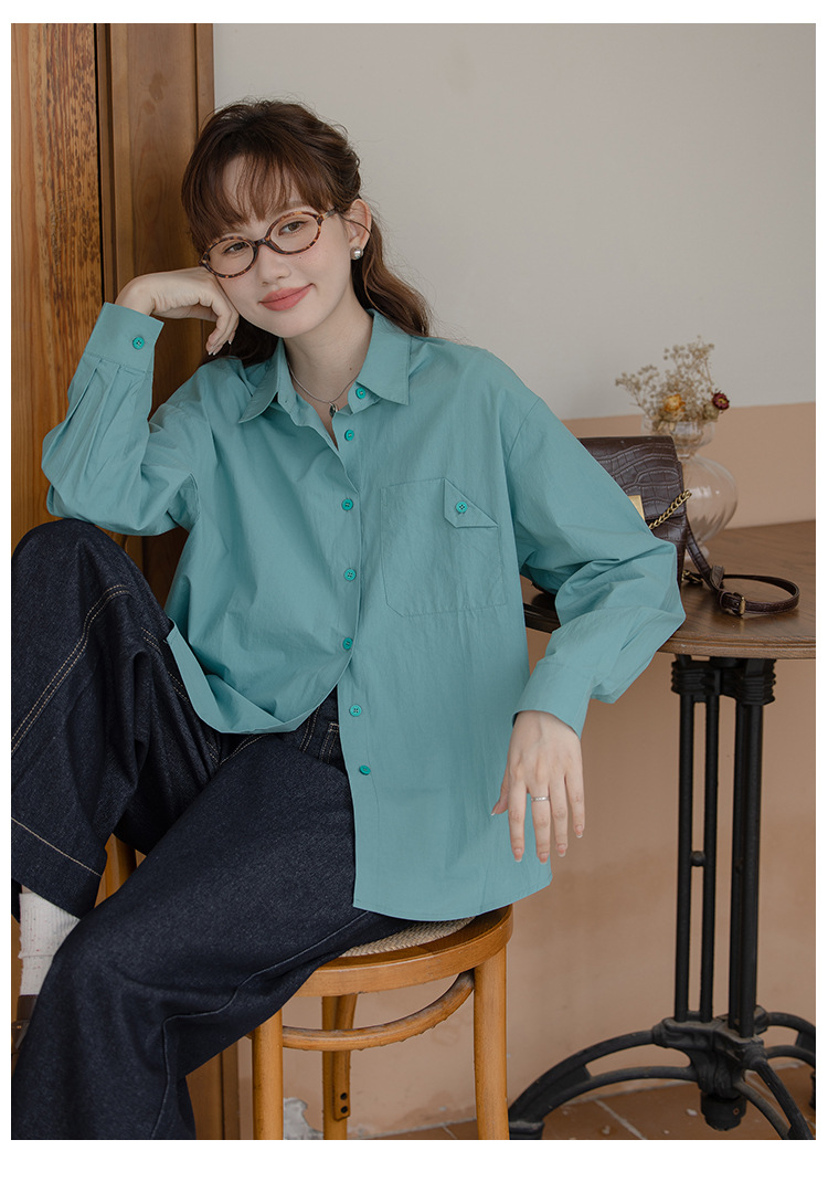 가을 2024 새로운 한국 스타일 Ins 세련된 접이식 디자인 센스 포켓 느슨한 긴팔 셔츠 여성 패션스토어 가기