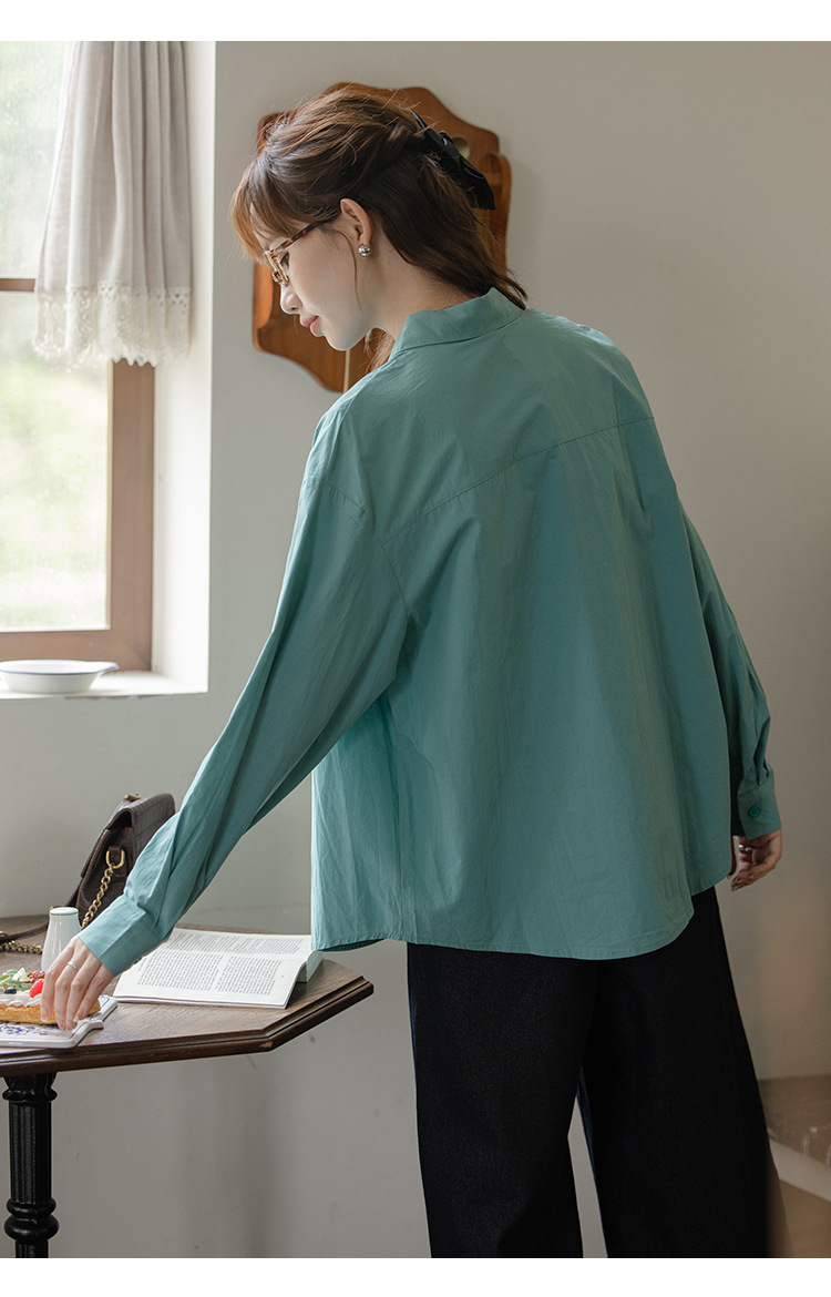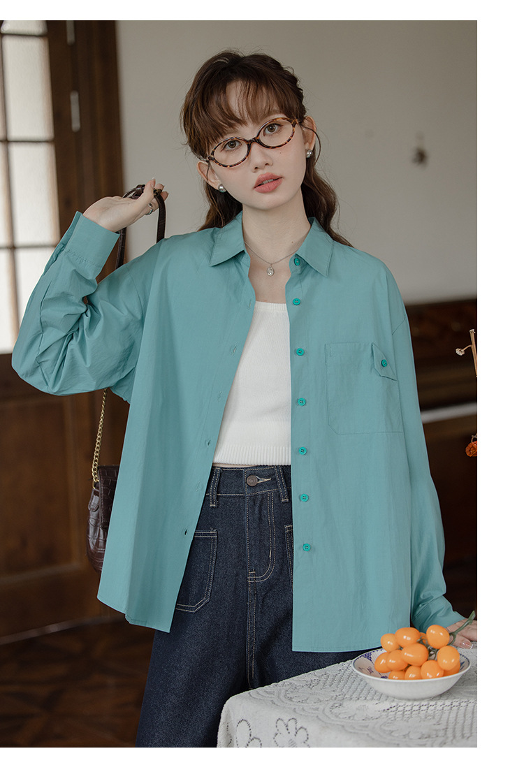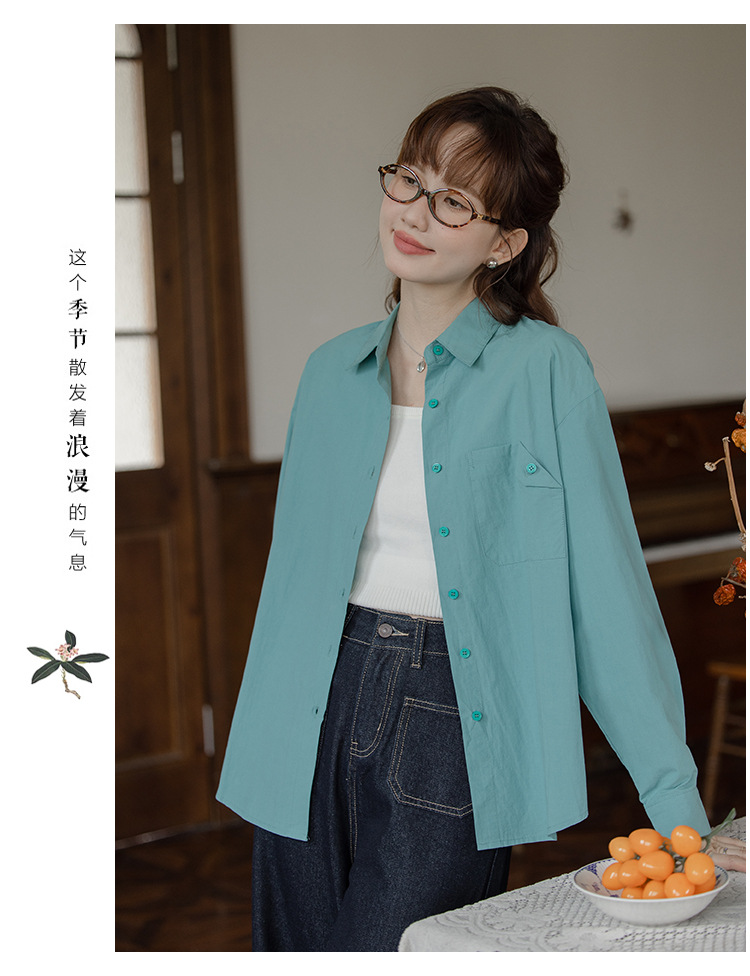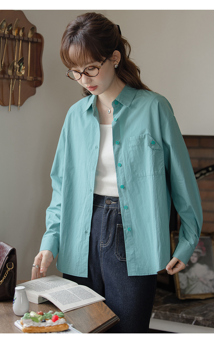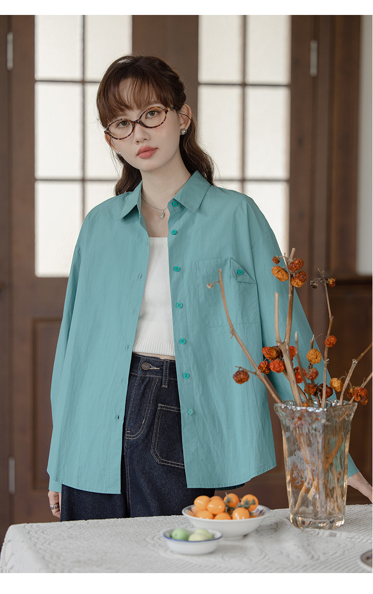 가을 2024 새로운 한국 스타일 Ins 세련된 접이식 디자인 센스 포켓 느슨한 긴팔 셔츠 여성 패션스토어 가기