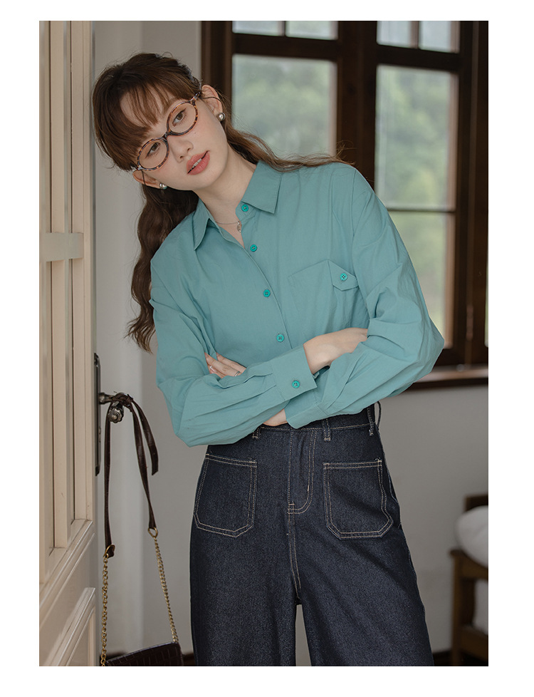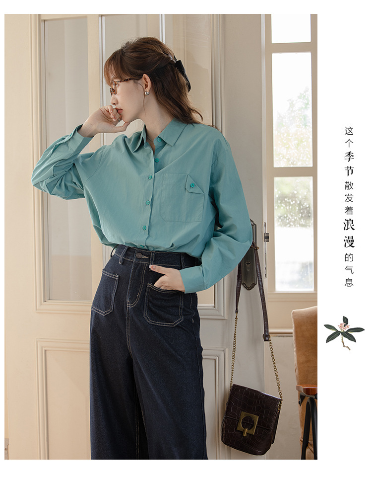가을 2024 새로운 한국 스타일 Ins 세련된 접이식 디자인 센스 포켓 느슨한 긴팔 셔츠 여성 패션