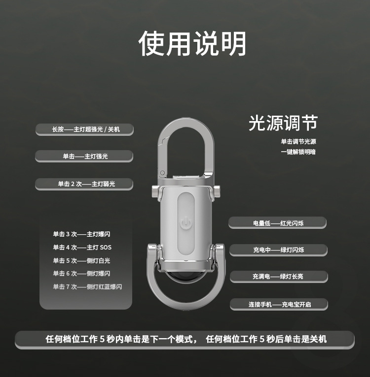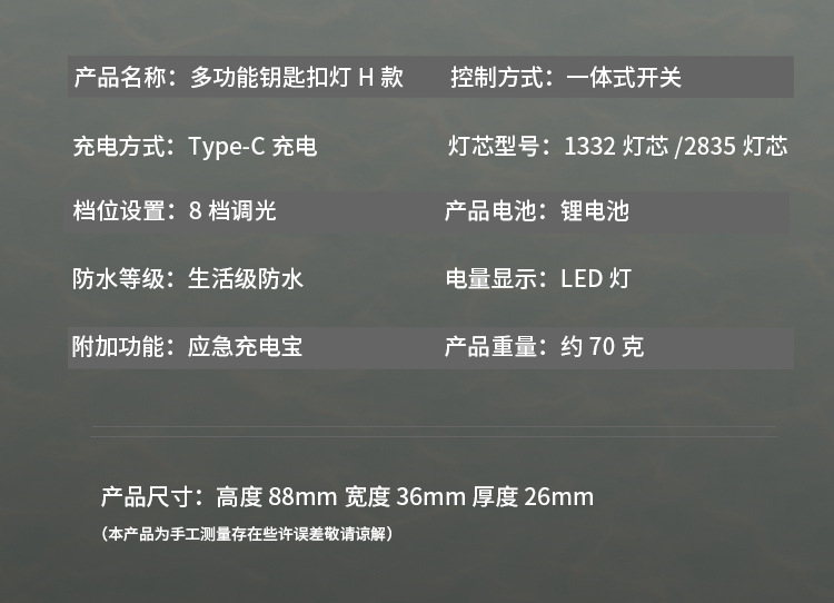 키 체인 손전등 방수 조명 램프