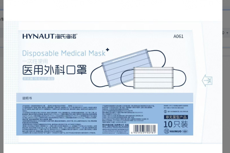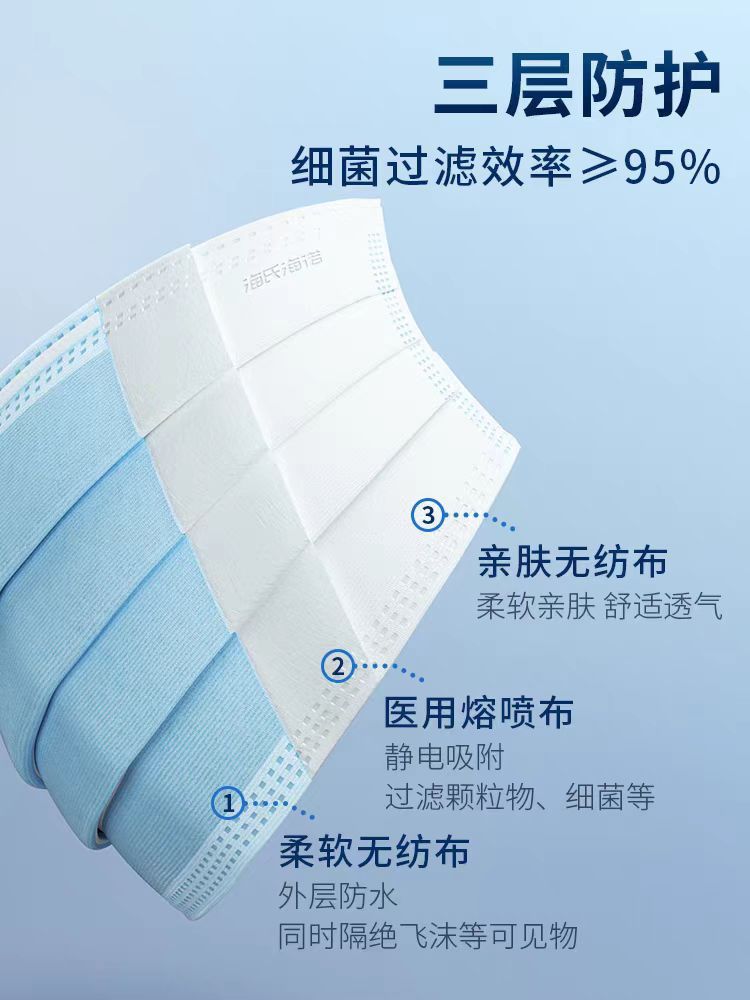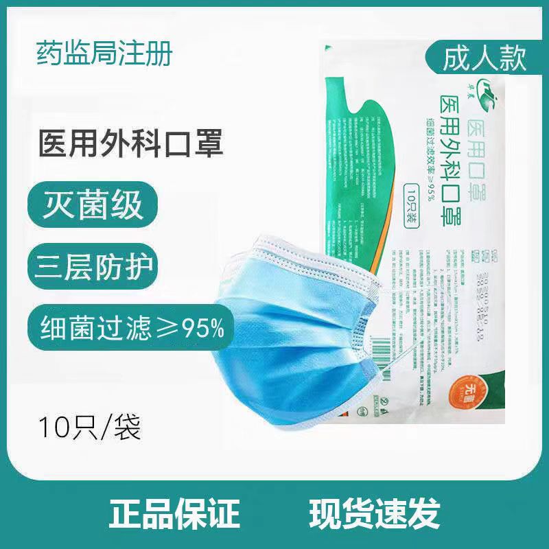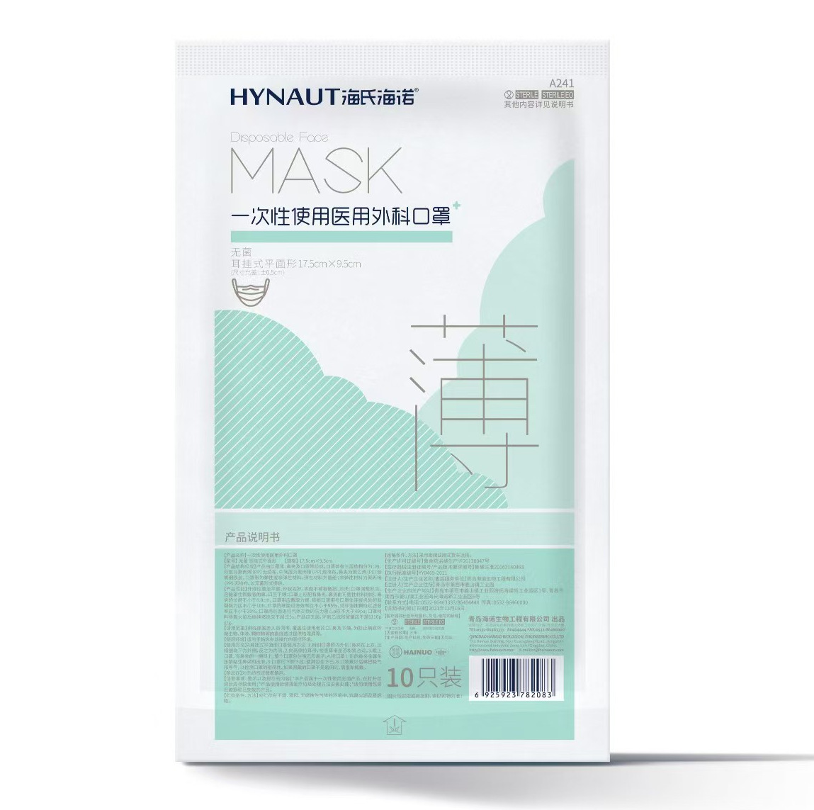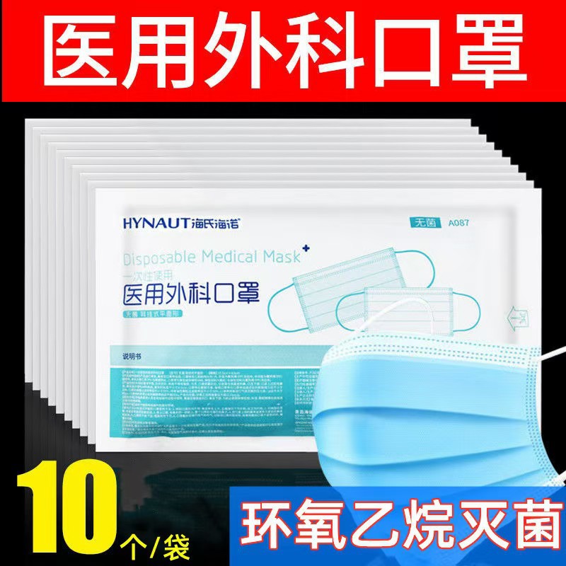海氏海诺医用外科口罩10只装三层防护现货批发一次性成人医用口罩
