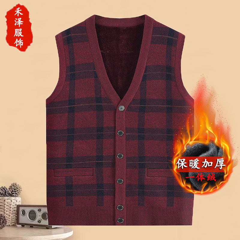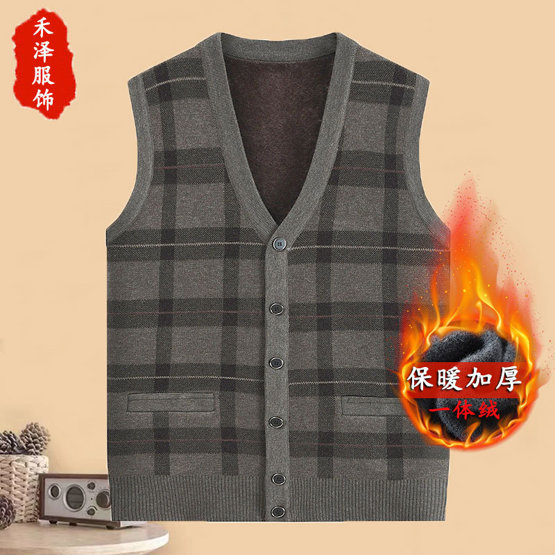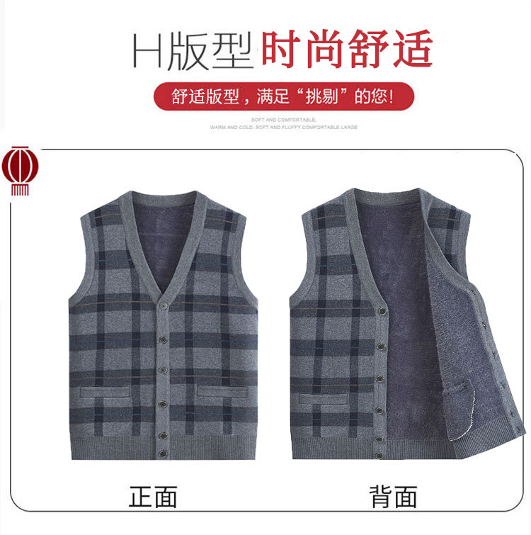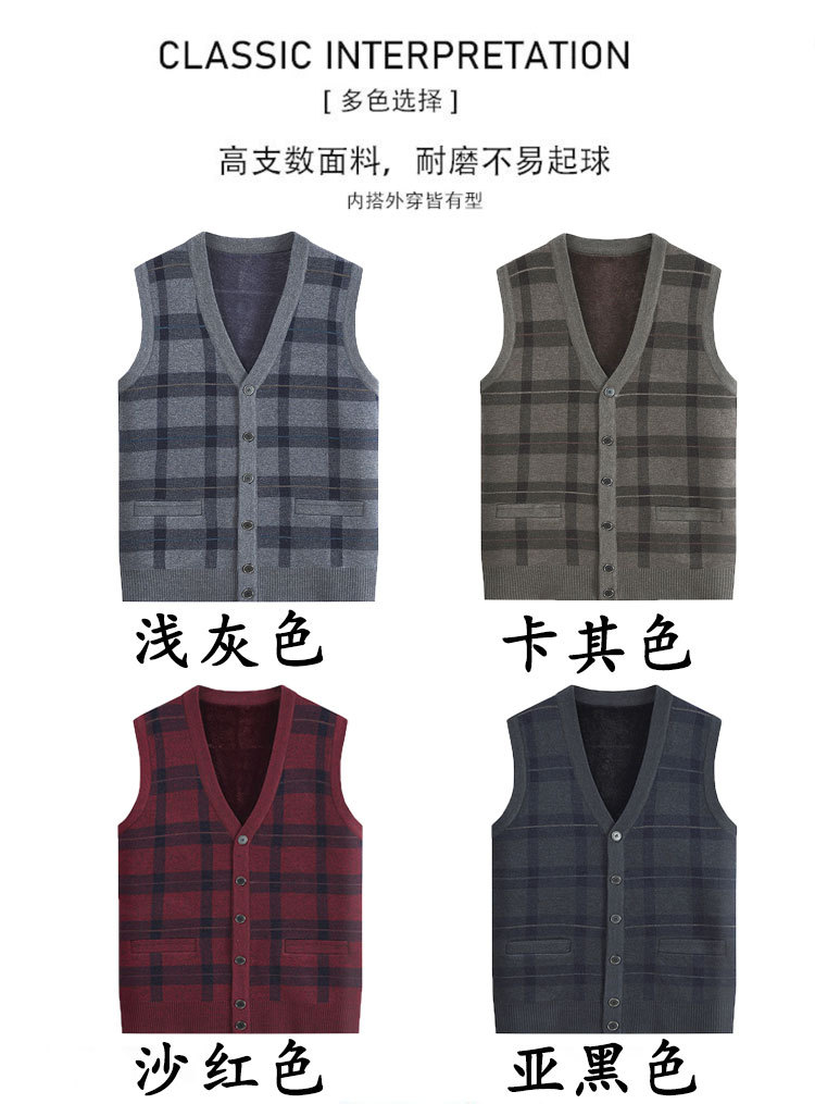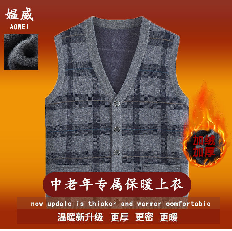 중년 및 노인 남성 V 넥 니트 조끼 엄마 아빠 기모 양복 조끼 카디건을위한 가을 및 겨울 조끼스토어 가기