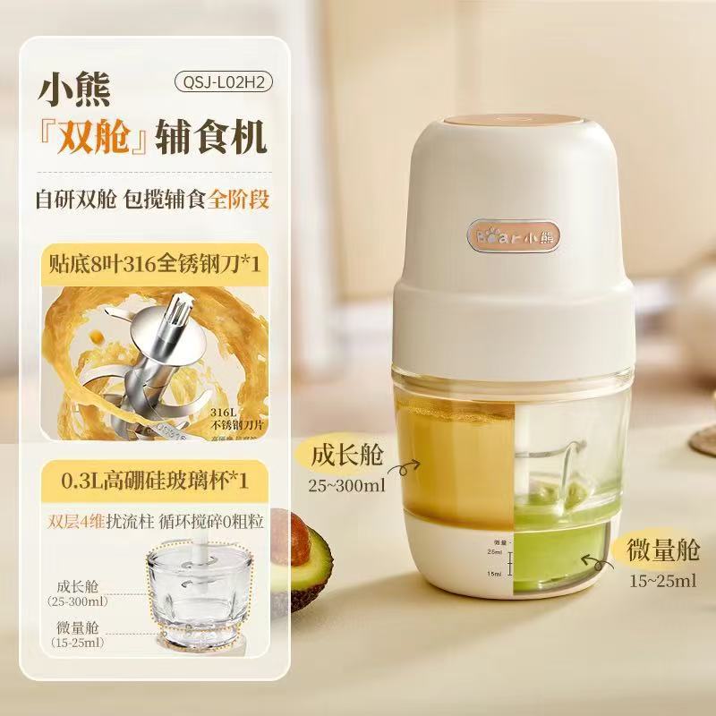작은 곰 이유식 제조기 고기 분쇄기 고기 믹서 아기 요리기 미니 전기 다기능 QSJ-L02H2