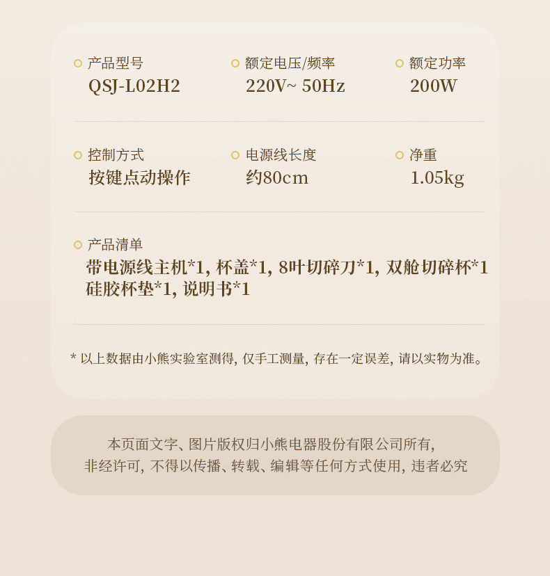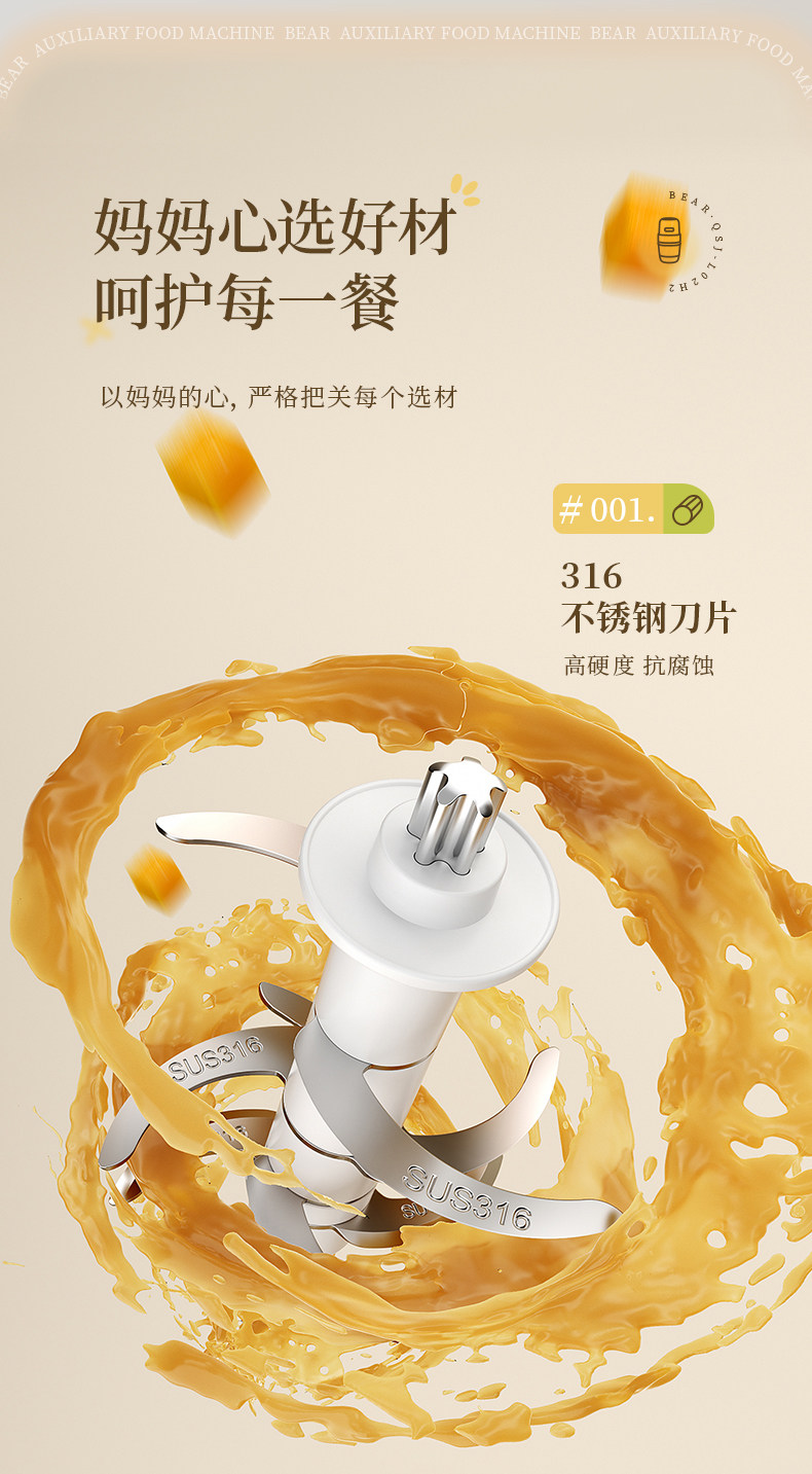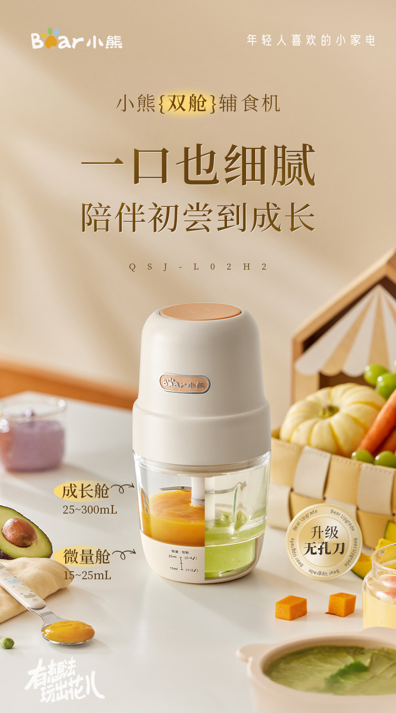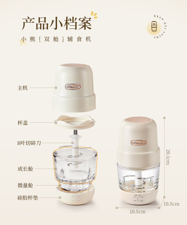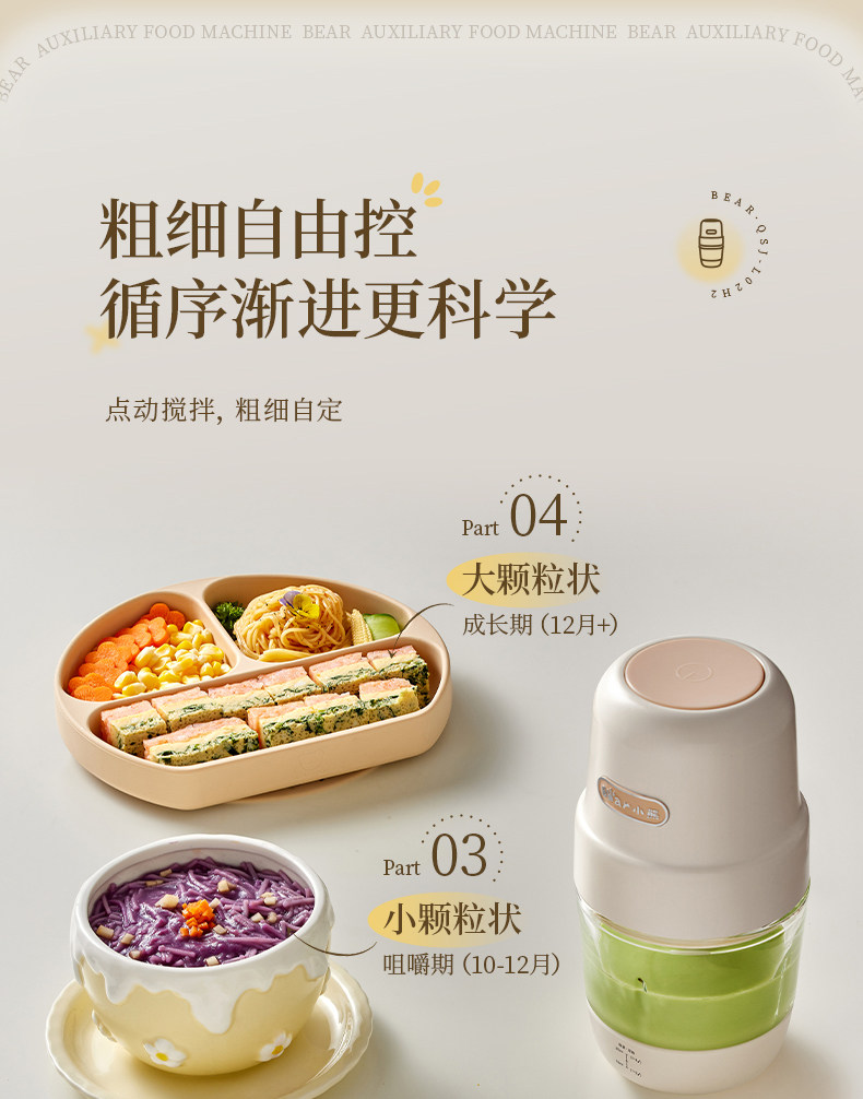 곰 QSJ-L02H2 보조 식품 기계 고기 분쇄기 고기 페이스트 믹서 아기 요리 기계 미니 전기 다기능스토어 가기