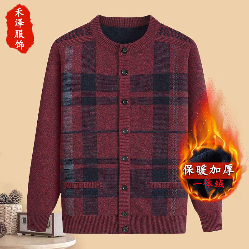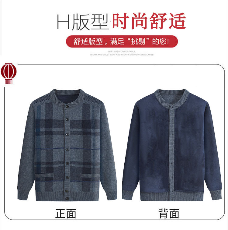 중년 및 노인 아빠는 가을과 겨울 기모 니트 스웨터 코트 겨울 두꺼운 따뜻한 카디건 남성의 긴 소매스토어 가기