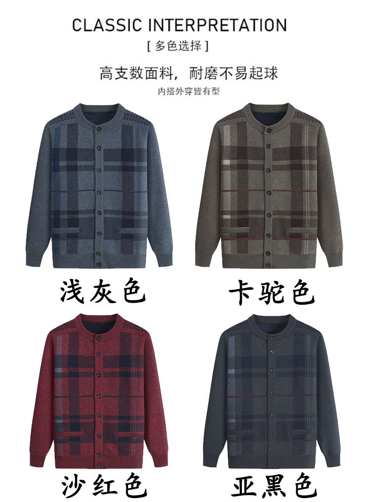 중년 및 노인 아빠는 가을과 겨울 기모 니트 스웨터 코트 겨울 두꺼운 따뜻한 카디건 남성의 긴 소매