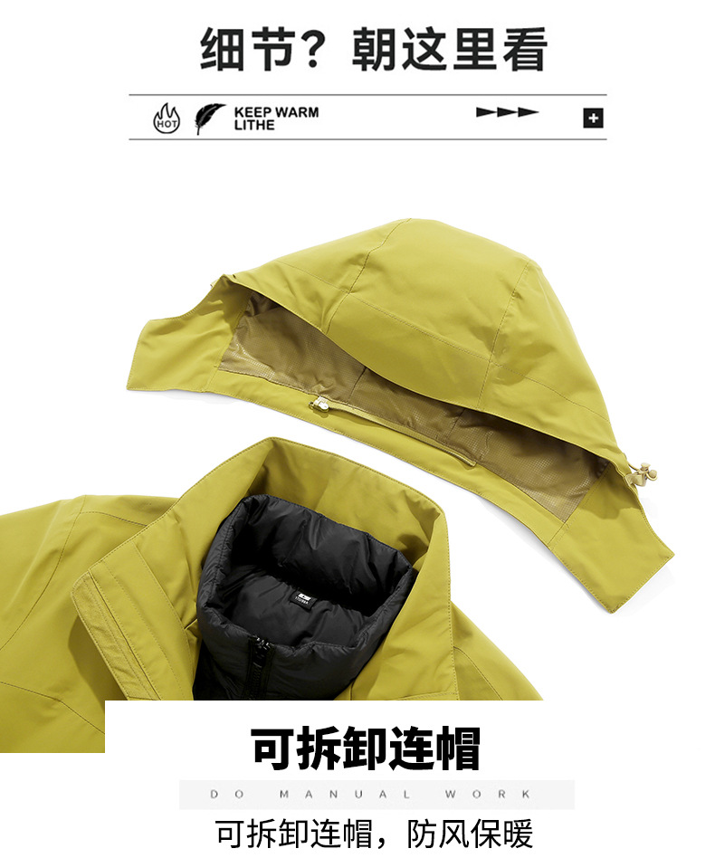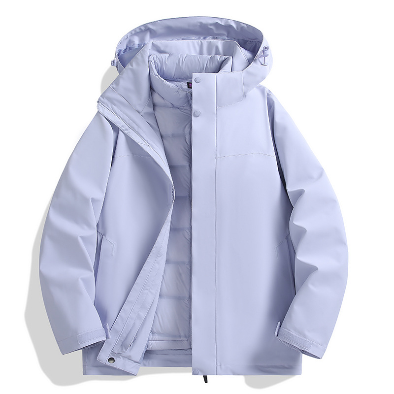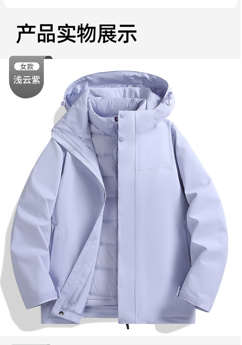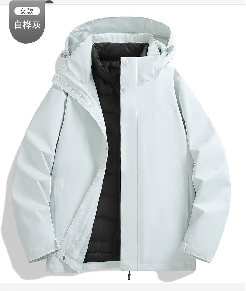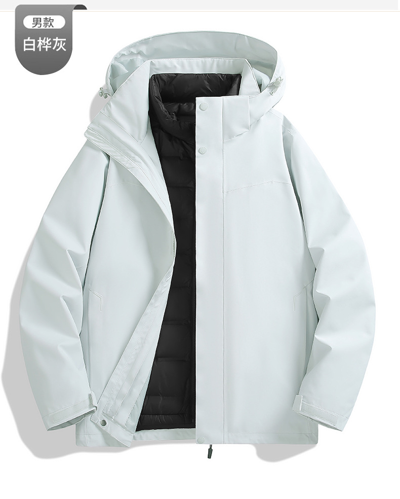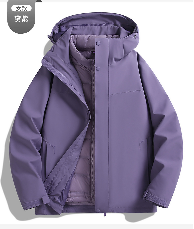24 년 야외 다운 러시 의류 2 피스 세트 남성과 여성을위한 완전 열 씰 리얼 러시 3 장 마운트 세트 툴링 인쇄 로고