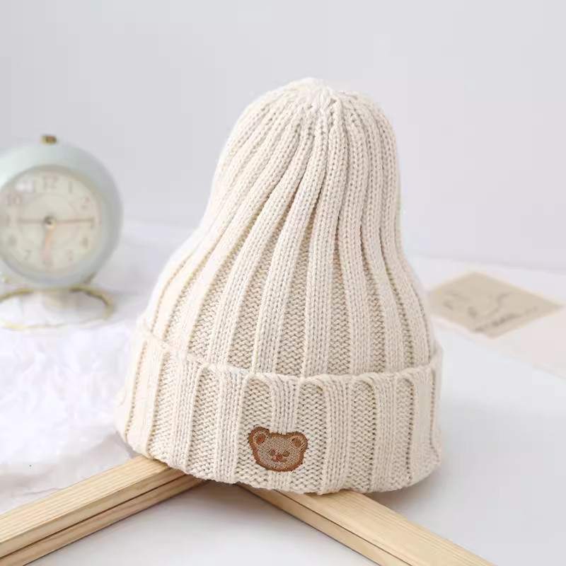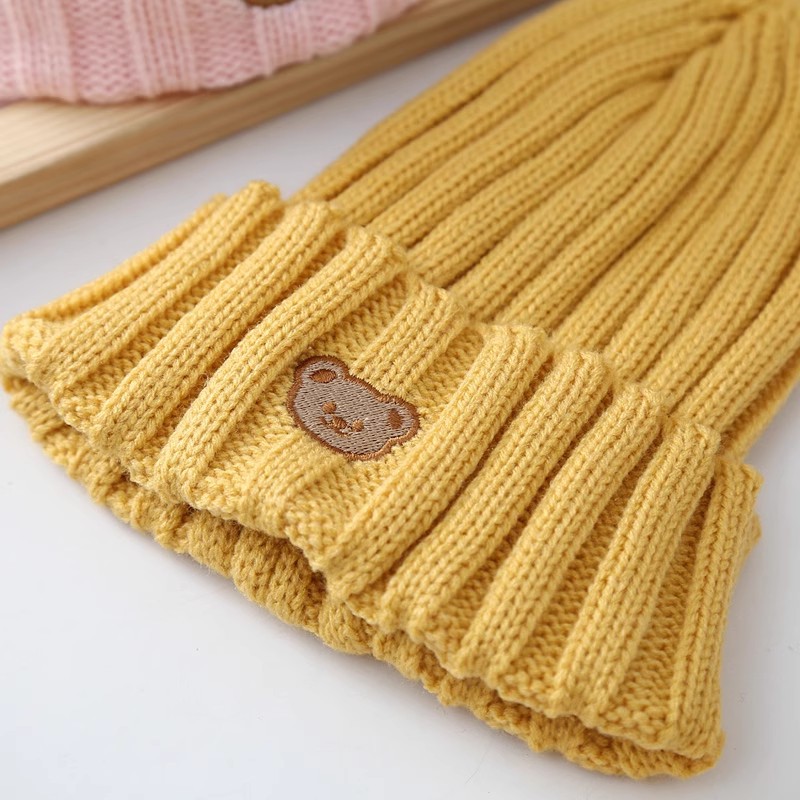 곰 사탕 색 양모 모자 어린이 2022 년 겨울 새로운 따뜻한 아기 올매치 통기성 피부 친화적 인 니트 모자스토어 가기