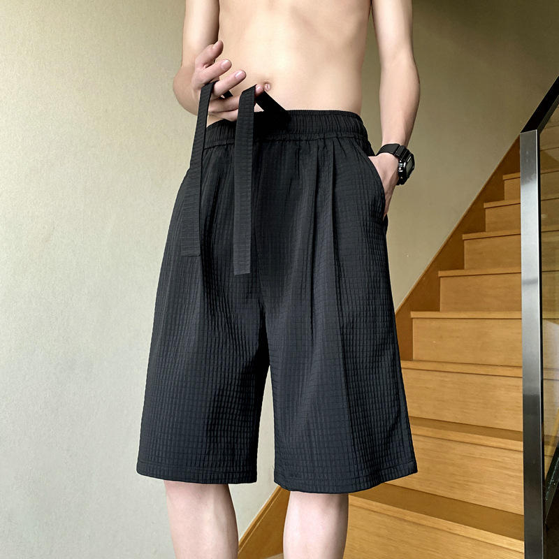 나폴리, 남성용 퓨어 블랙 클렌핏 쇼트 바지 여름 유행 바지 오버 더 무릎 6 점 바지