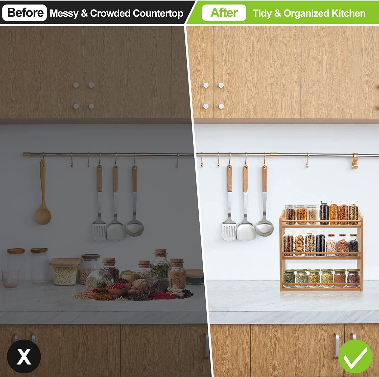 국경 간 대나무 주방 조미료 보관 랙 나무 향신료 항아리 조미료 랙 조미료 병 랙 도매스토어 가기