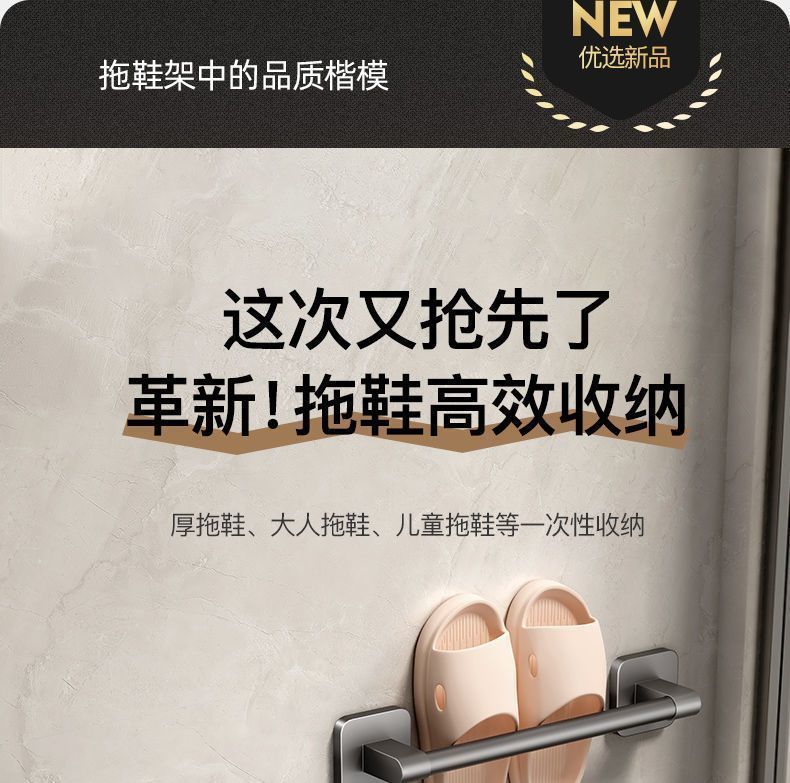 • 건그레이 슬리퍼걸이 - 60cm - 못이 없는 벽걸이 [3인 가족]