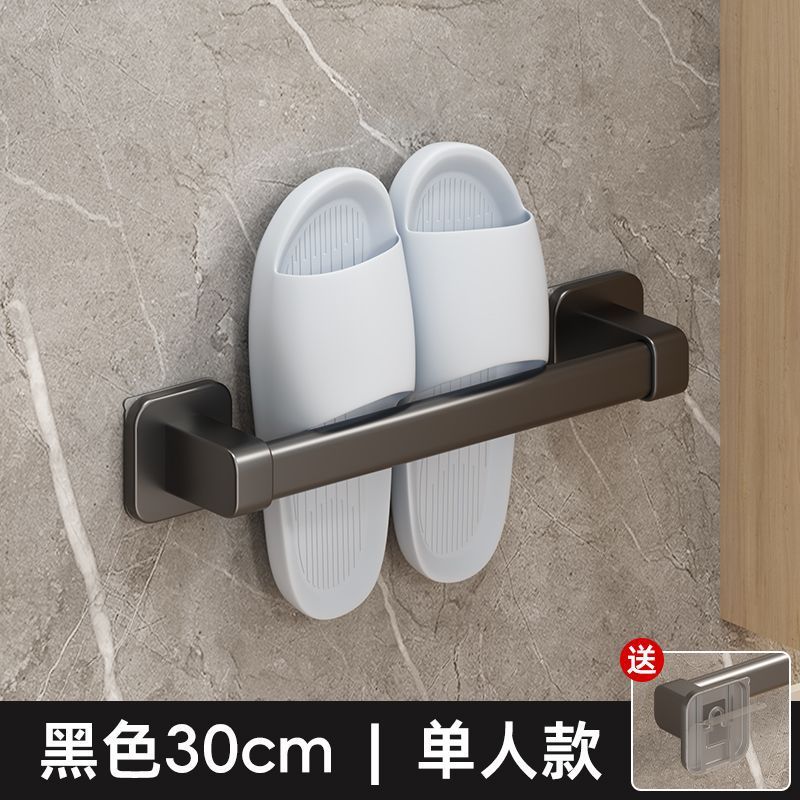 • 검정색 슬리퍼걸이 - 30cm - 못이 없는 벽걸이 [한 쌍 수납]