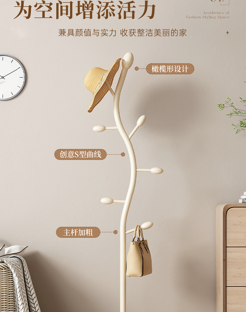 옷걸이, 바닥형 침실 옷걸이, 간단한 옷걸이, 현관 옷걸이, 가정용 물고기뼈 모양 심플하고 고급스러운 수납