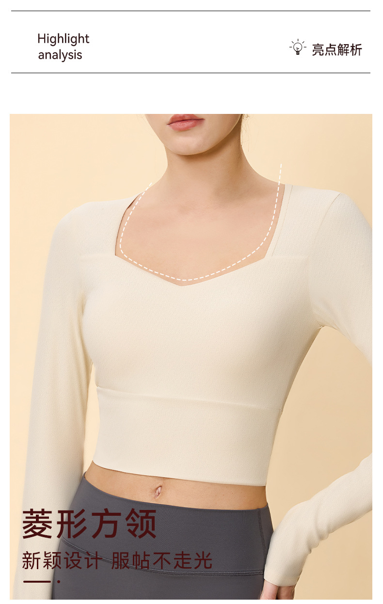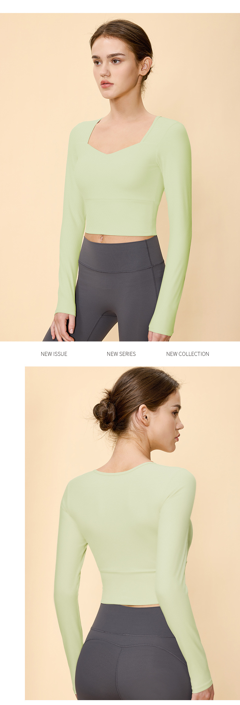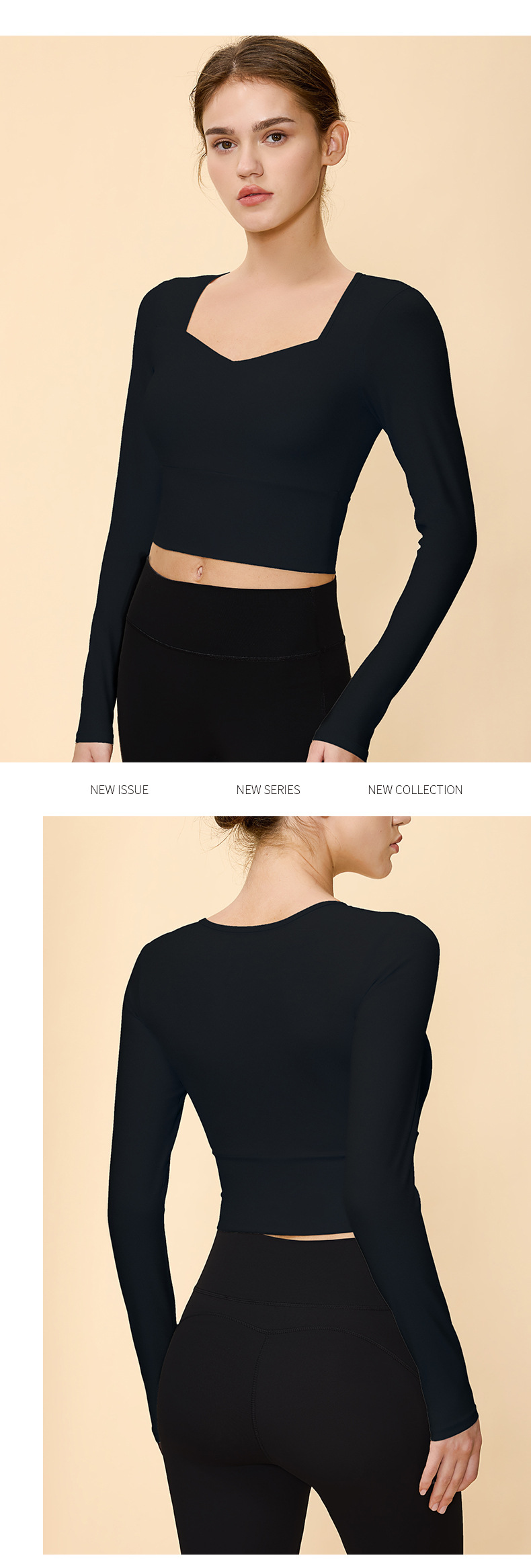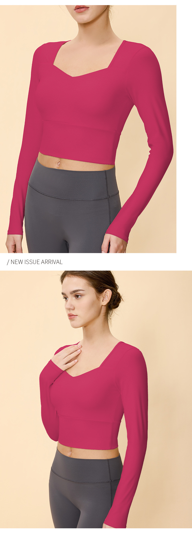 대외 무역 봄과 여름 새로운 요가 옷 빠른 건조 달리기 스포츠 긴팔 피트니스 옷 스퀘어 칼라 통기성 올 매치 탑 티셔츠