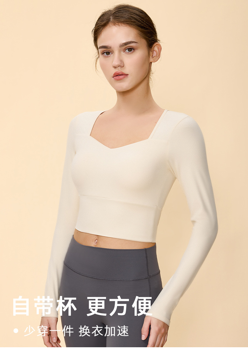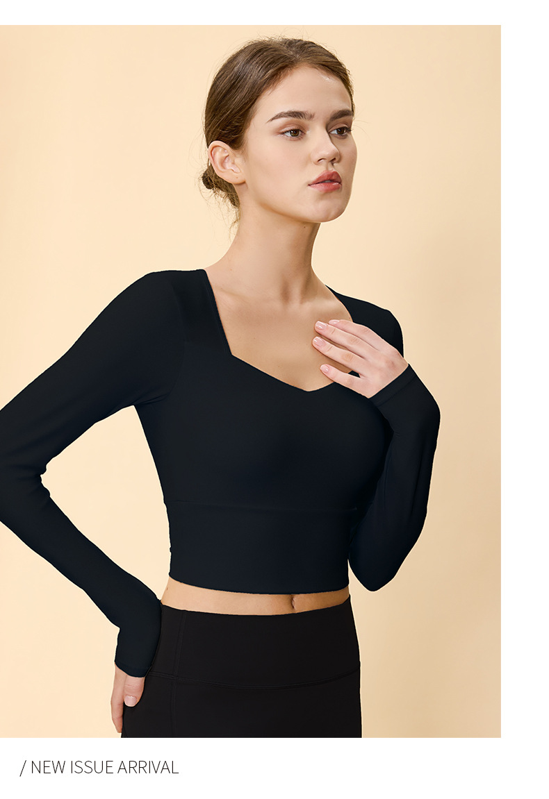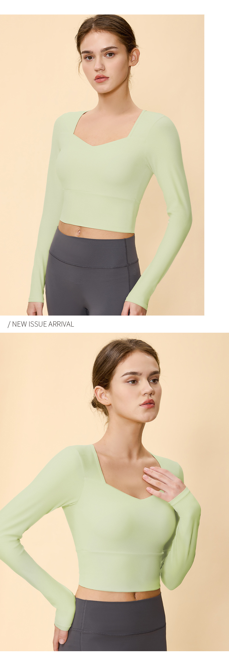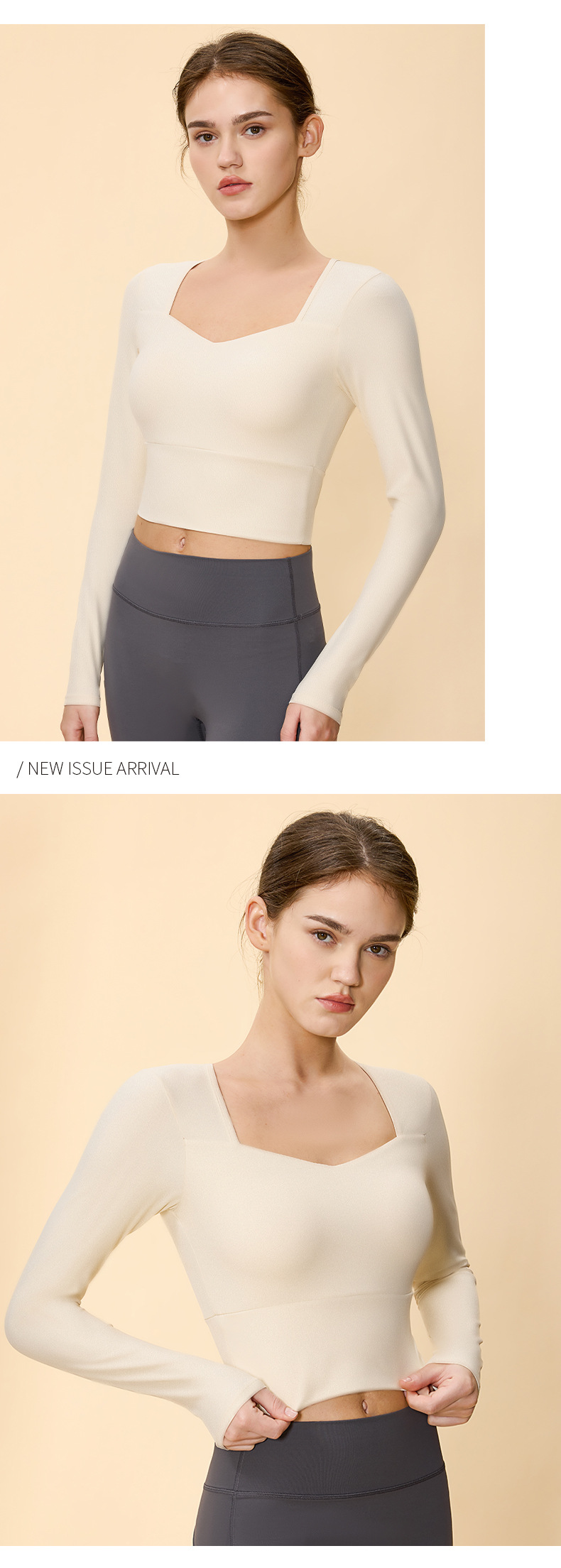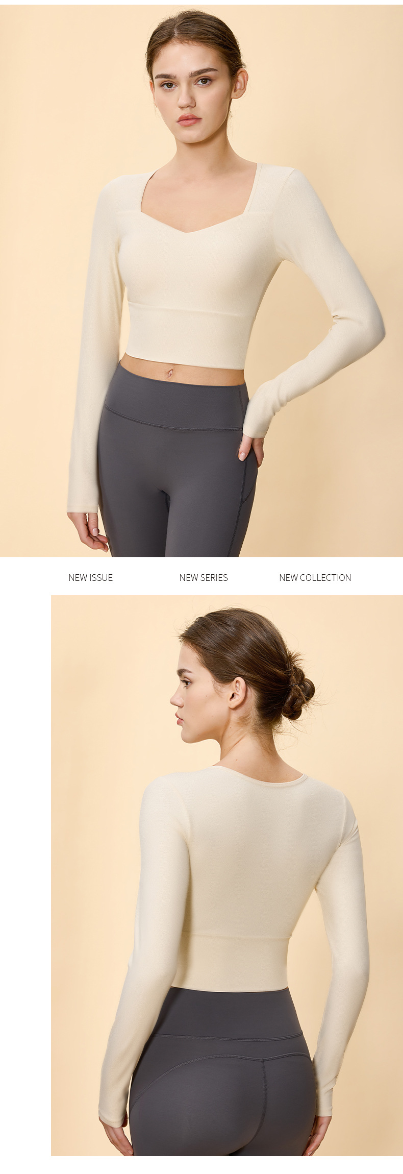 대외 무역 봄과 여름 새로운 요가 옷 빠른 건조 달리기 스포츠 긴팔 피트니스 옷 스퀘어 칼라 통기성 올 매치 탑 티셔츠
