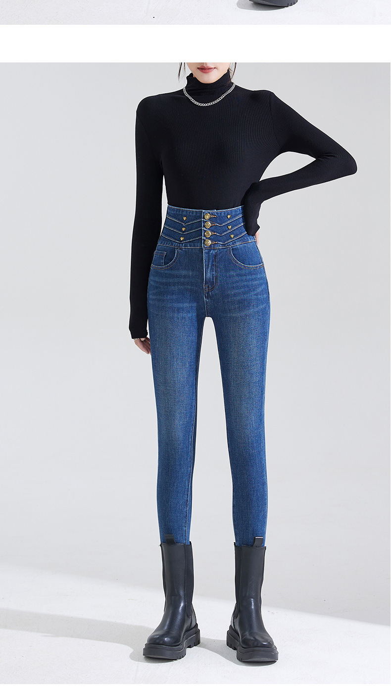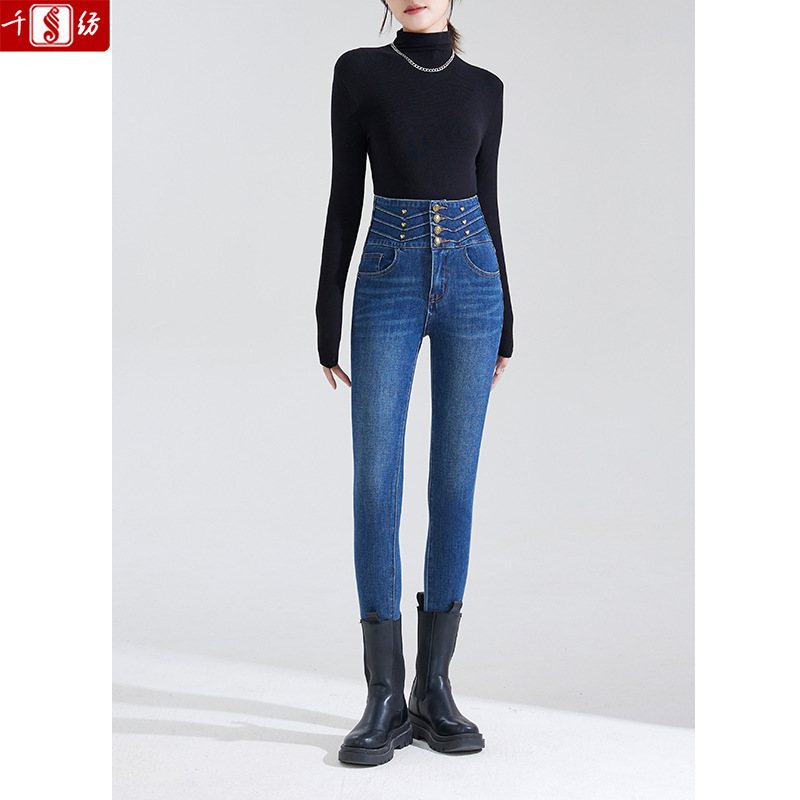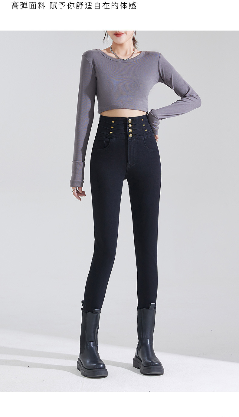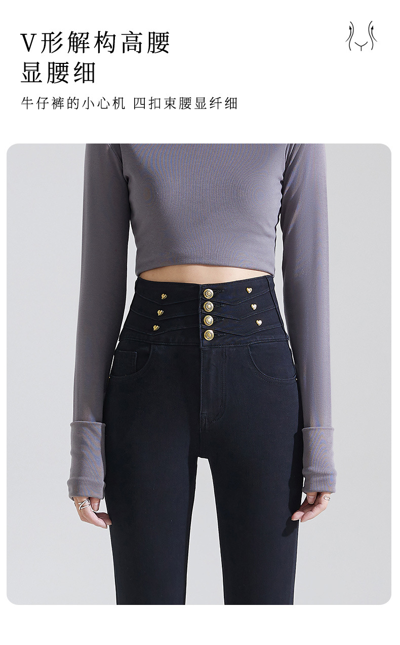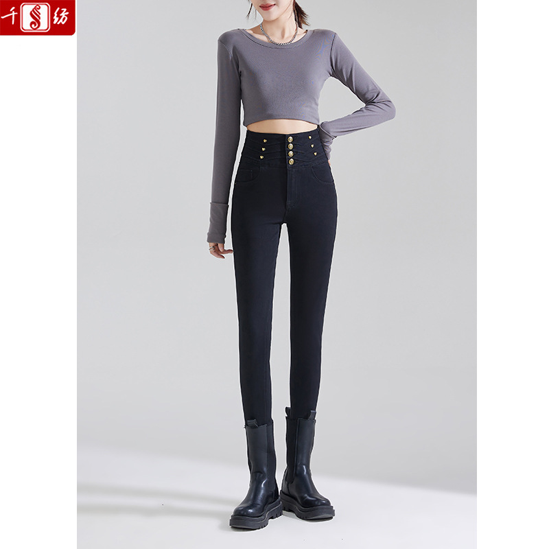 블랙 하이웨이스트 데님 팬츠 여성 슬림핏 2025 봄 사방 스트레치 슬림핏 힙업 연필 팬츠스토어 가기