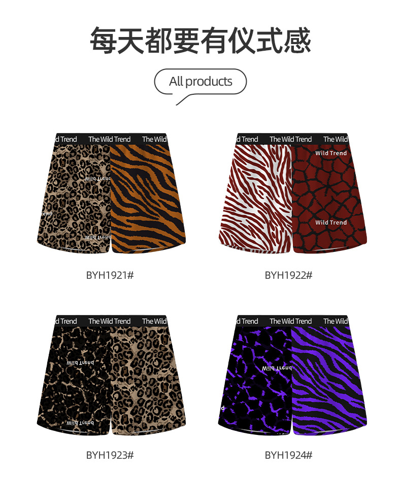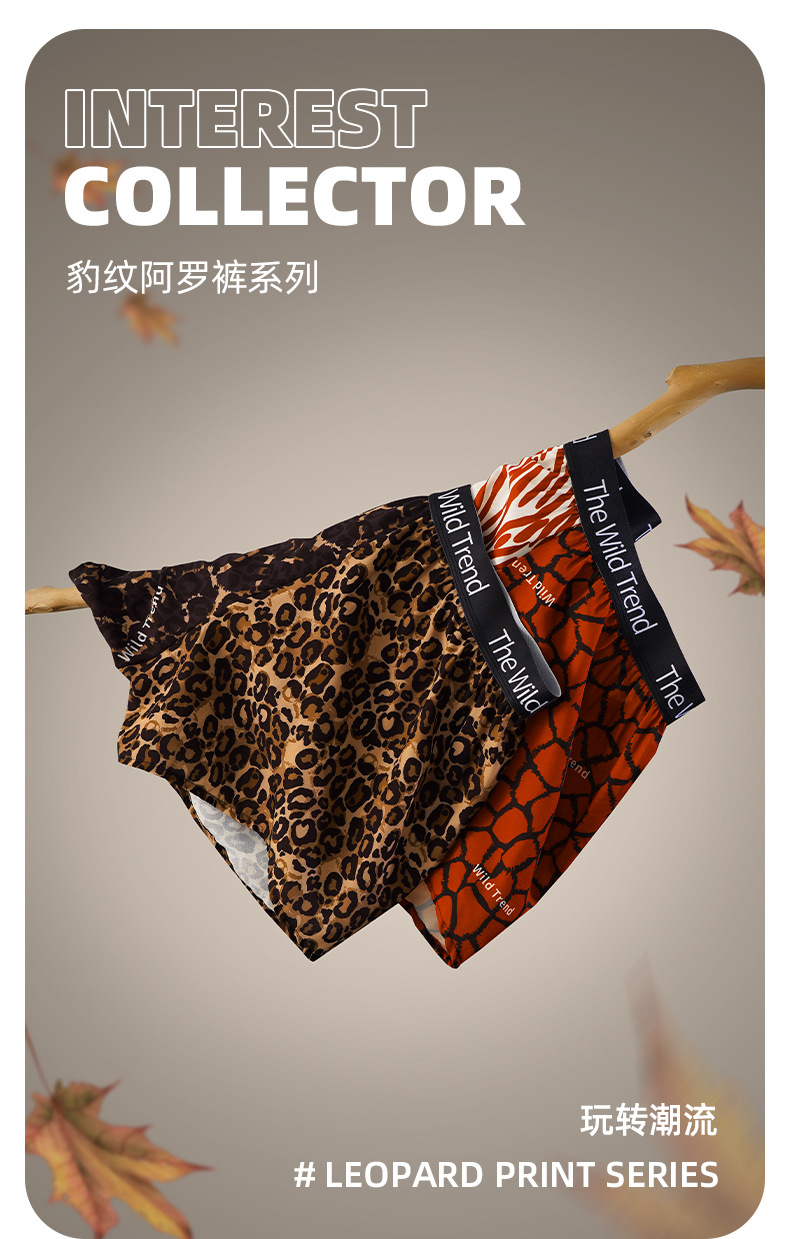 인기 남성 아로 팬츠 트렌디한 레오파드 프린트 홈웨어 캐주얼 스타일 사각형 루즈핏 대형 남성 속옷 도매스토어 가기