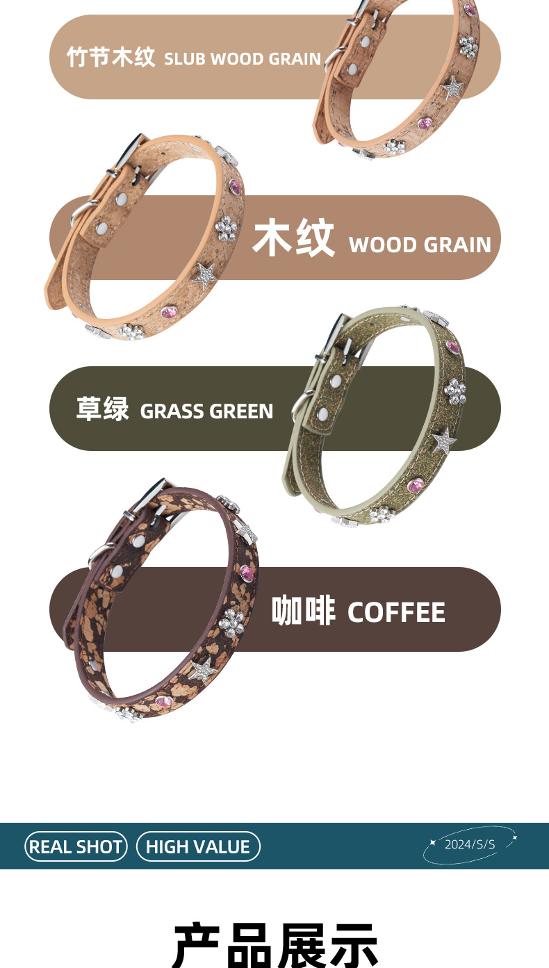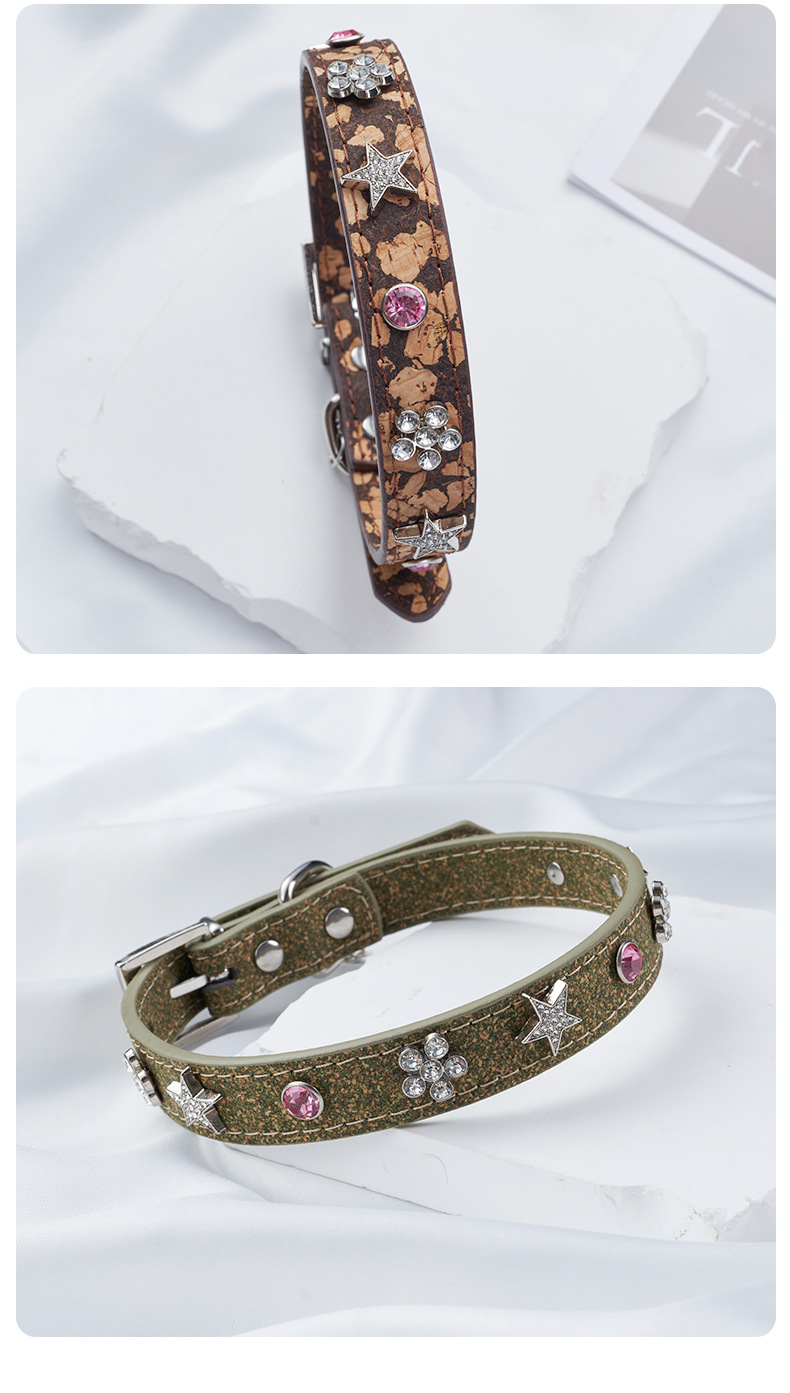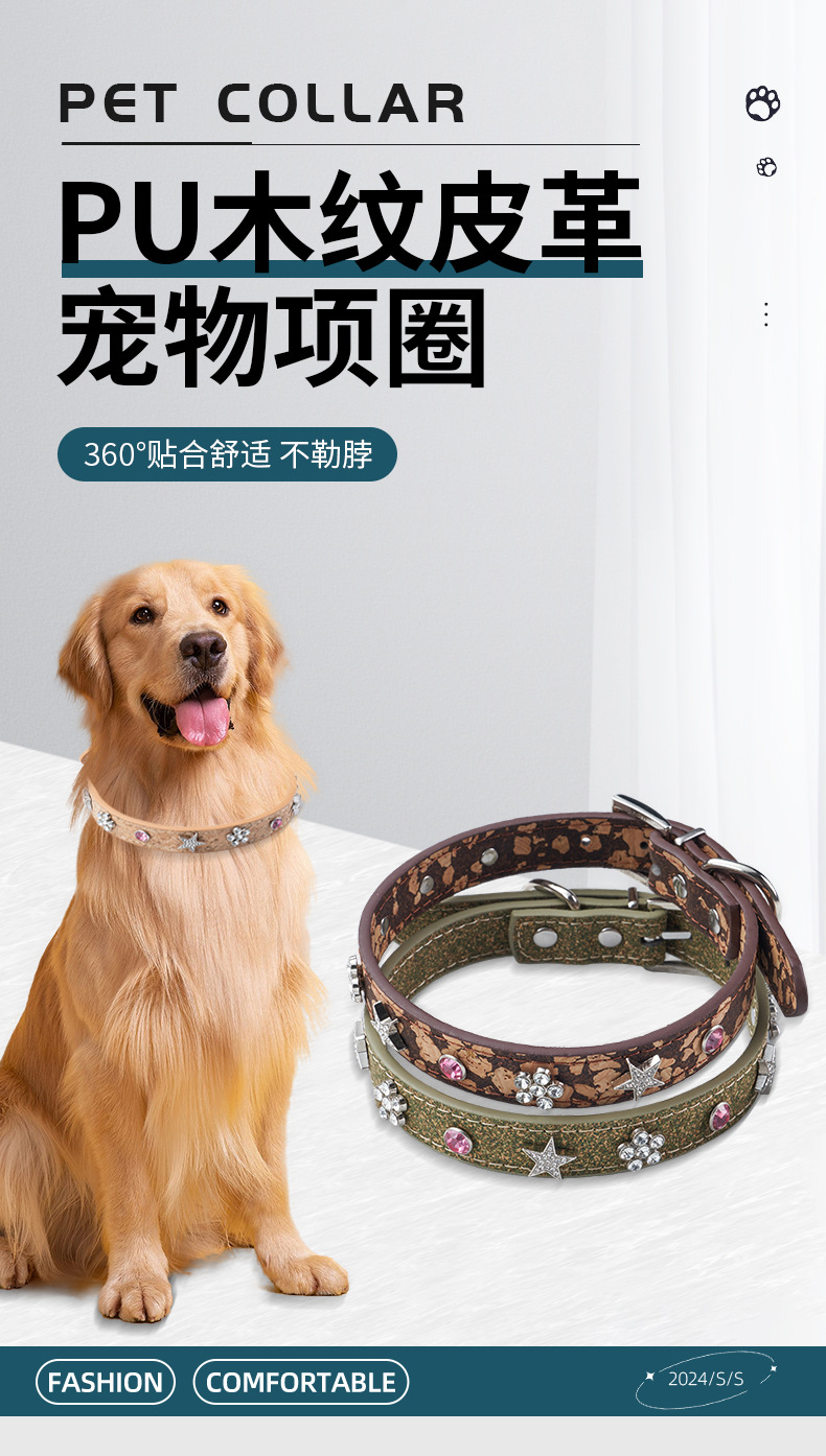 새로운 고양이 칼라 PU 우드 그레인 가죽 조정 가능한 애완 동물 목 작은 개 패션 목걸이 애완 동물 용품