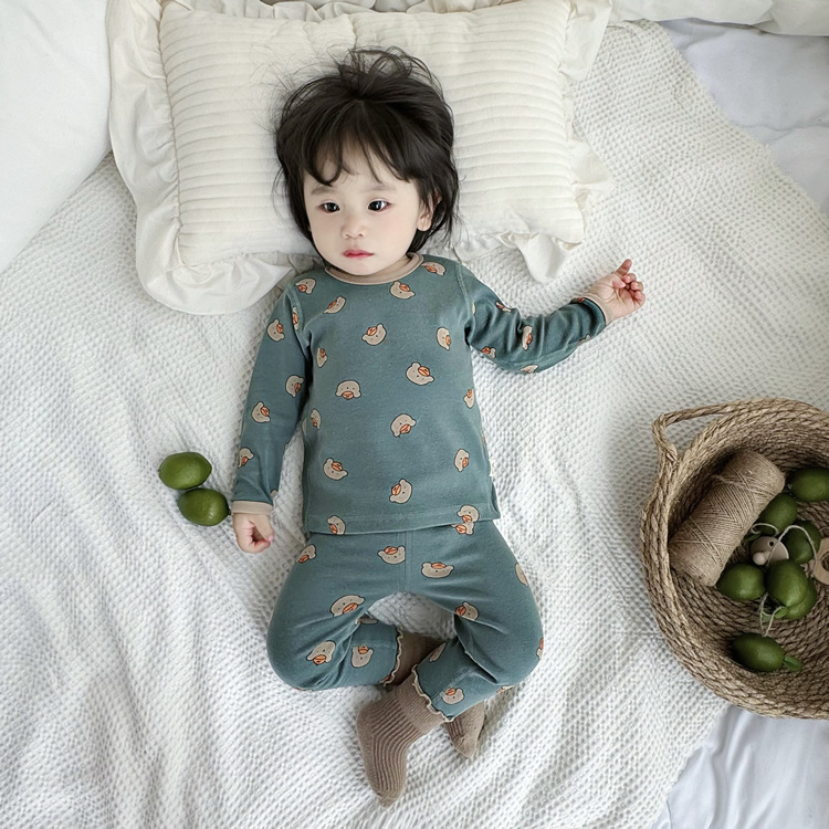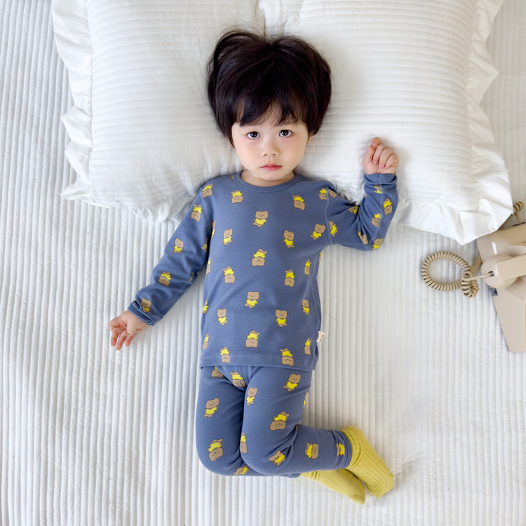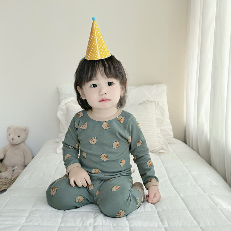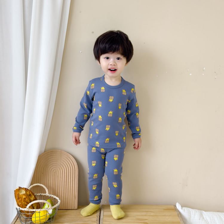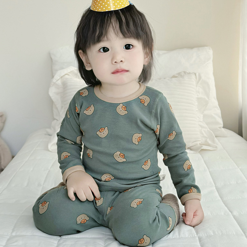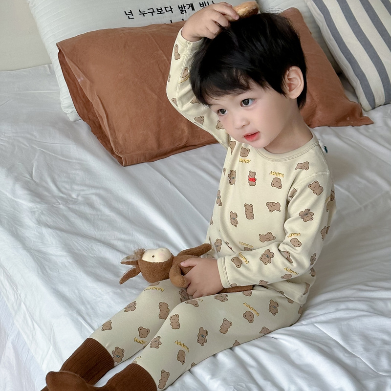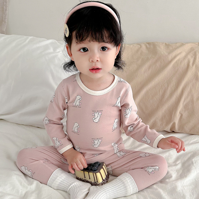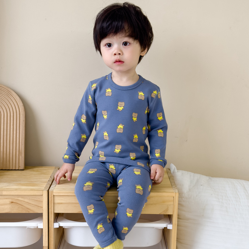 가을과 겨울 아기의 가을 옷과 바지 세트 순면 뼈없는 어린이 열 속옷 기본 두꺼운 소년과 소녀 잠옷스토어 가기
