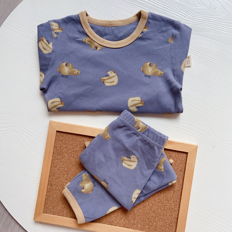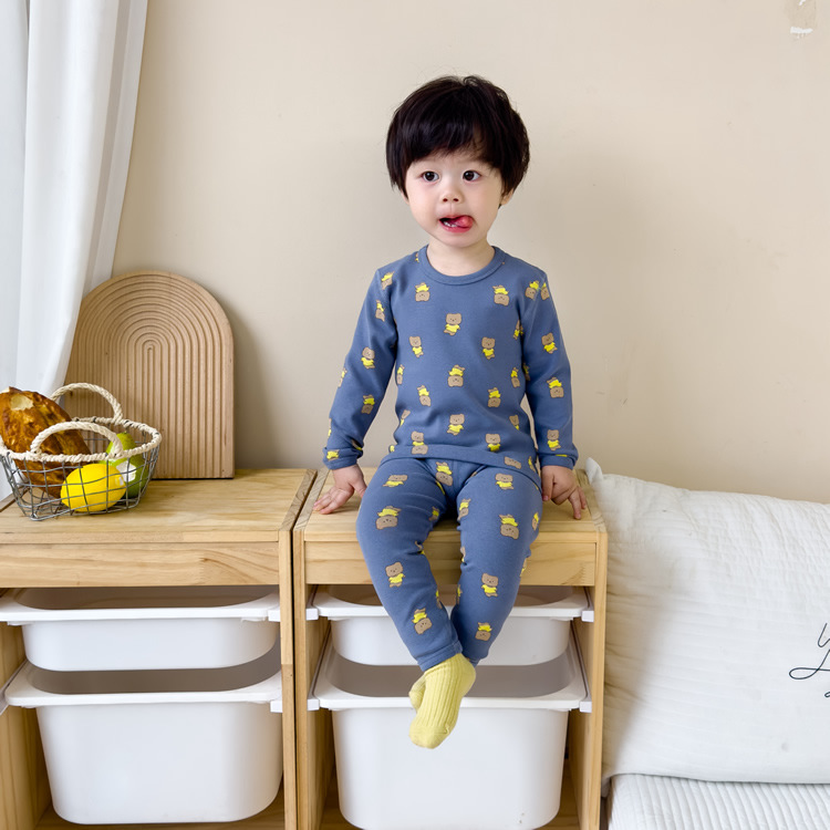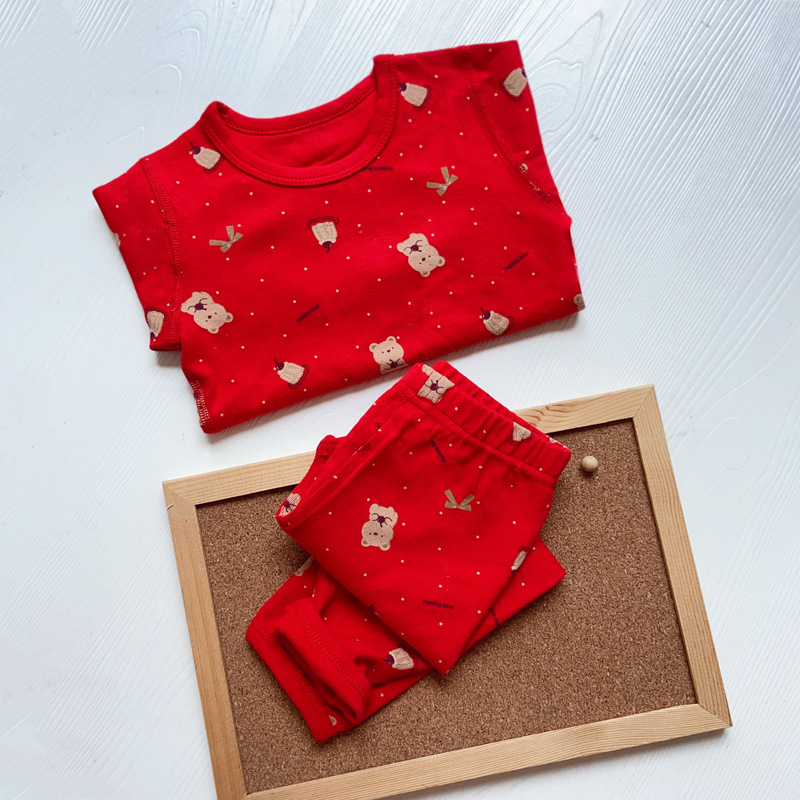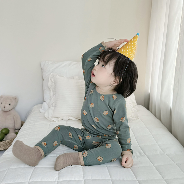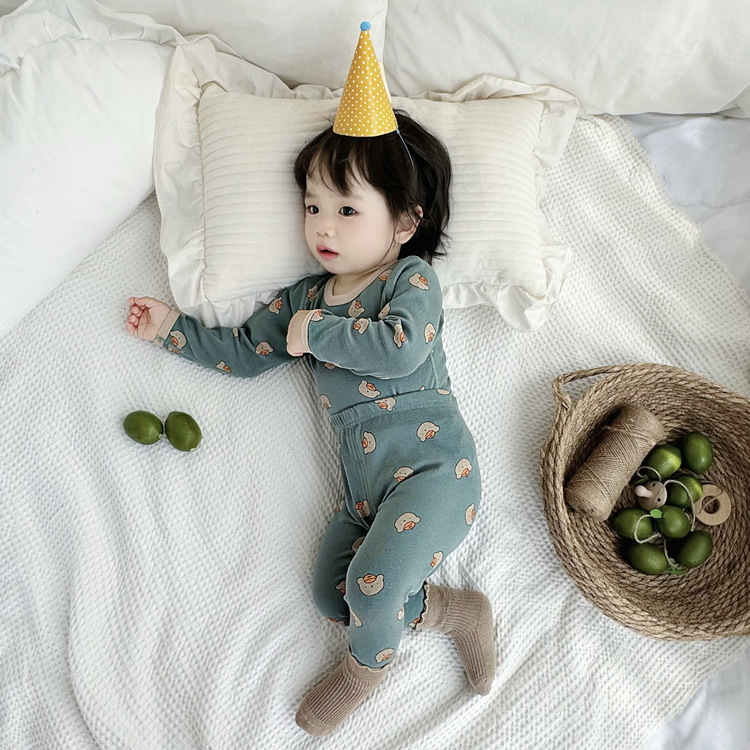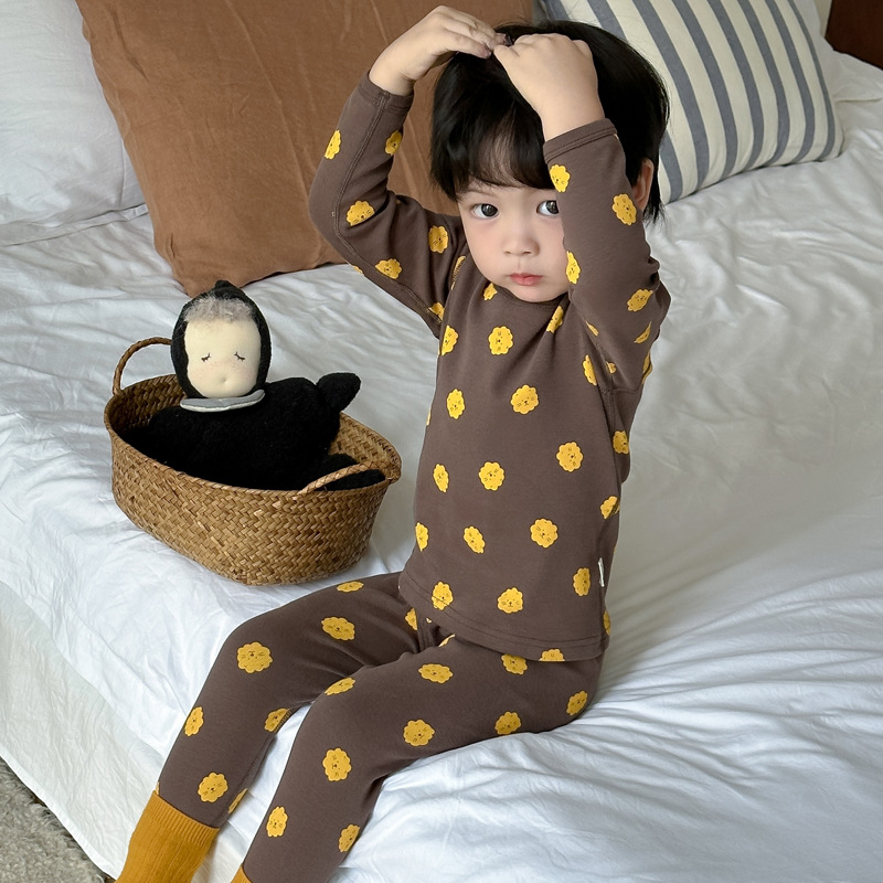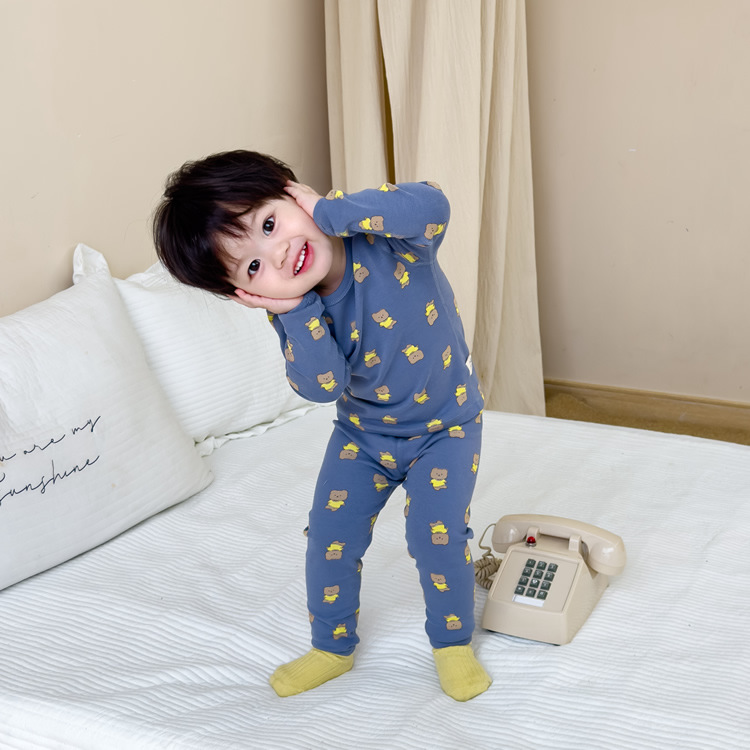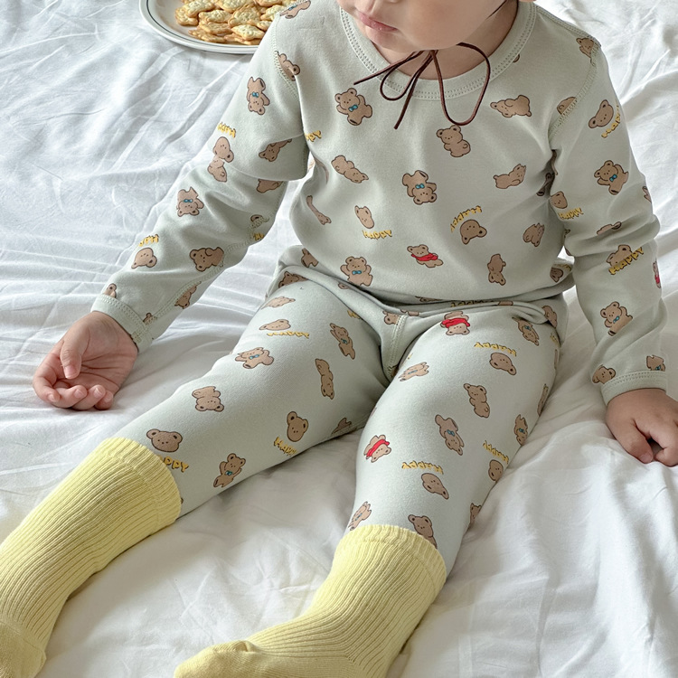가을과 겨울 아기의 가을 옷과 바지 세트 순면 뼈없는 어린이 열 속옷 기본 두꺼운 소년과 소녀 잠옷스토어 가기