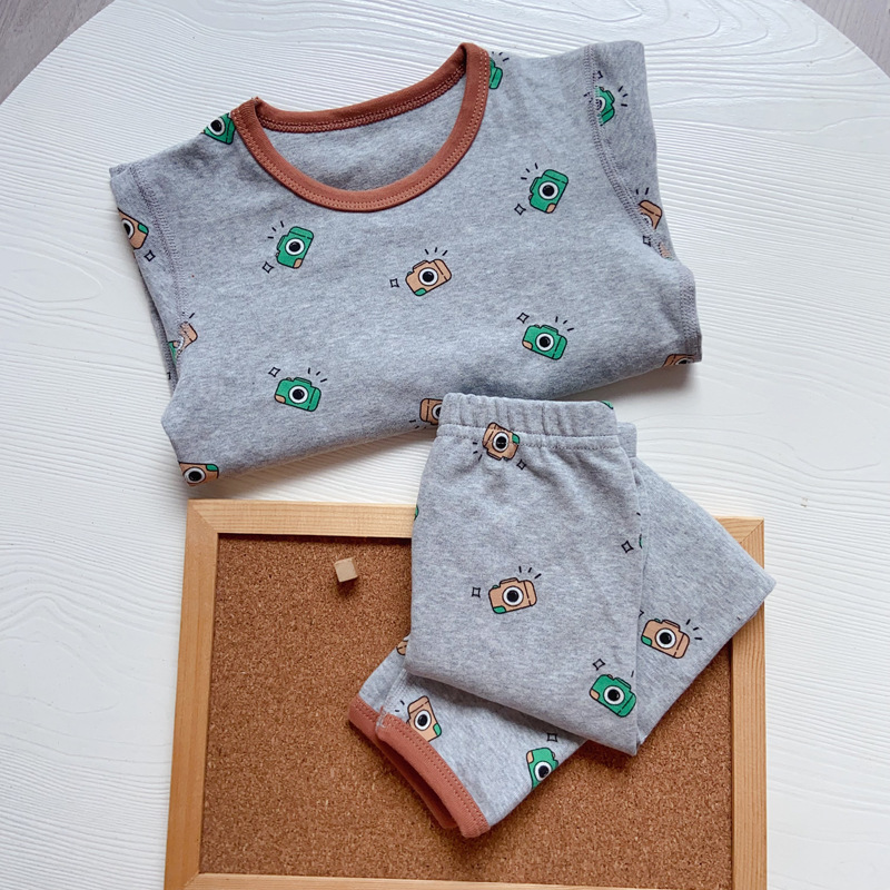 가을과 겨울 아기의 가을 옷과 바지 세트 순면 뼈없는 어린이 열 속옷 기본 두꺼운 소년과 소녀 잠옷